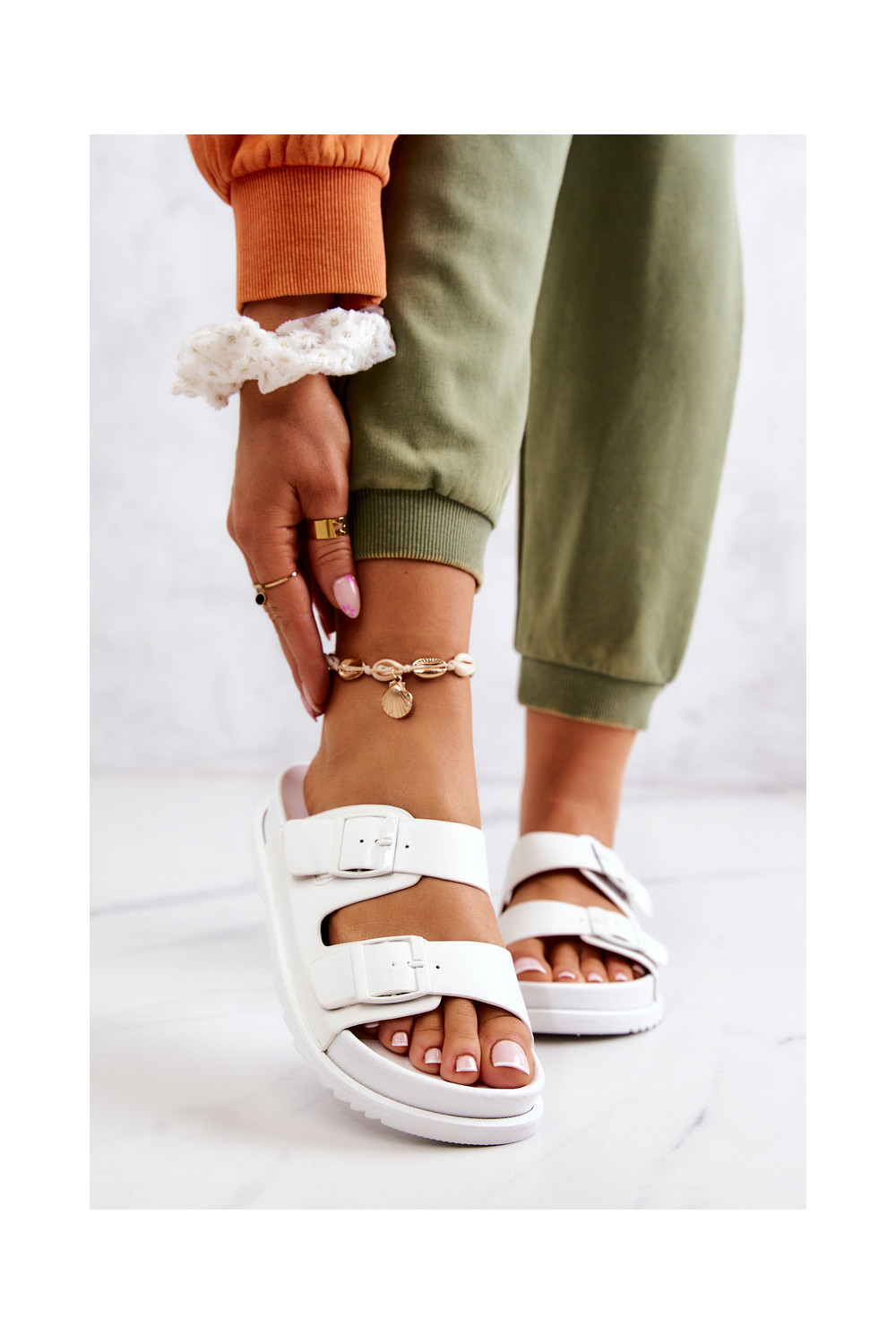 Guminės Šlepetės su sagtimis baltos spalvos Corina