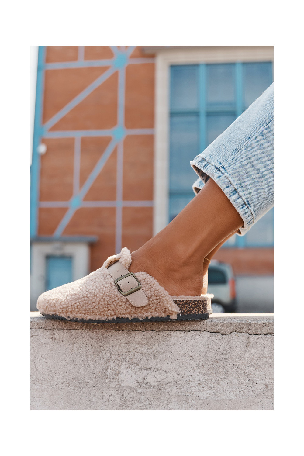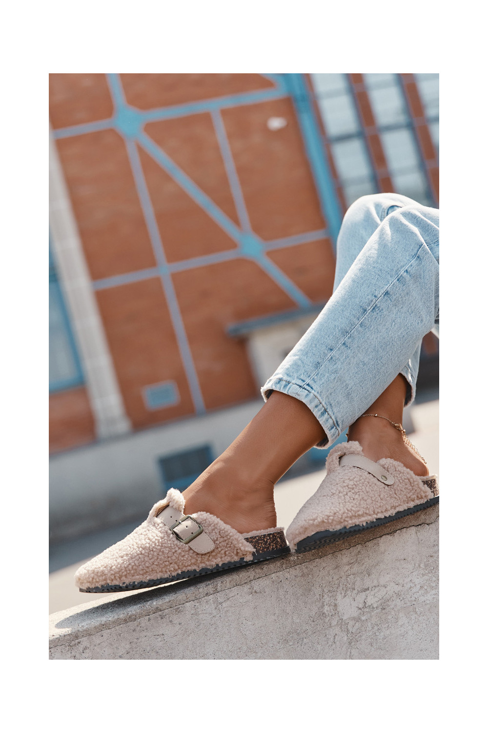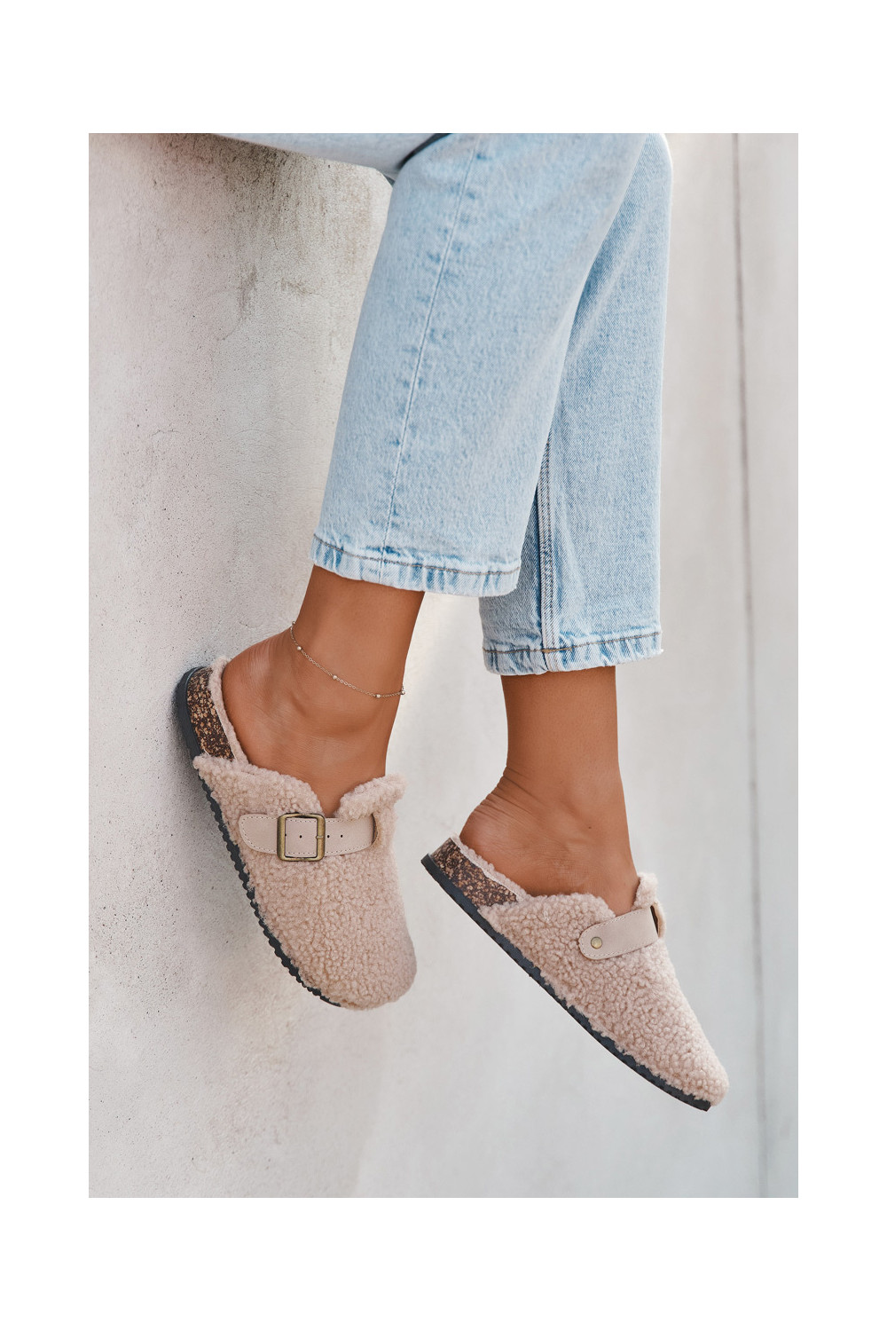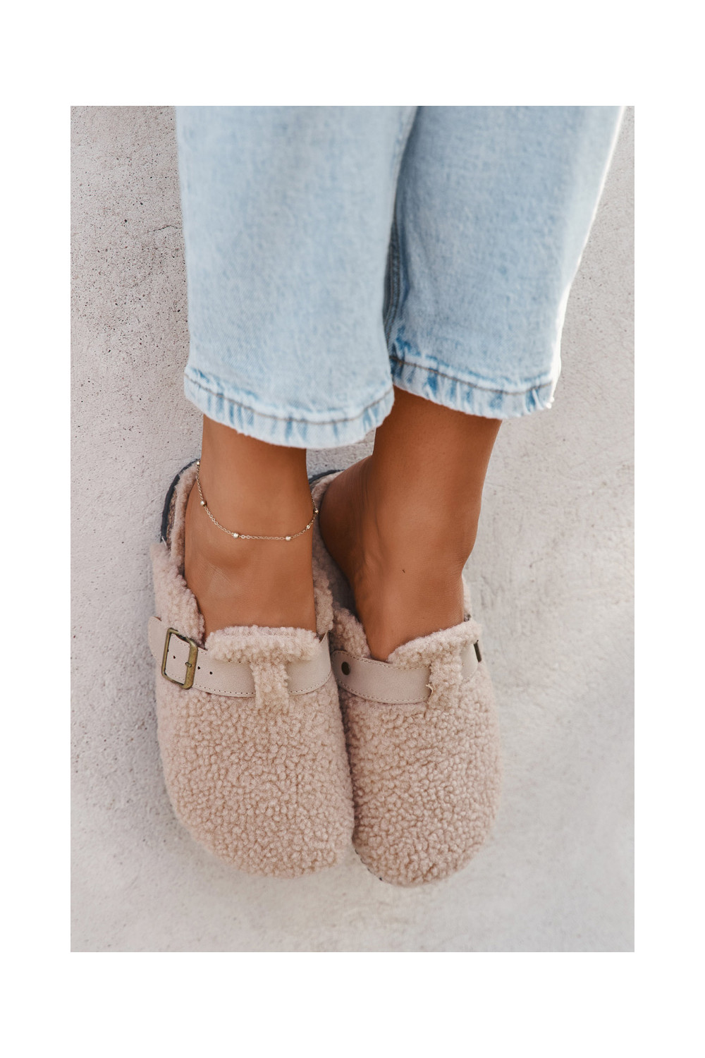 Dámské pantofle s kožešinou Typu Baranek béžové Lorivine