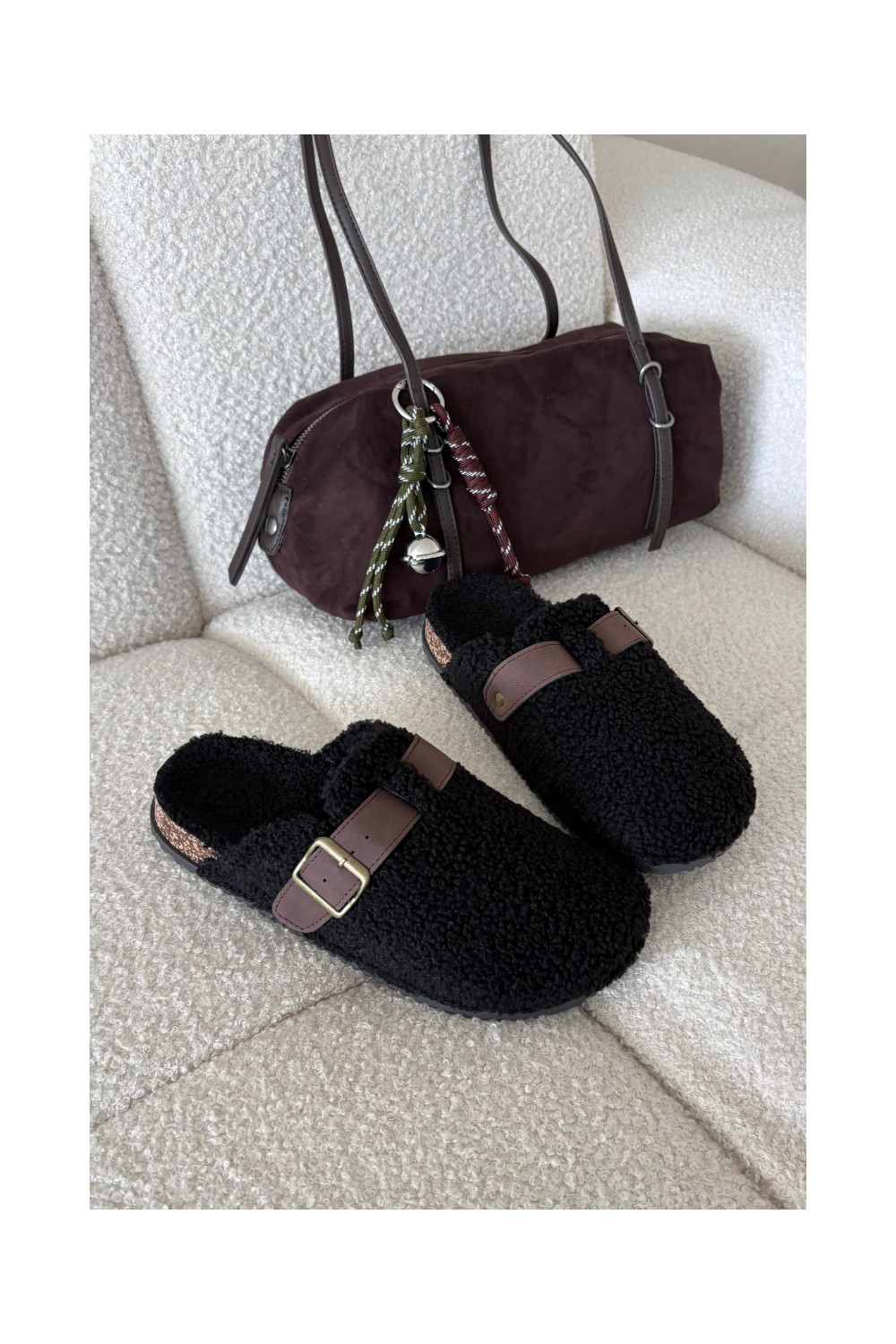 Dámské pantofle s kožešinou Typu Baranek Černé Lorivine