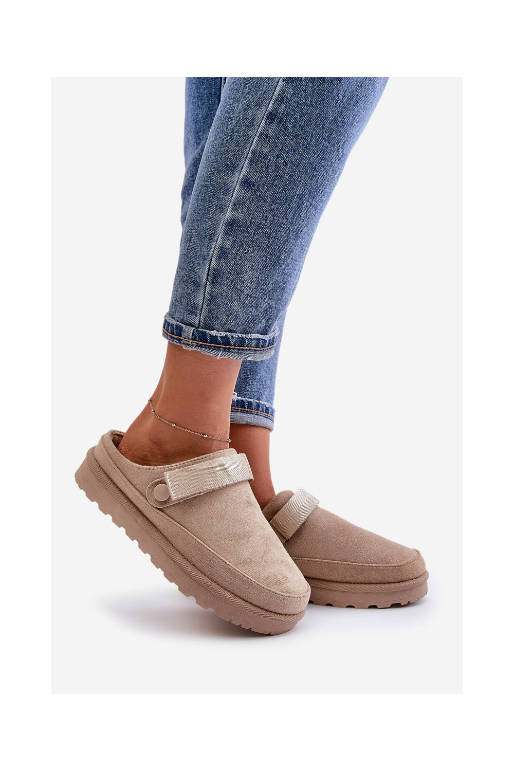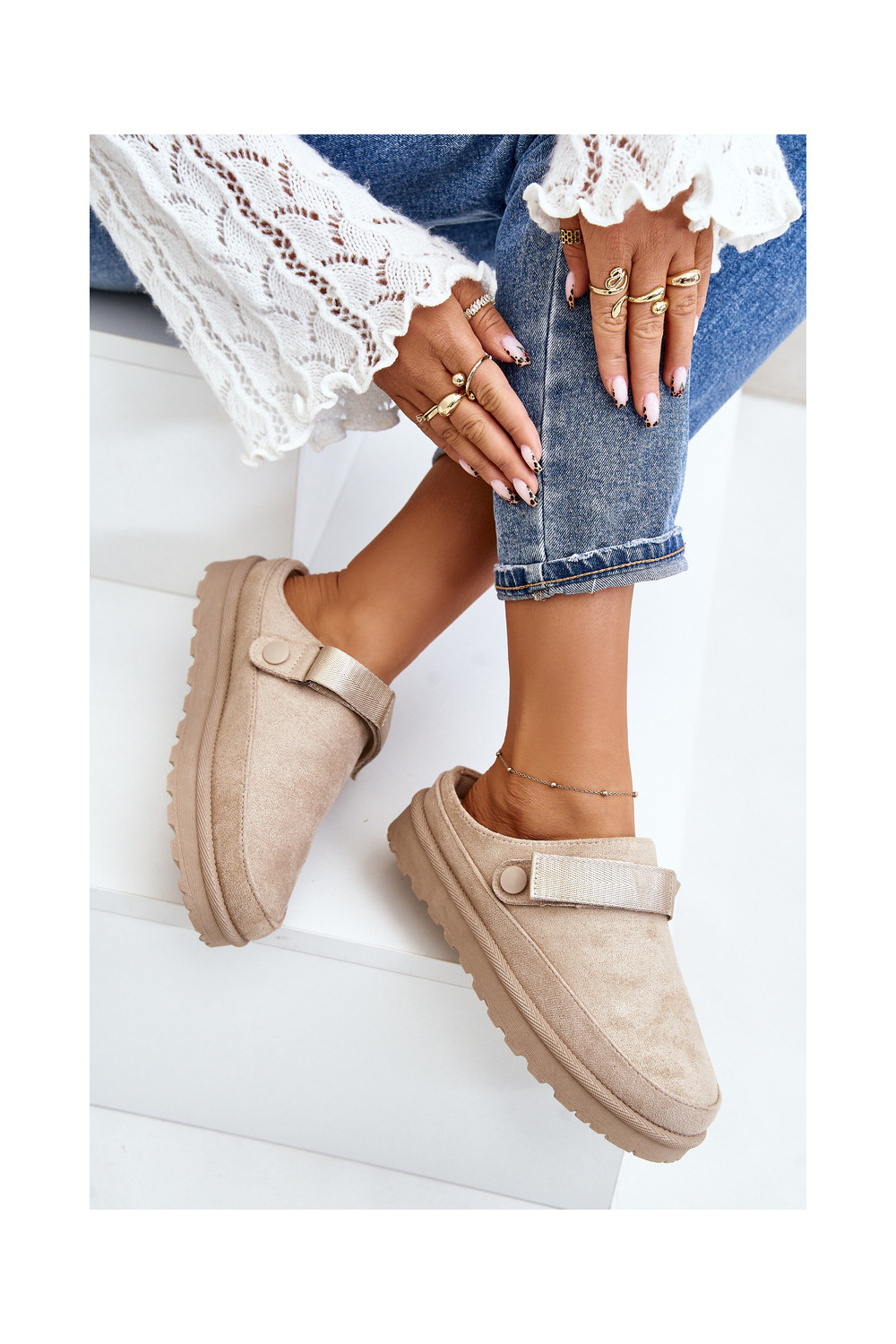 Pantofle zateplené s kožešinou uvnitř s platformou béžové Azida