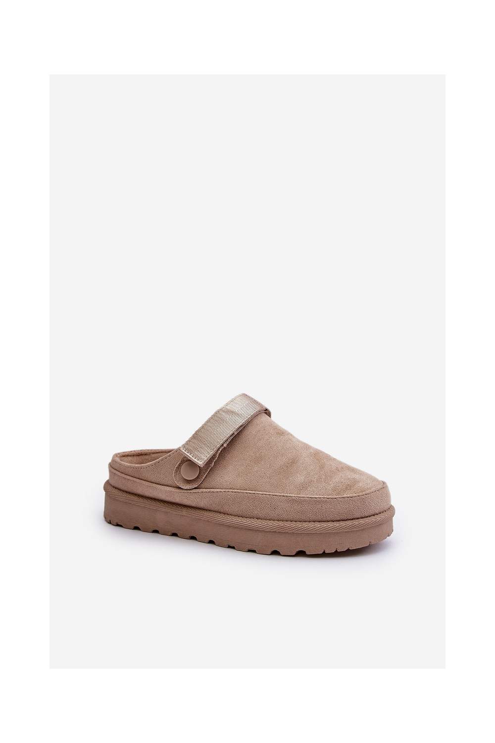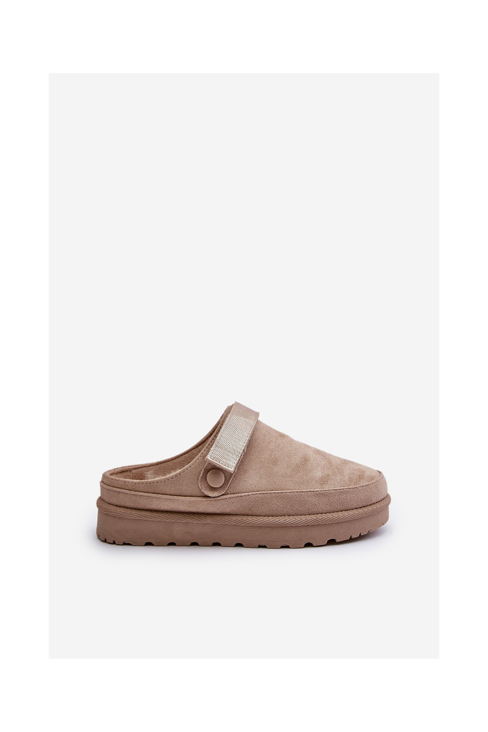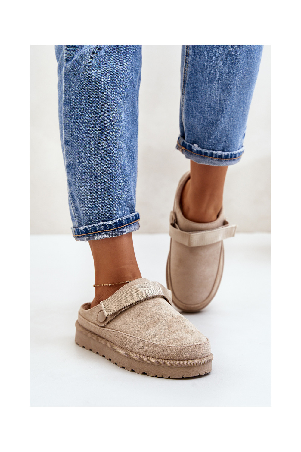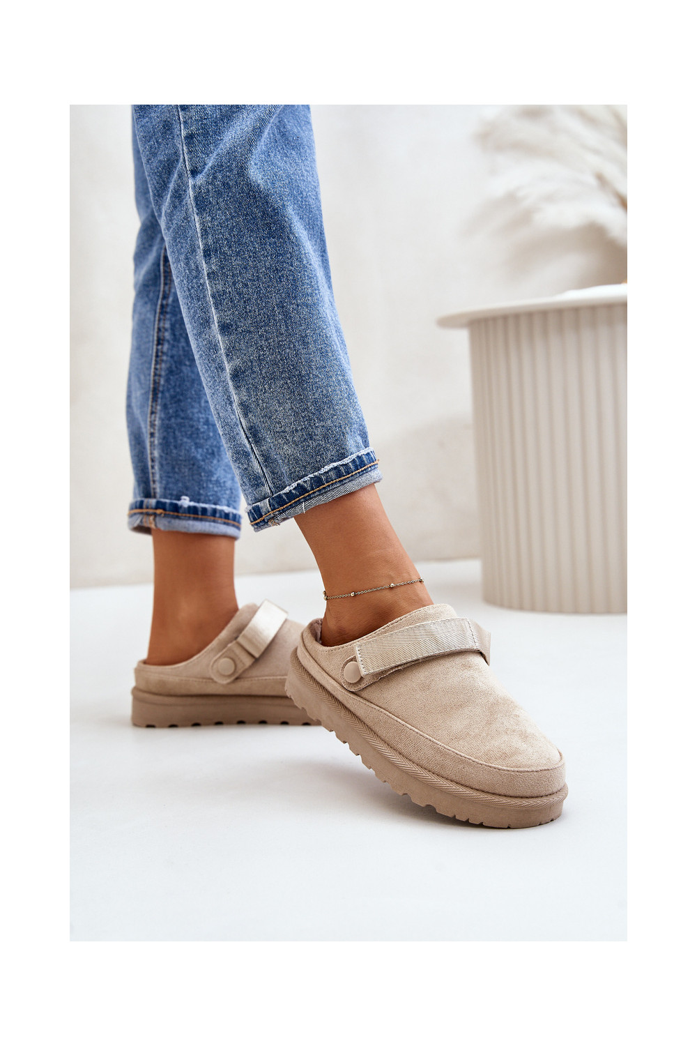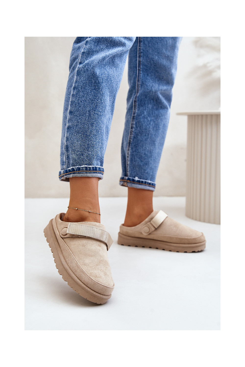 Pantofle zateplené s kožešinou uvnitř s platformou béžové Azida