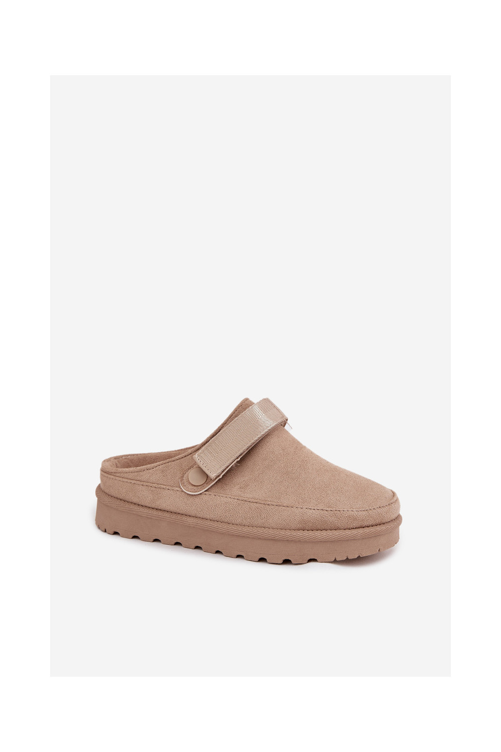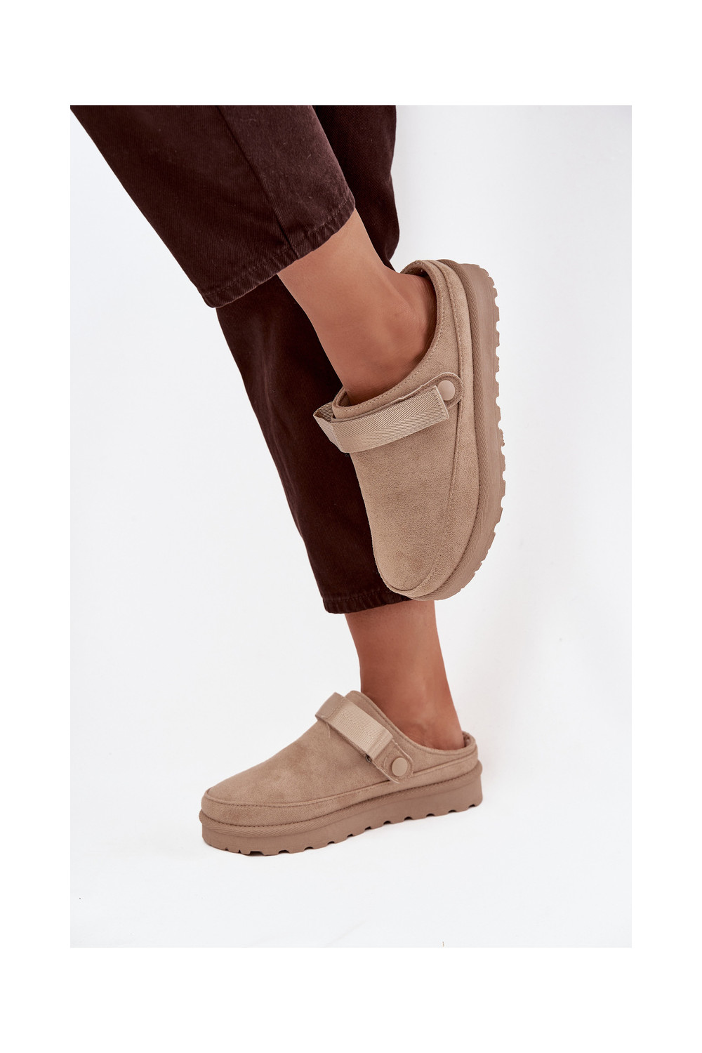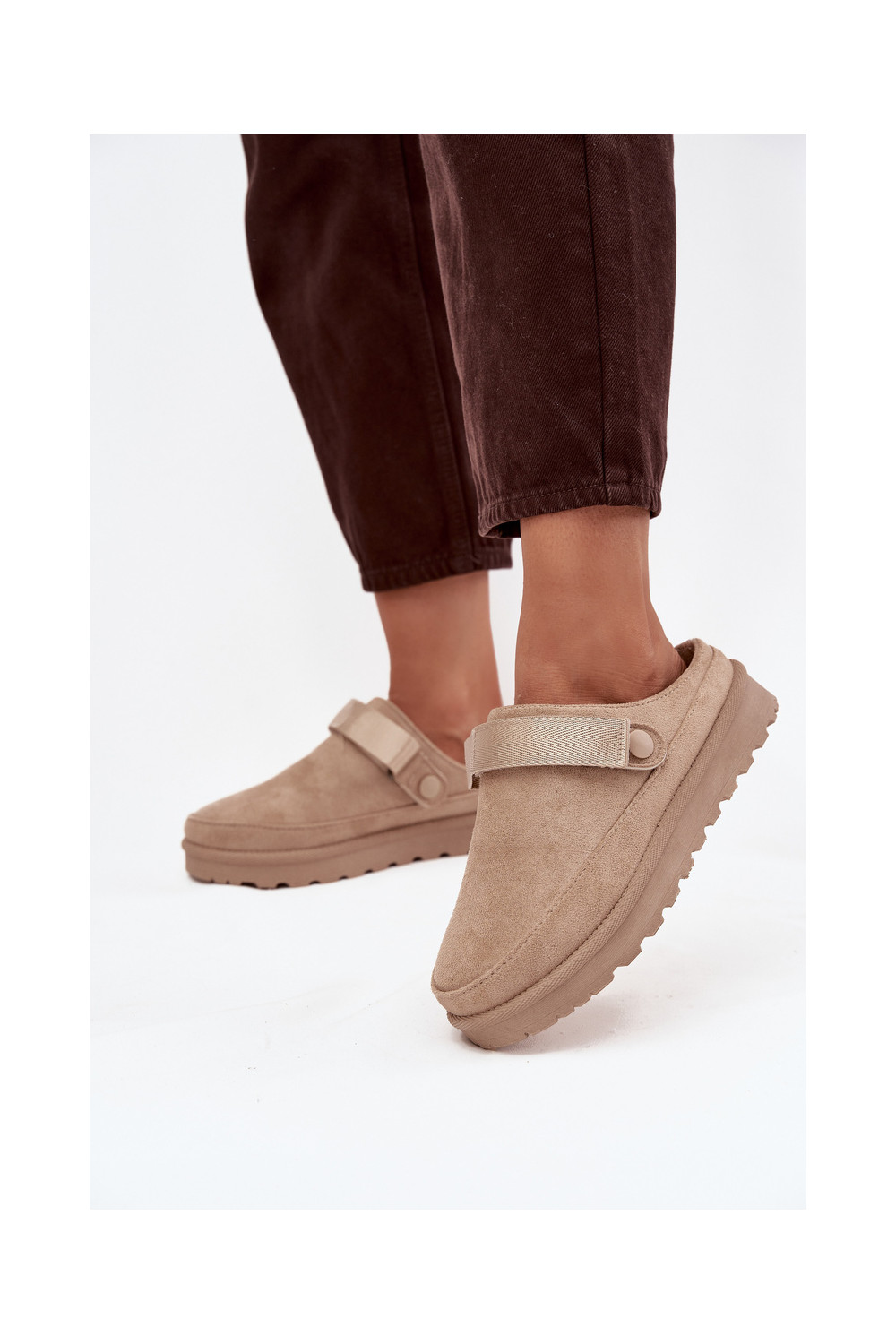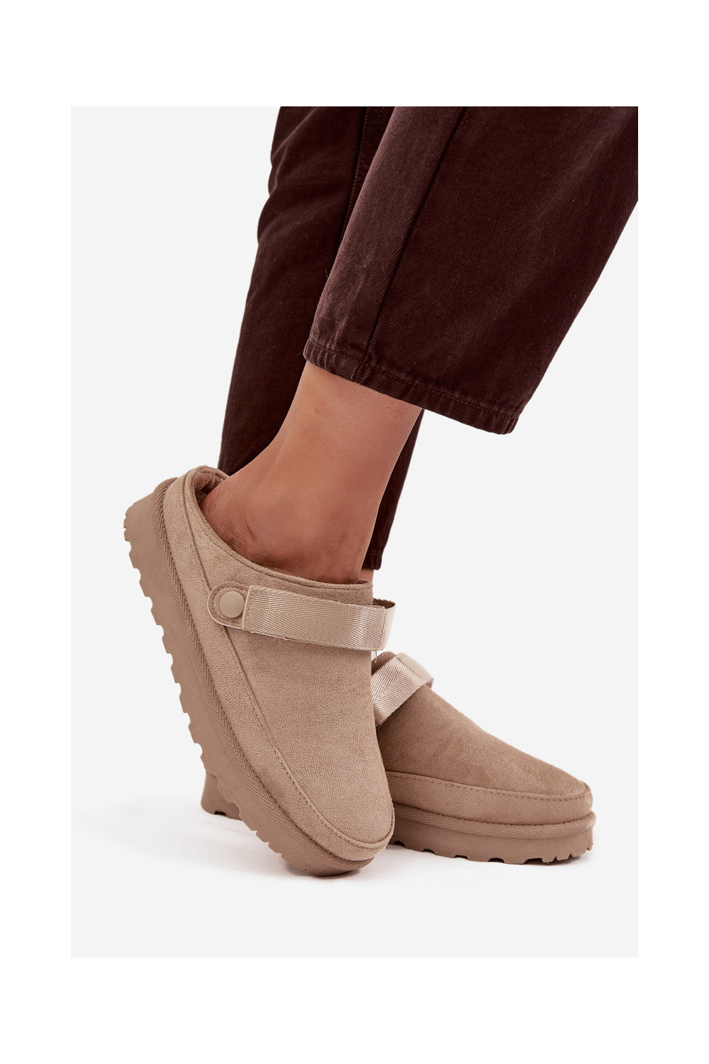 Pantofle zateplené s kožešinou uvnitř s platformou béžové Azida