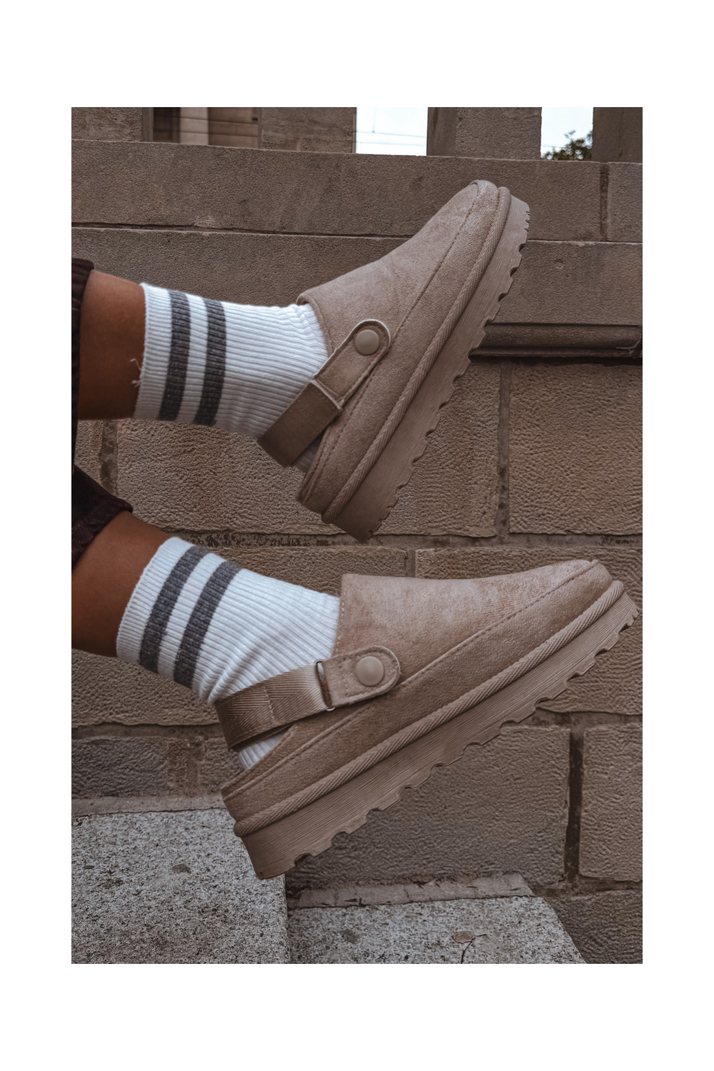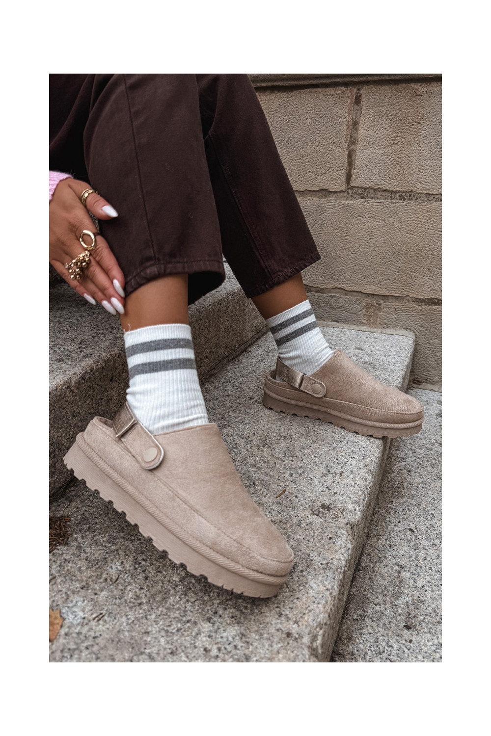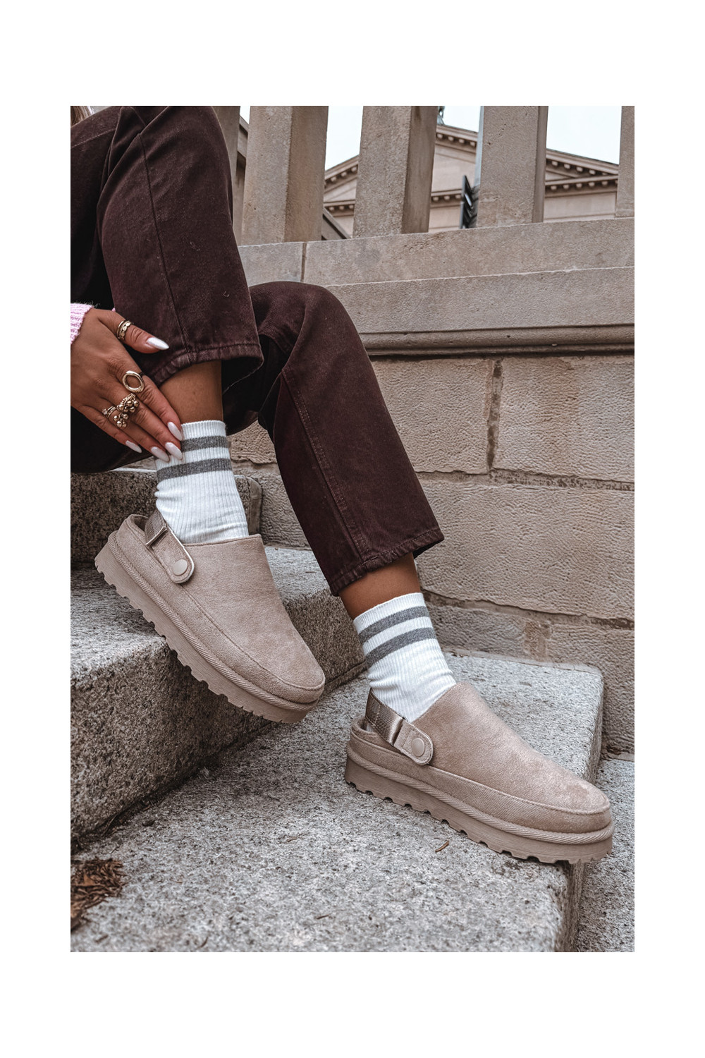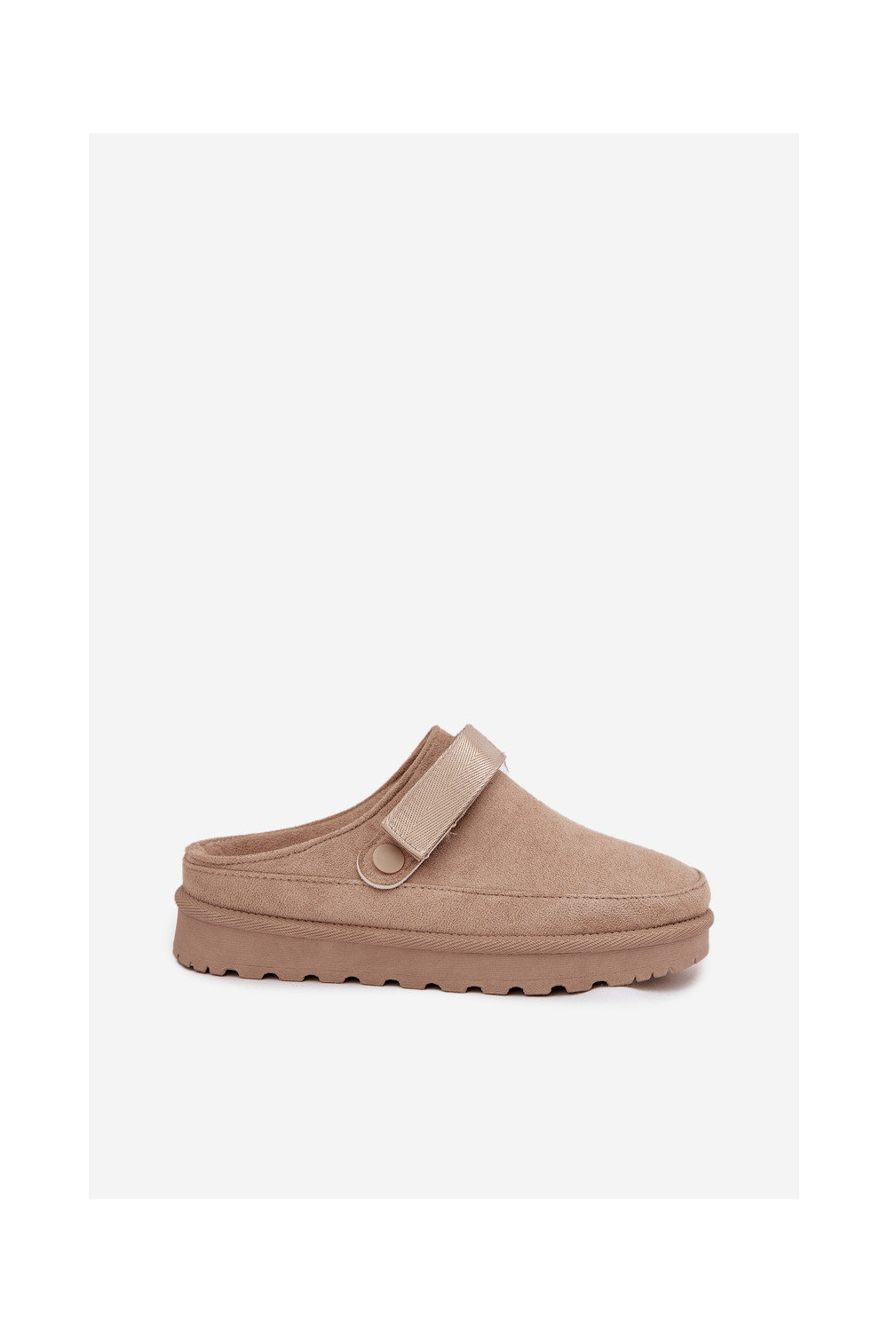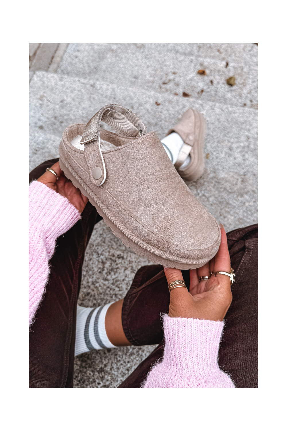 Pantofle zateplené s kožešinou uvnitř s platformou béžové Azida