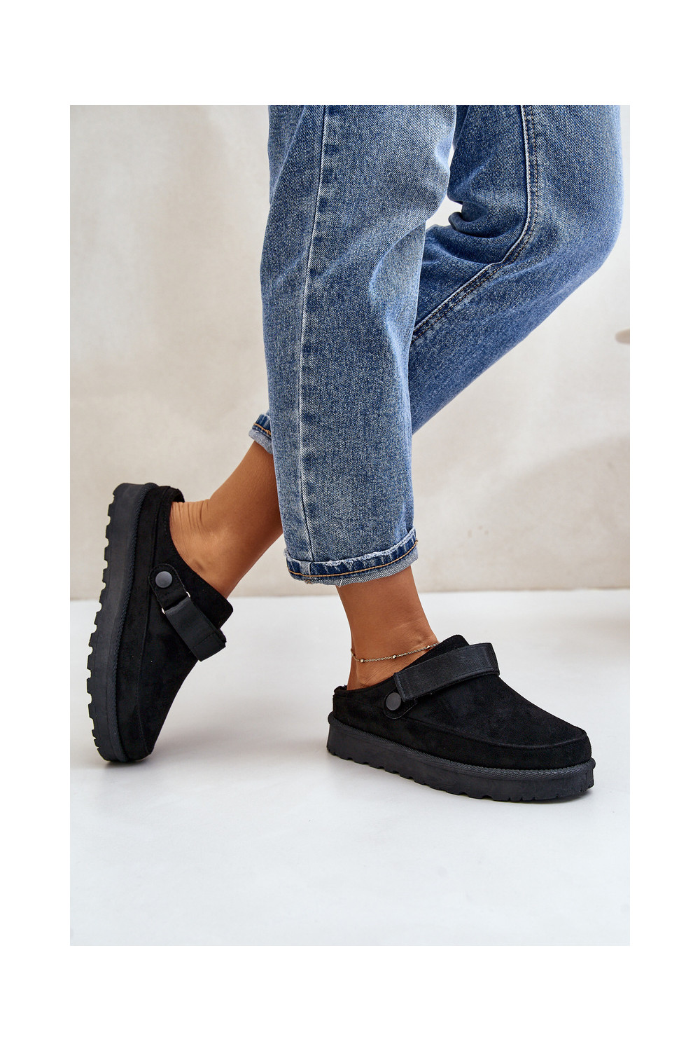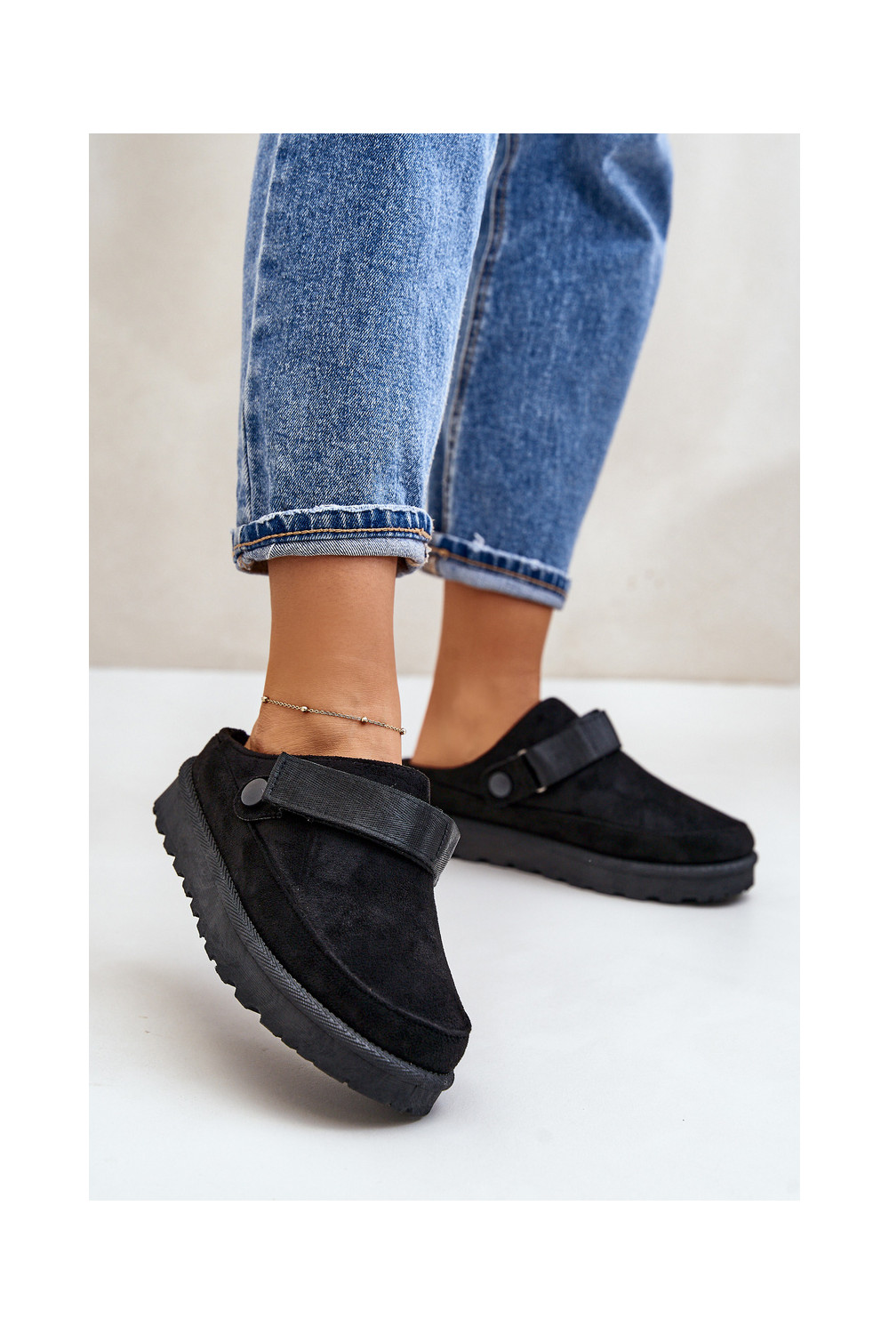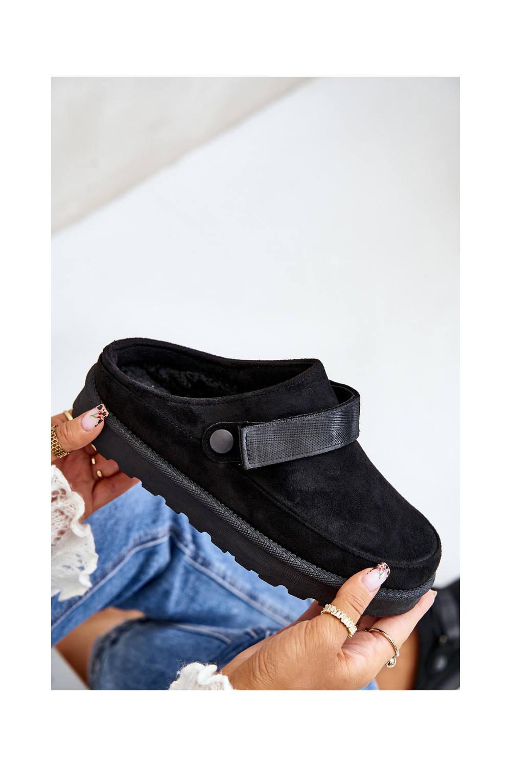 Pantofle zateplené s kožešinou uvnitř s platformou Černé Azida