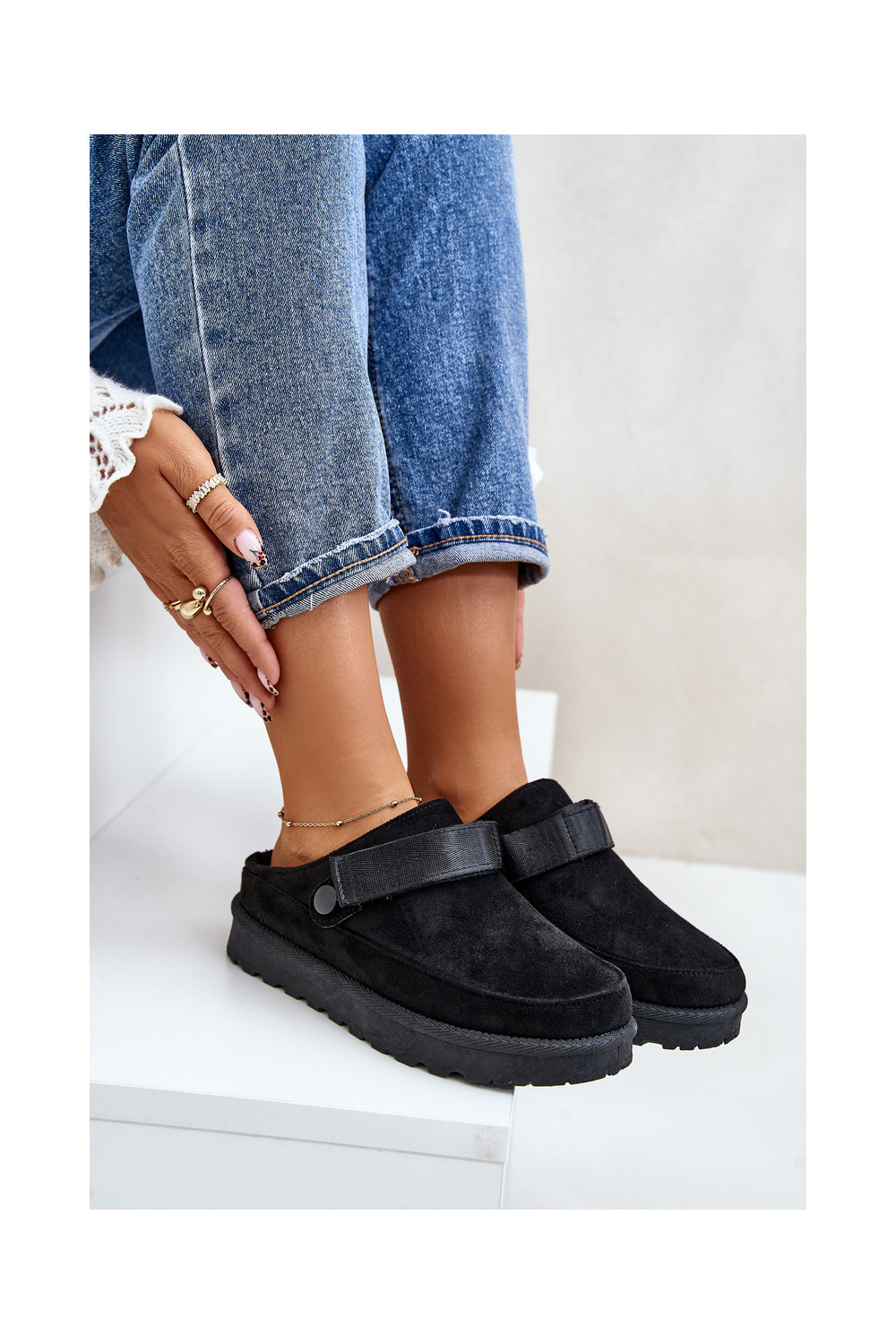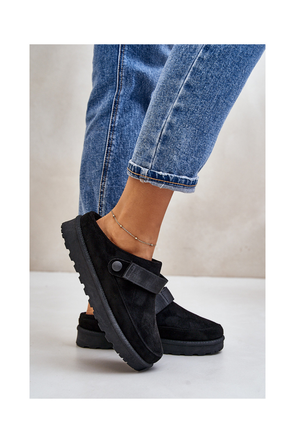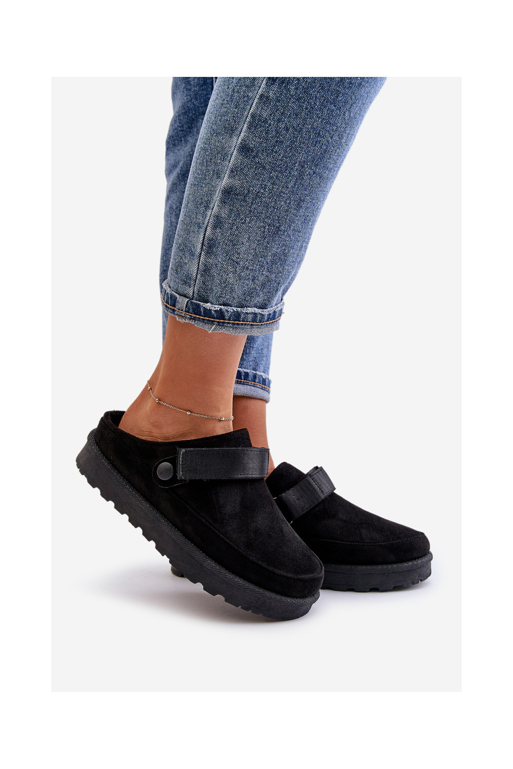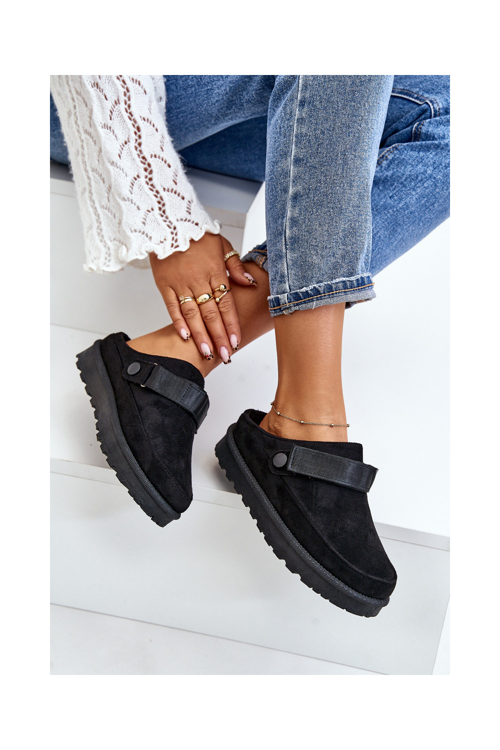 Pantofle zateplené s kožešinou uvnitř s platformou Černé Azida