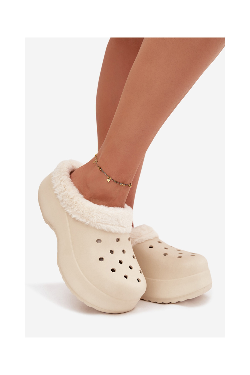 Dámské pantofle zateplené s kožešinou uvnitř béžové Palvine
