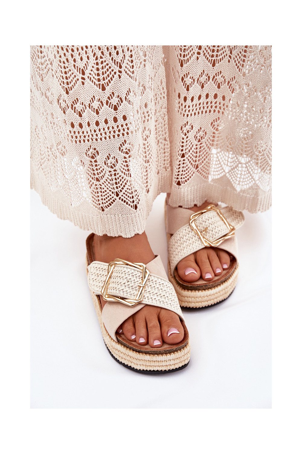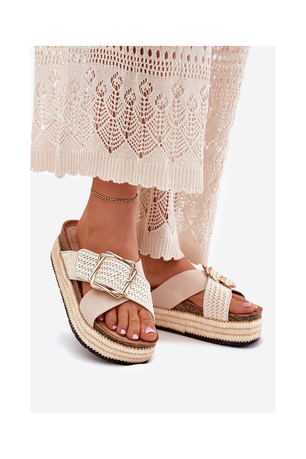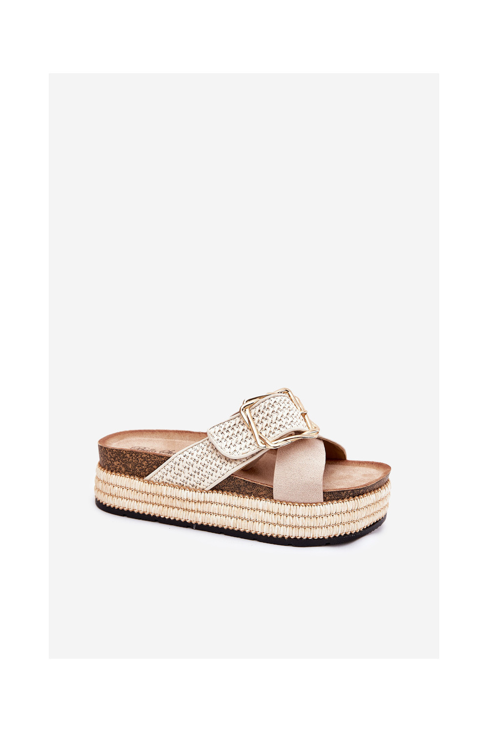 Dámské pantofle s platformou I Złotą s přezkami béžové Filazzia
