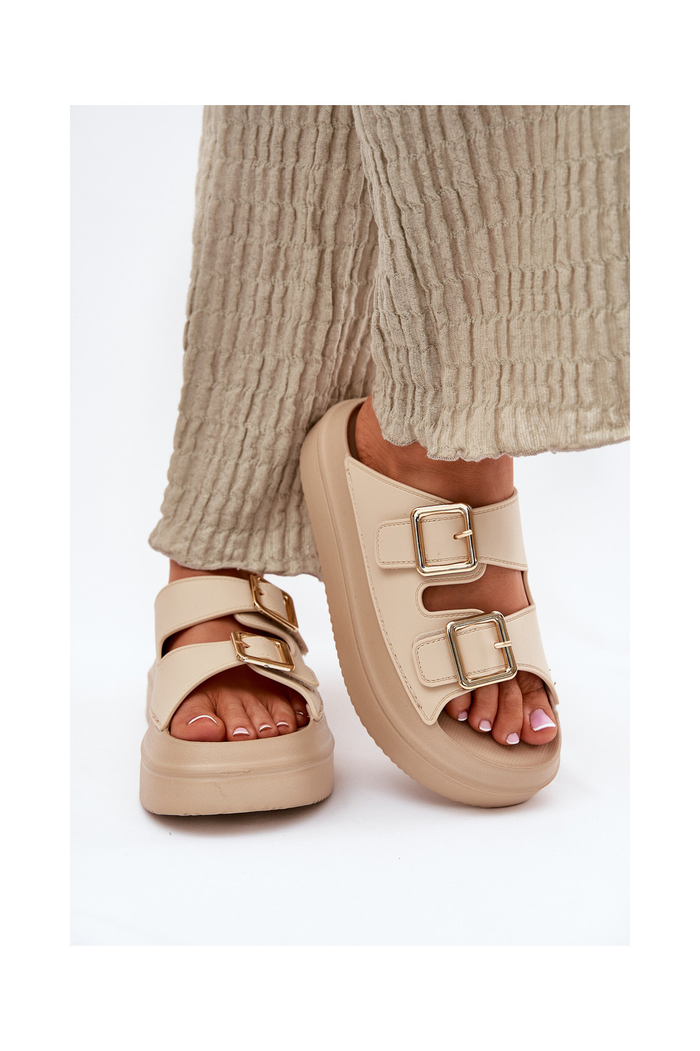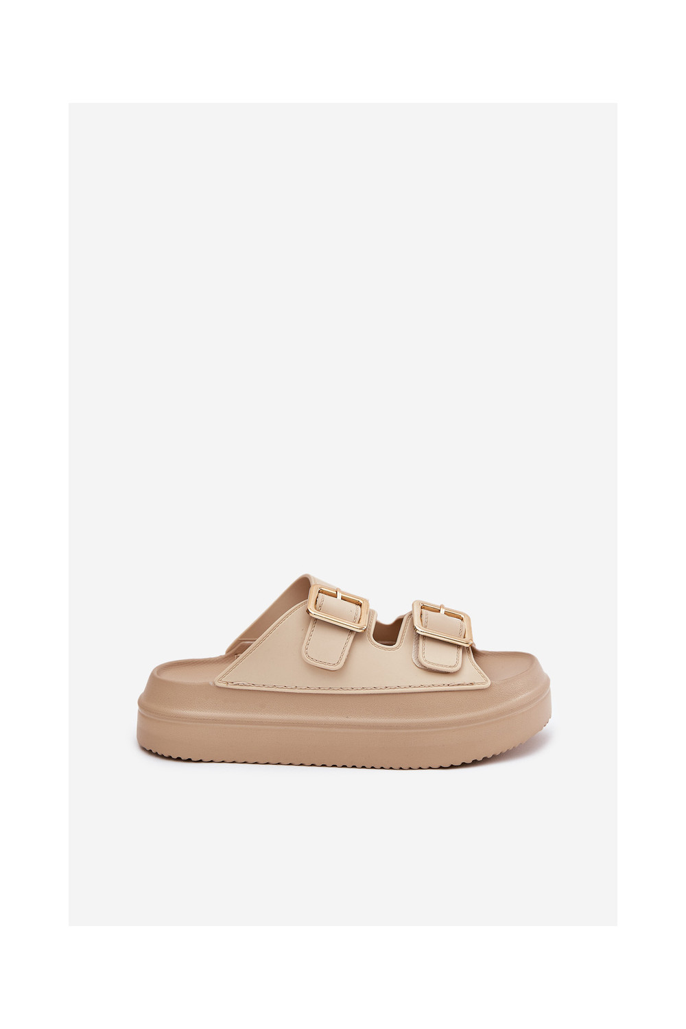Dámské pantofle s platformou Ze zlaté barvymi s přezkamimi béžové Zorila