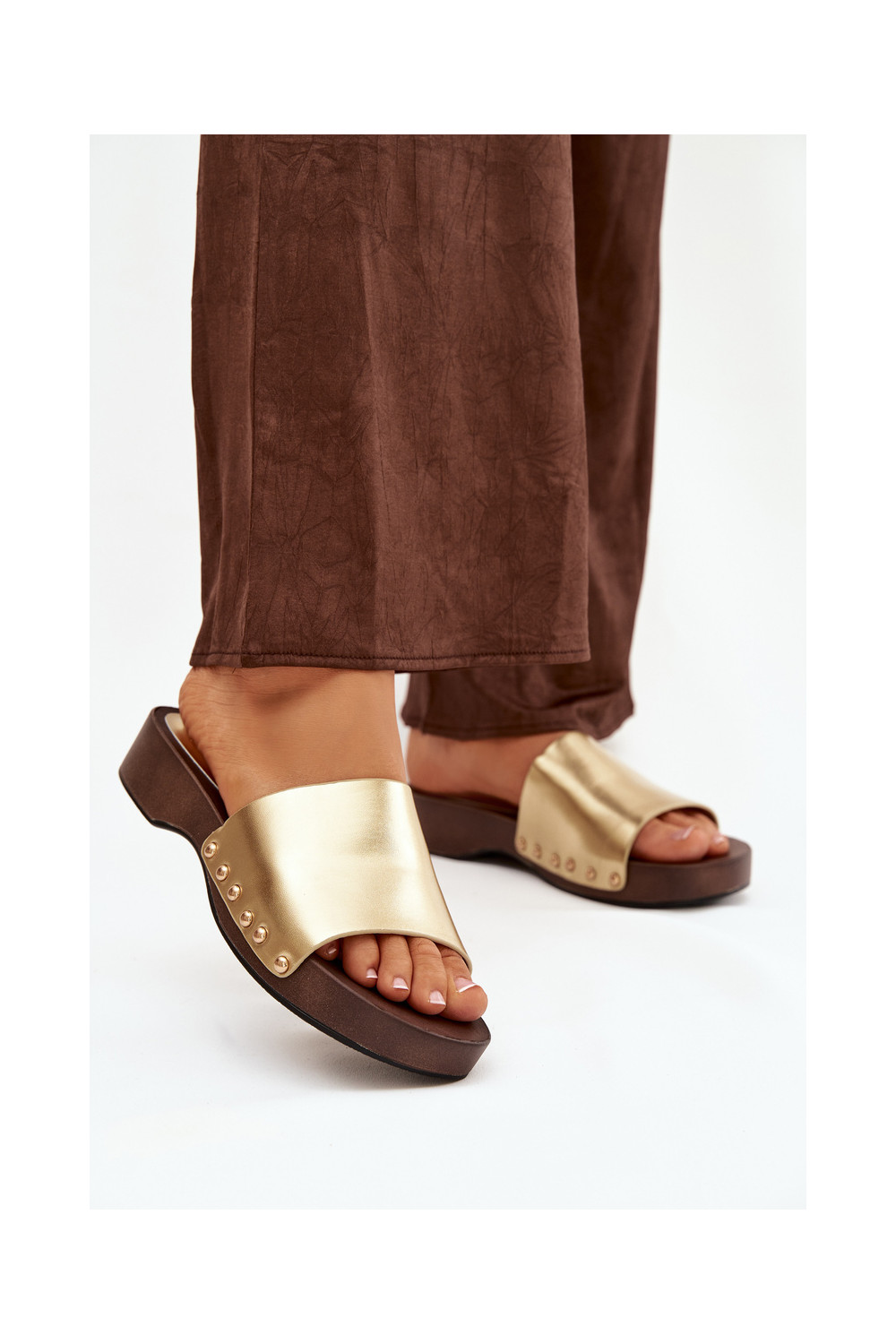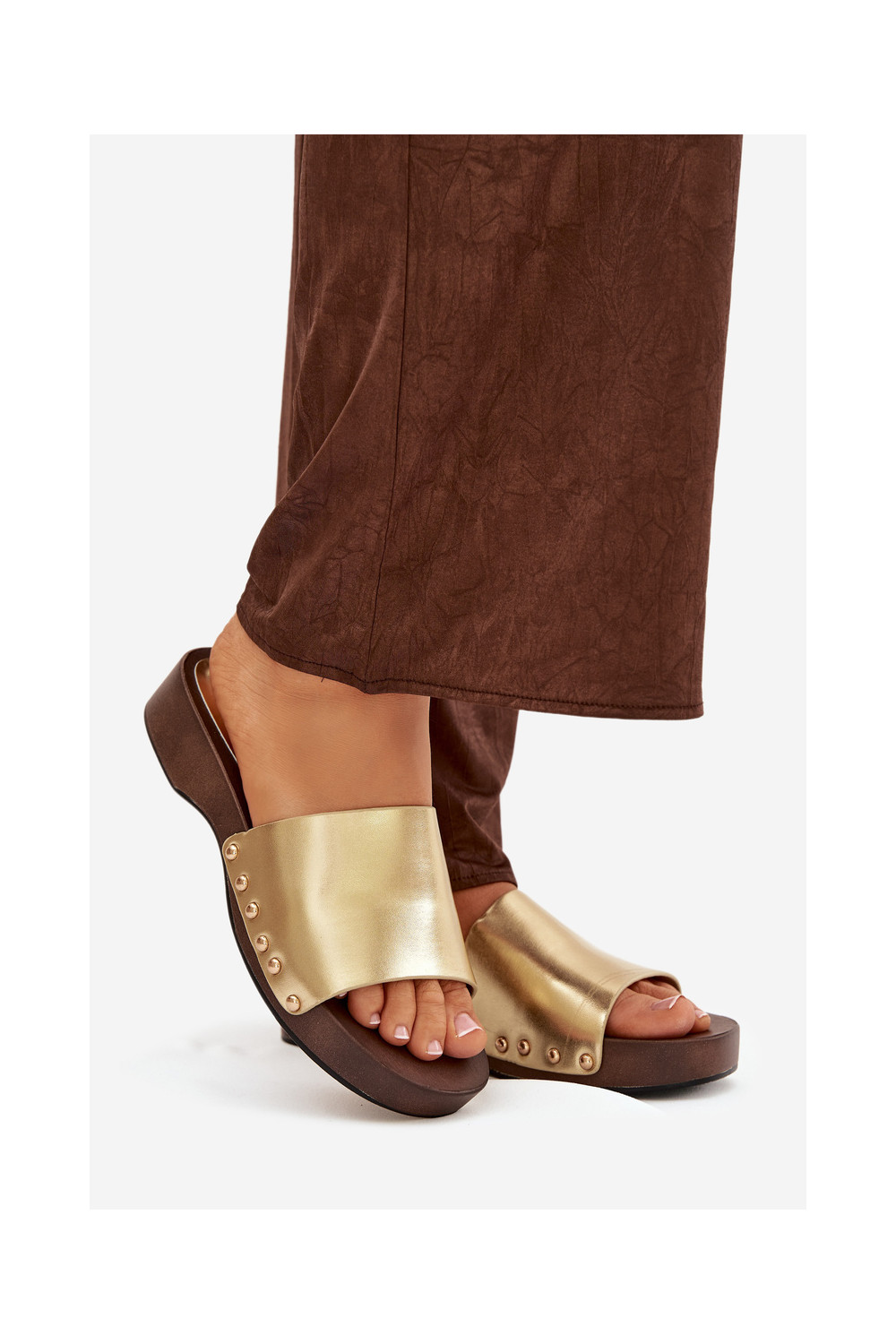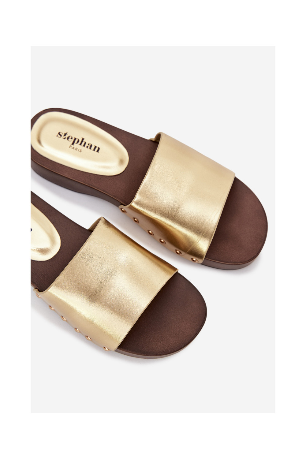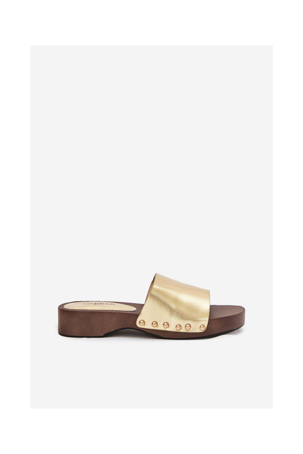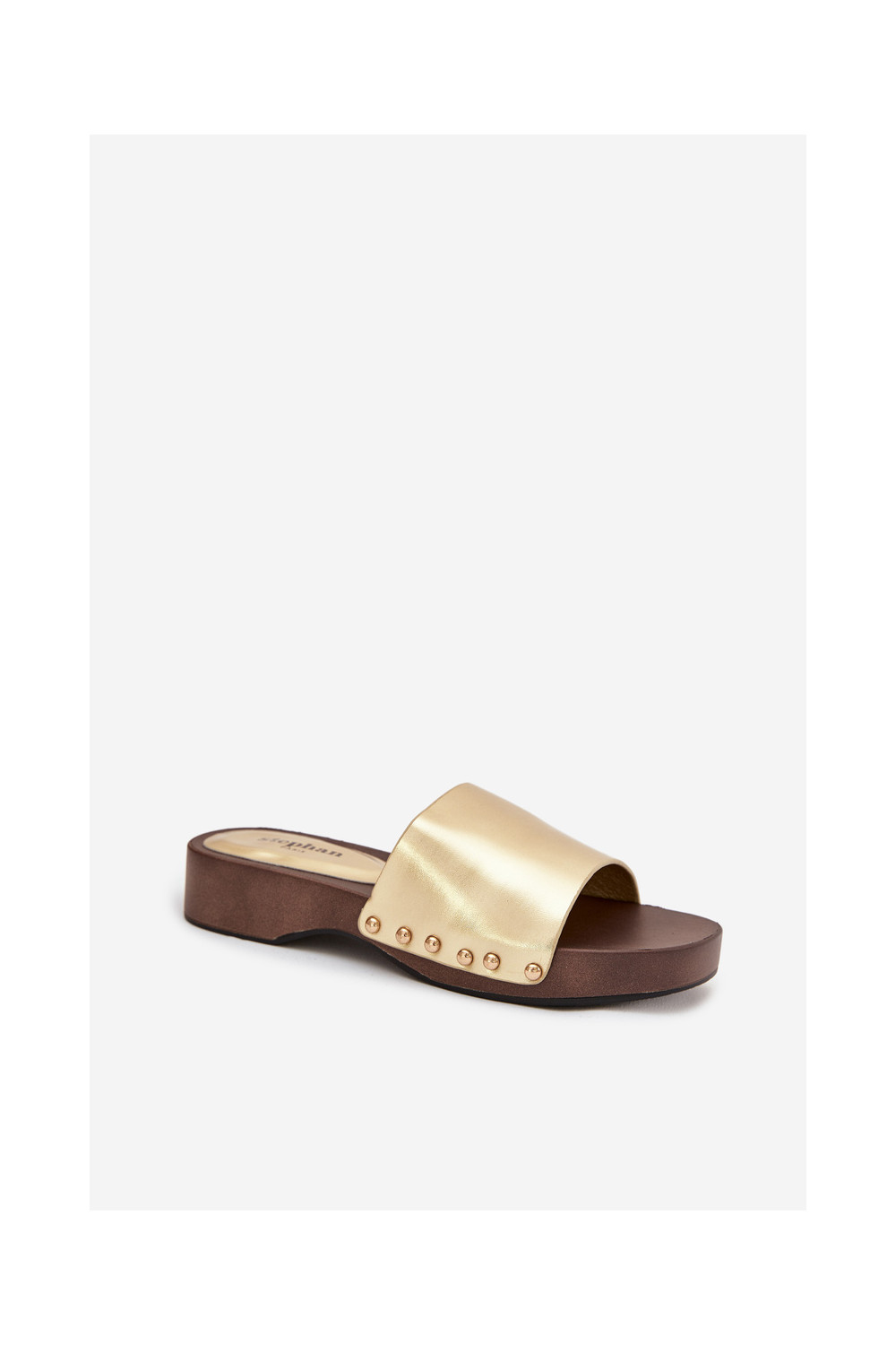 Dámské pantofle s nýty zlaté barvy Terissa