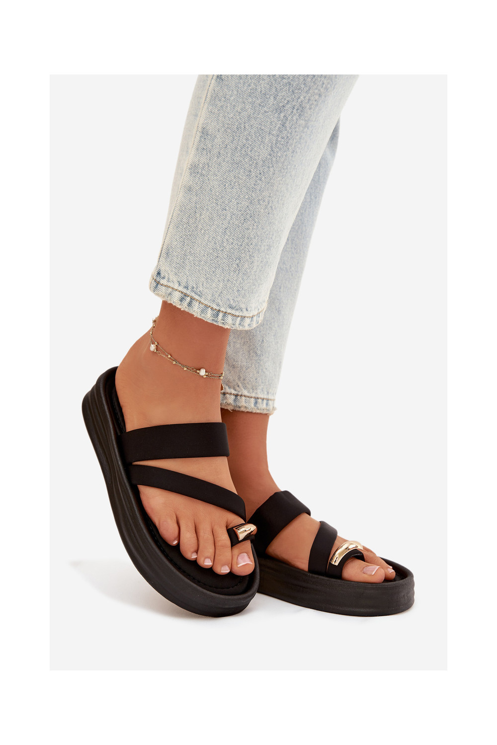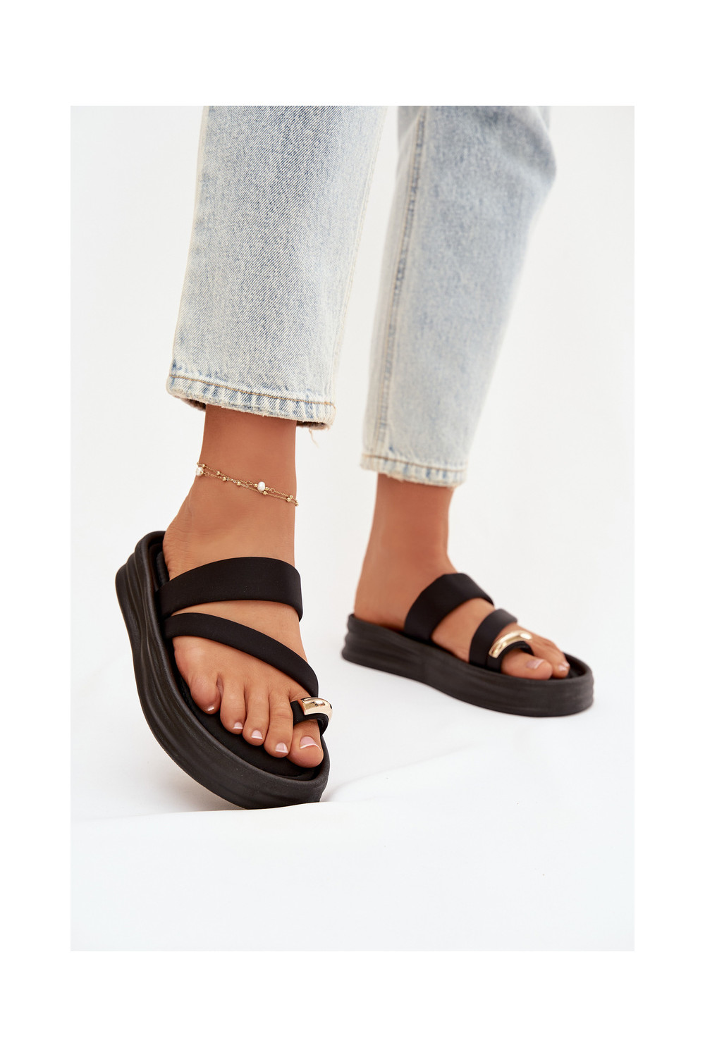 Dámské pantofle s pruhy I zlaté barvym Detalem Černé Farielle