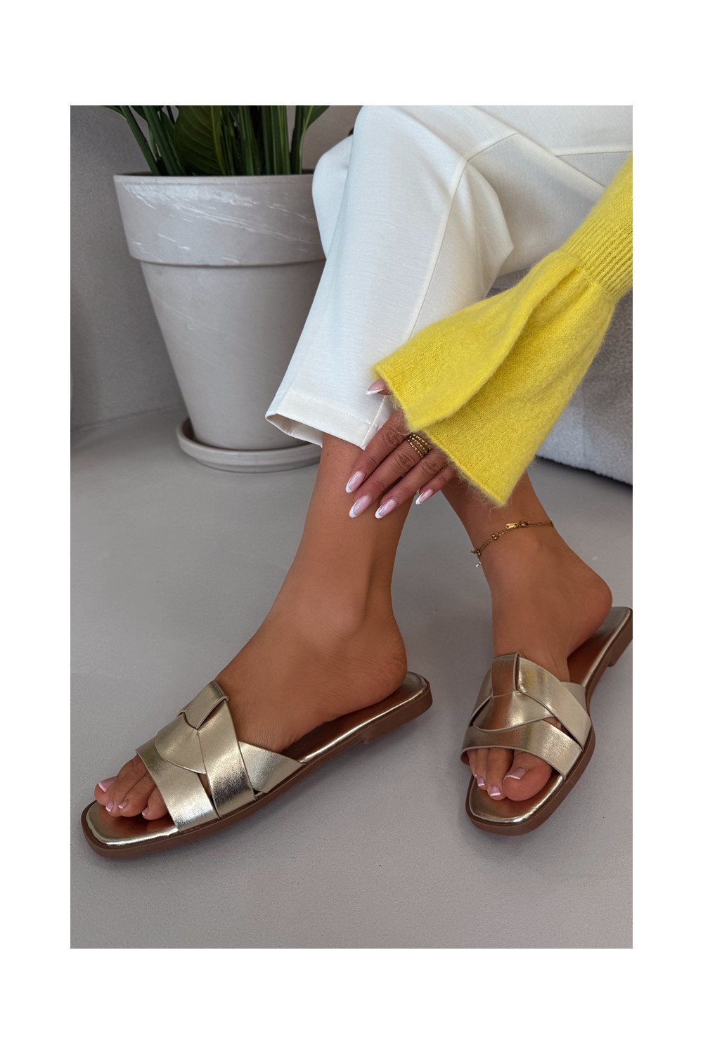 Pantofle s pruhy zlaté barvy Marissae