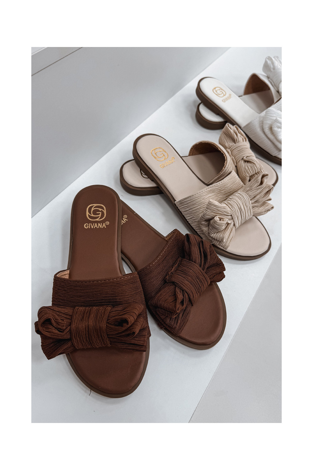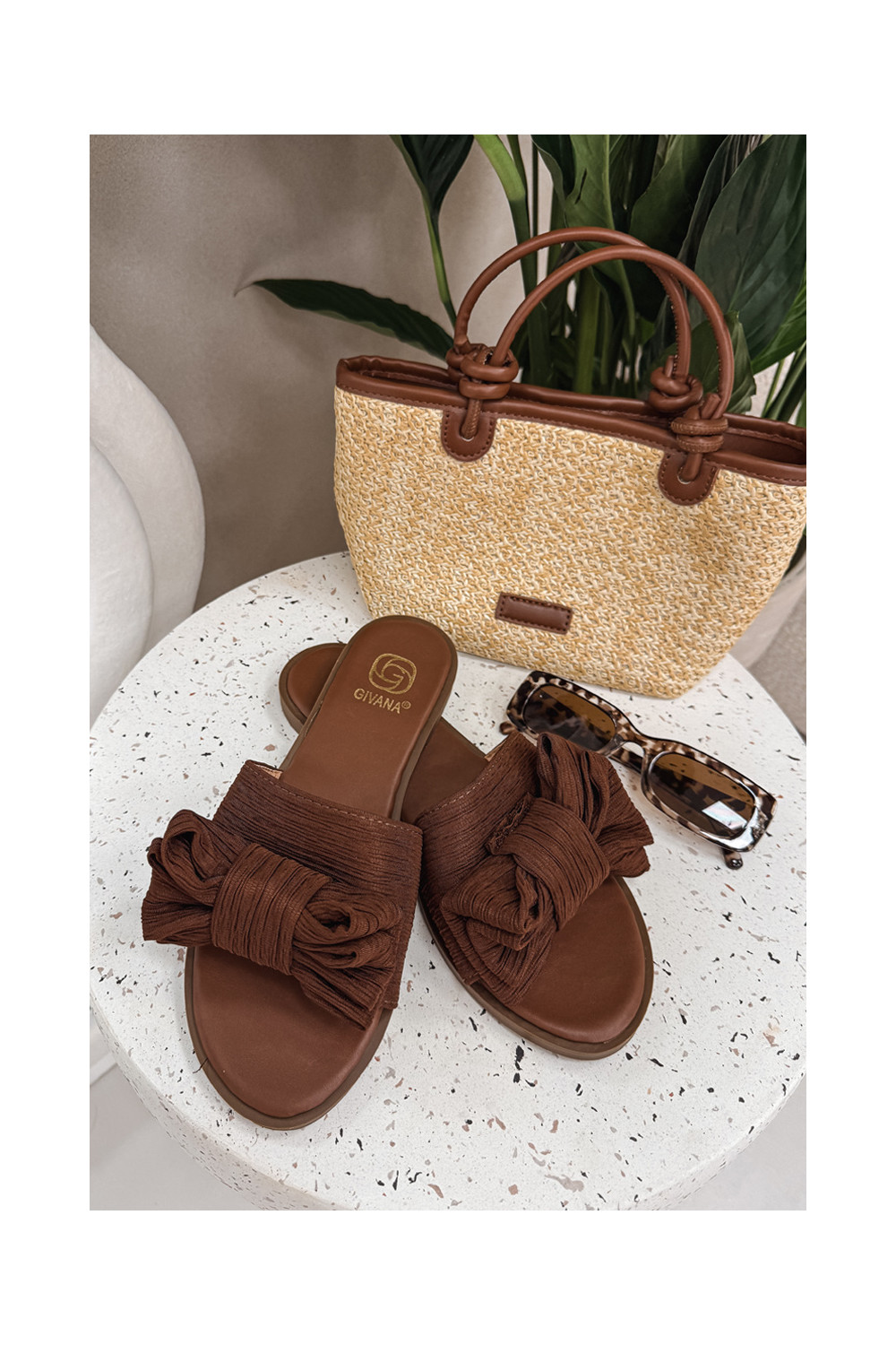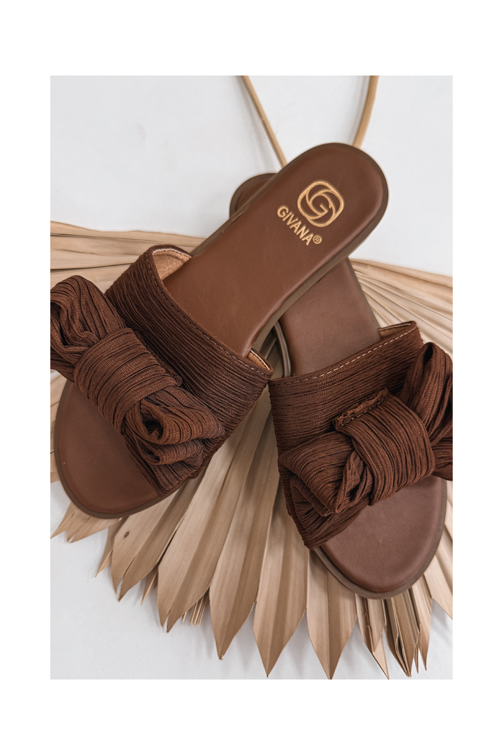 Dámské pantofle s širokými podpatky se stuhami hnědá Amivelle