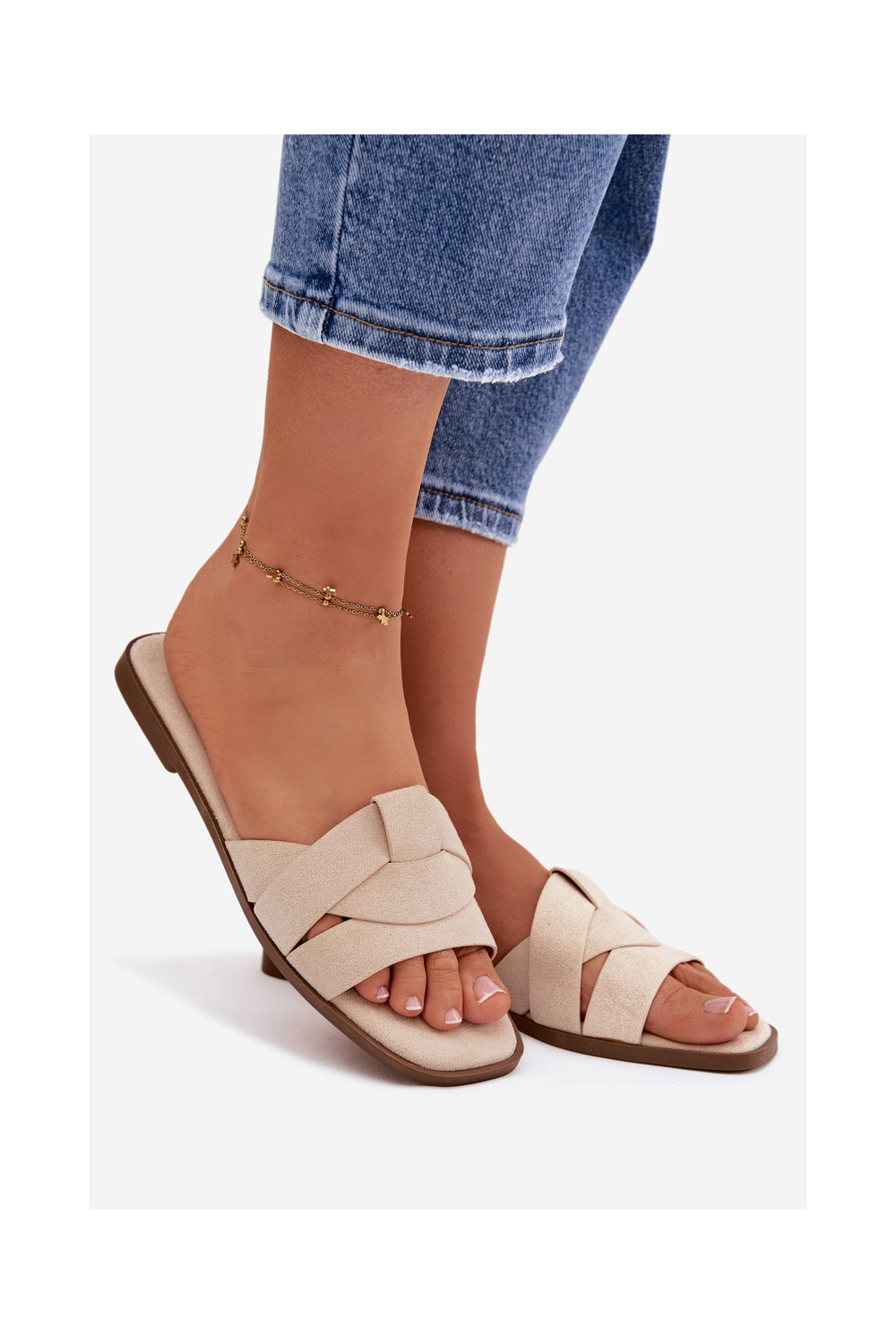 Pantofle s pruhy z eko semišeowe slonová kost Florane