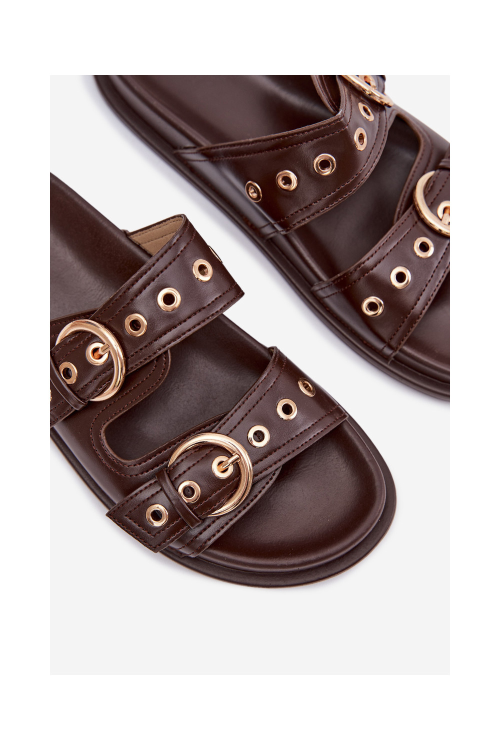 Dámské pantofle Ze zlaté barvymi s přezkamimi Eko Czekoladowe Bellarya