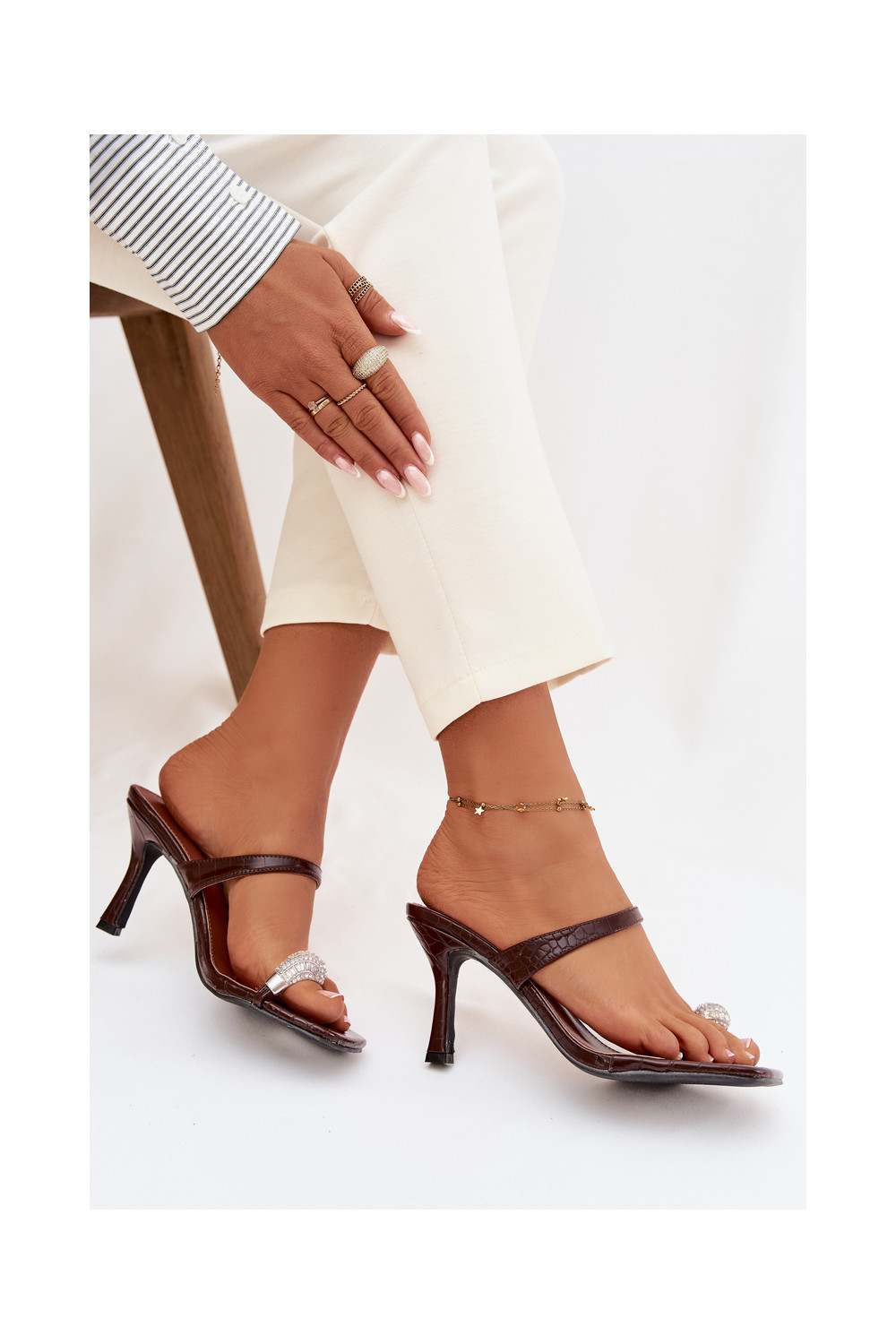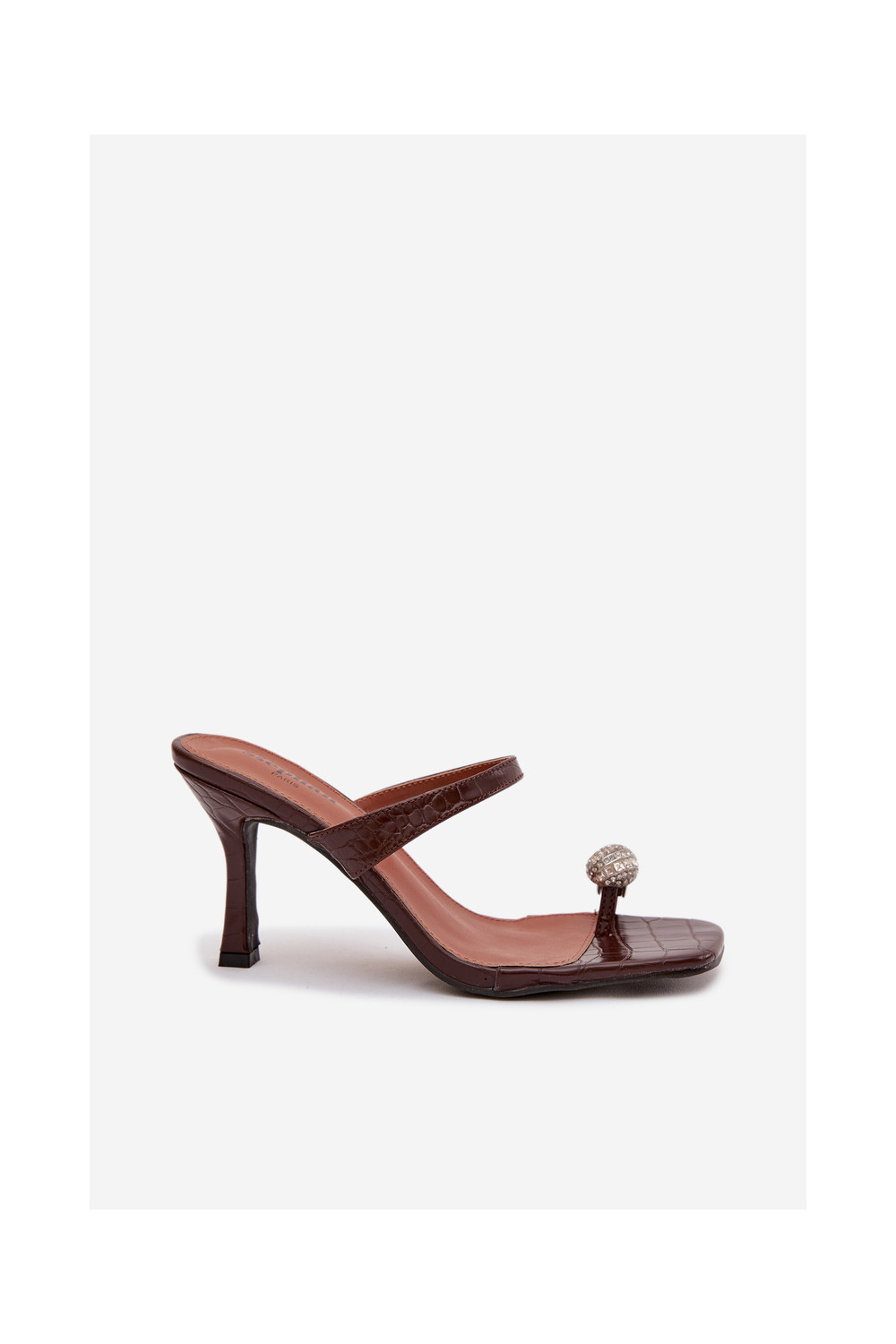 Dámské pantofle s tenkými podpatky Detalem Czekoladowe Lorissa