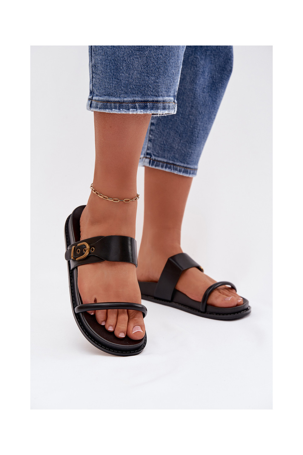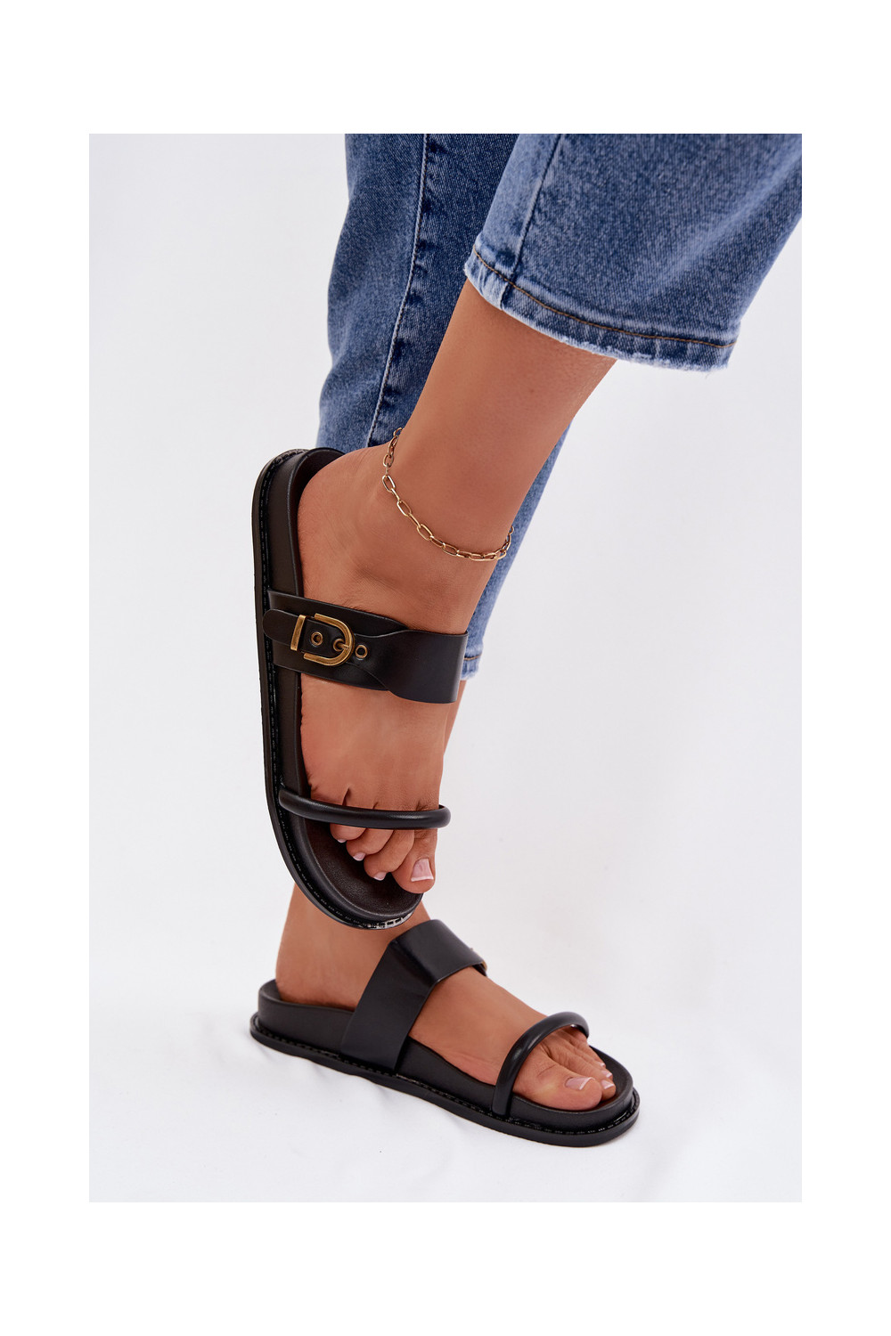 Dámské pantofle se zlatými přezkami Černé Sarilisse