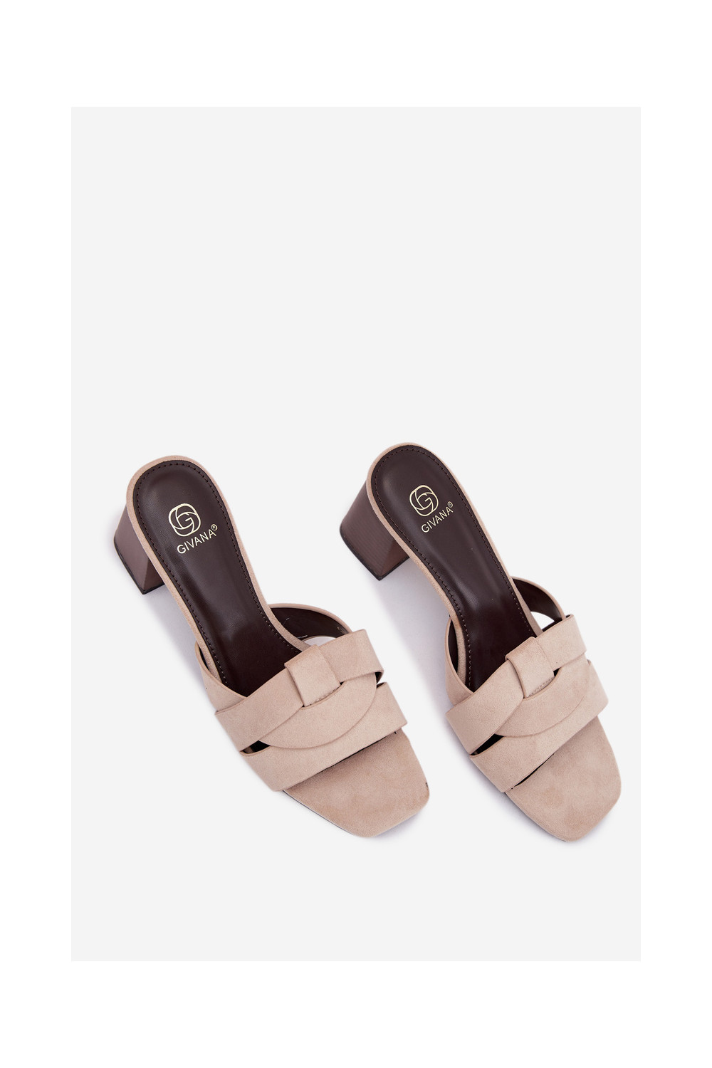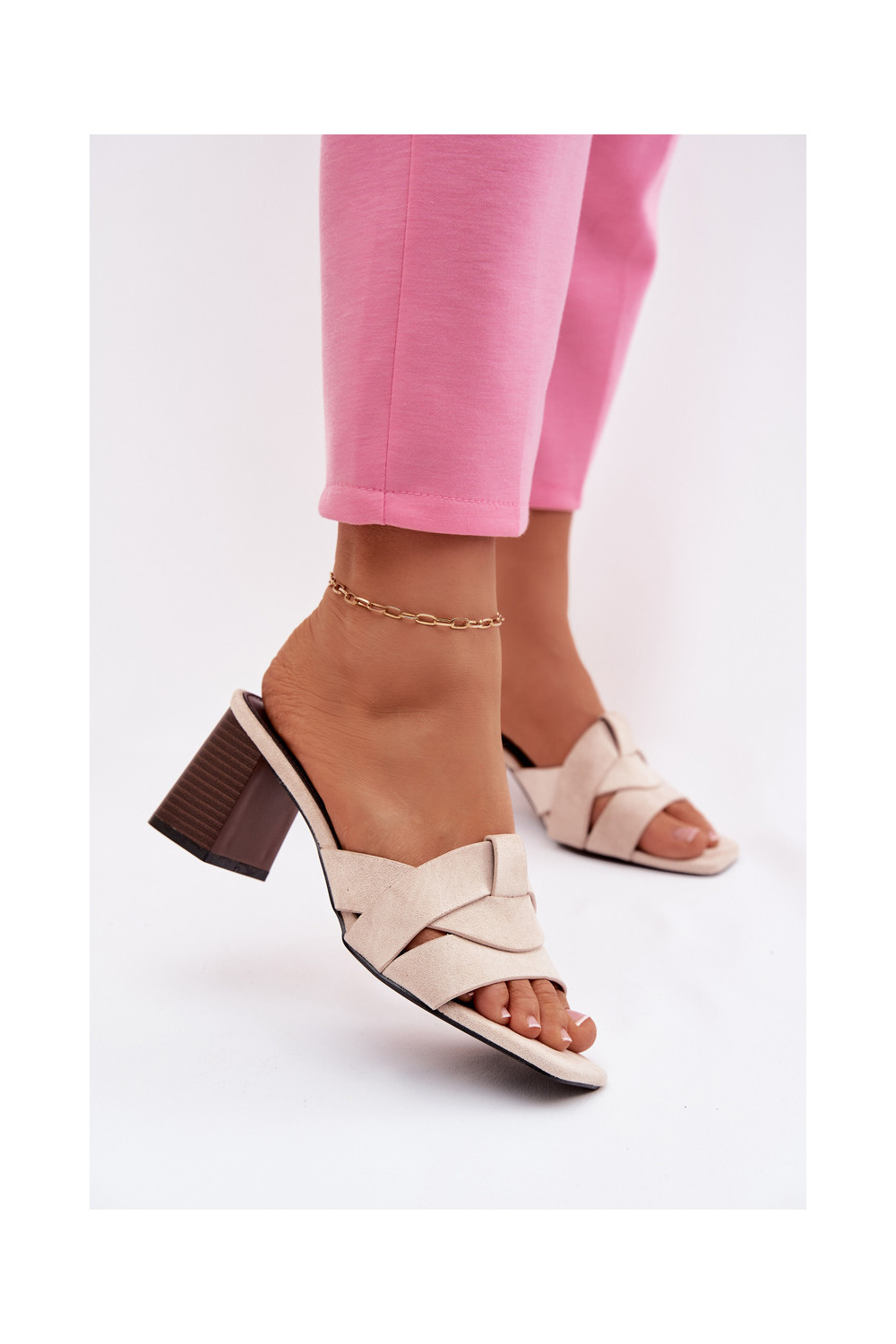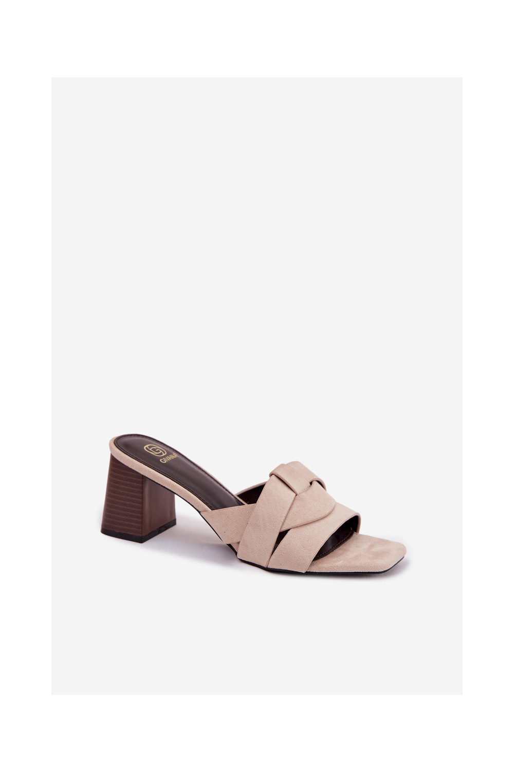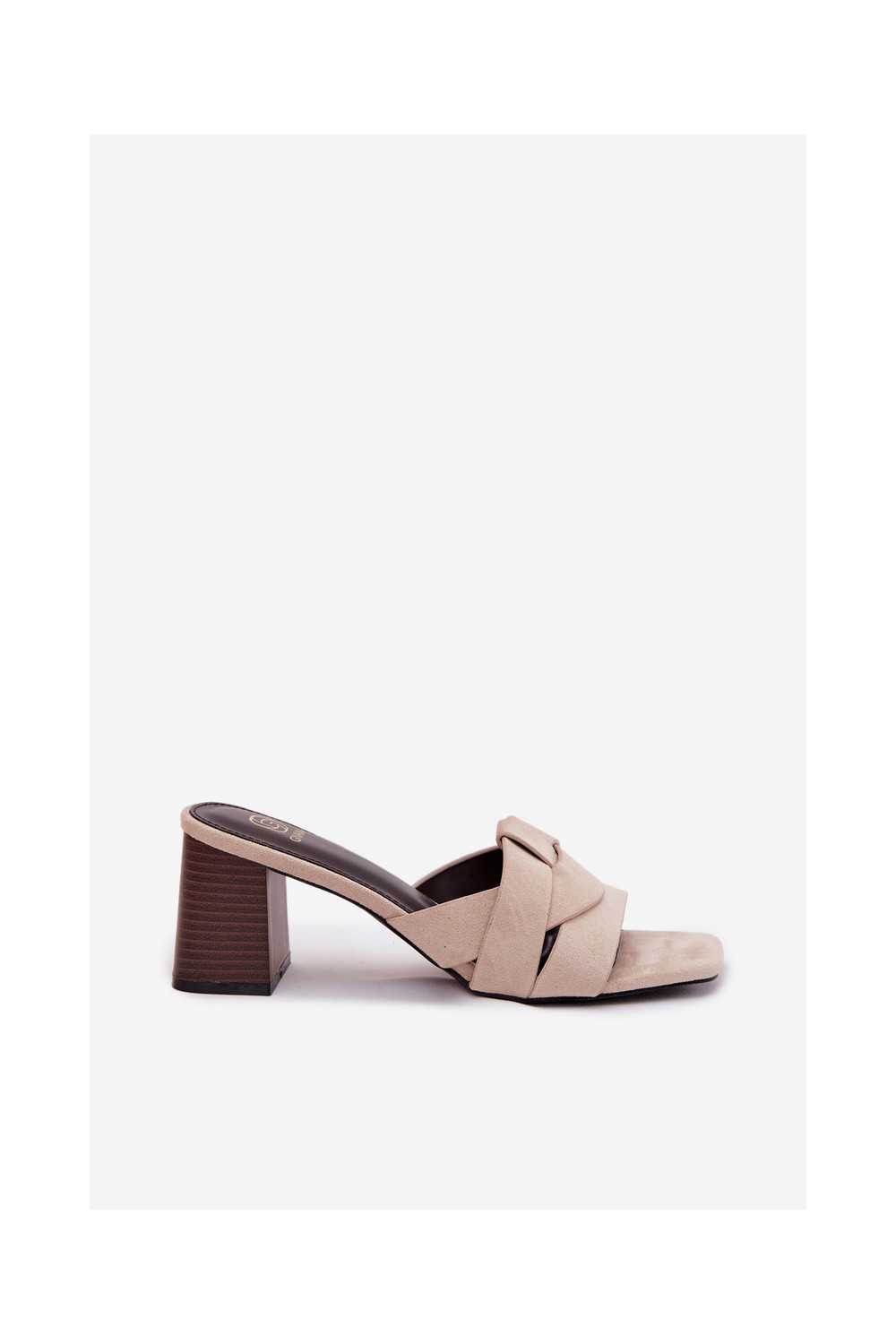Dámské pantofle s podpatky s pruhy z eko semišeowe béžové Corivelle