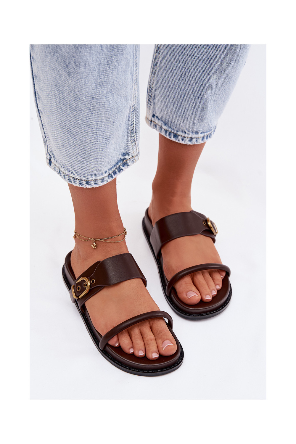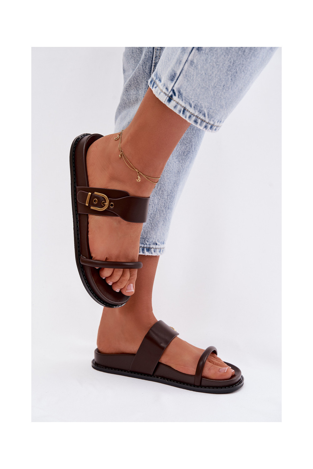 Dámské pantofle se zlatými přezkami Czekoladowe Sarilisse