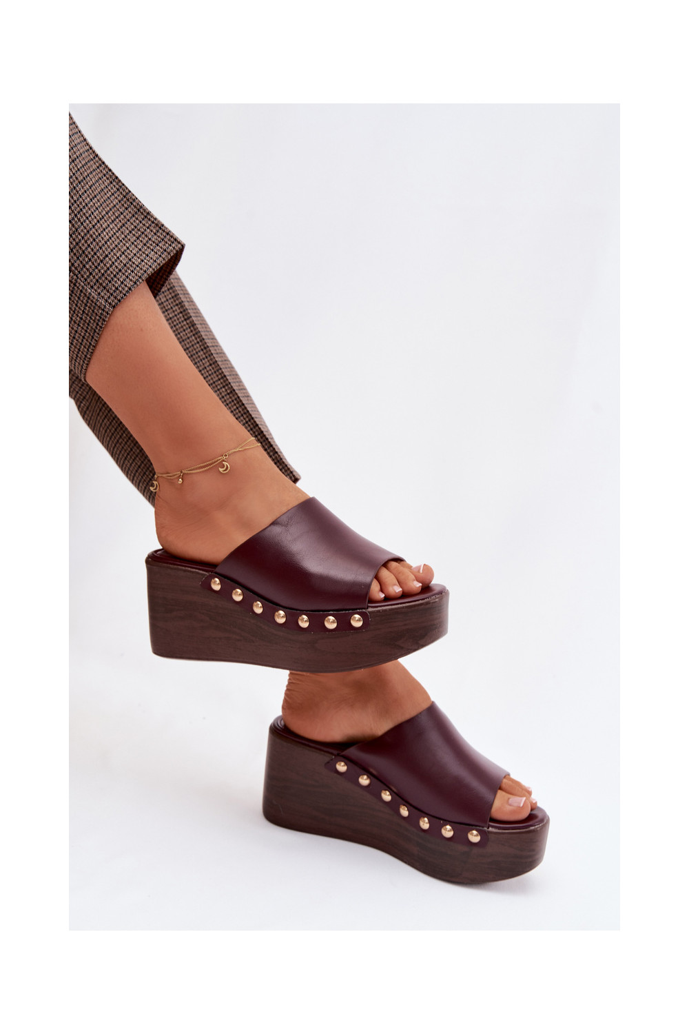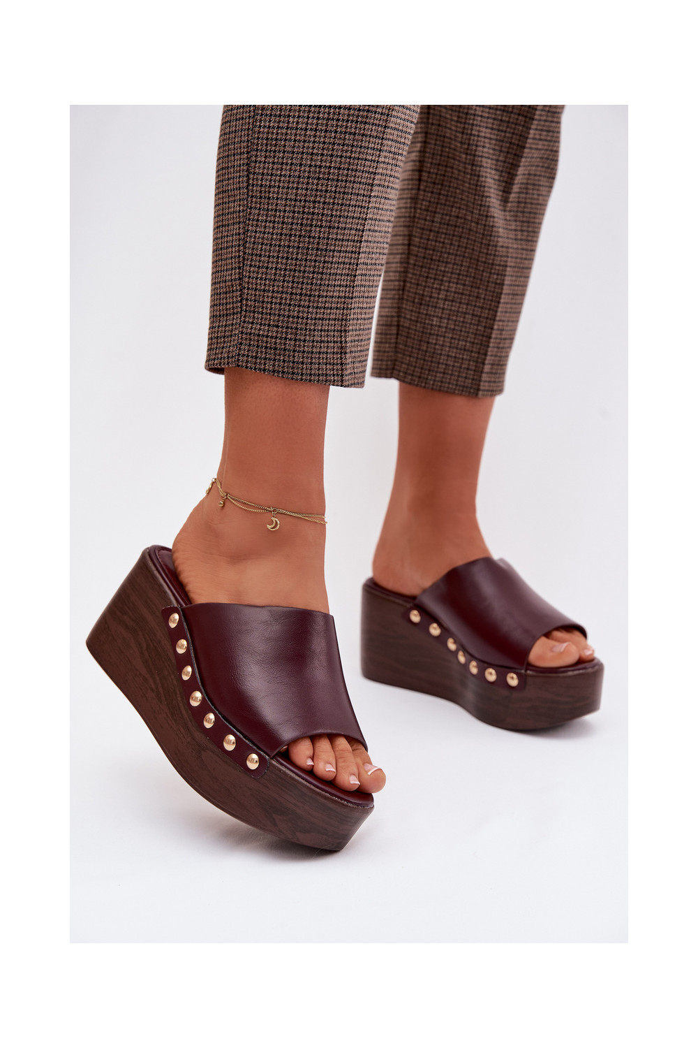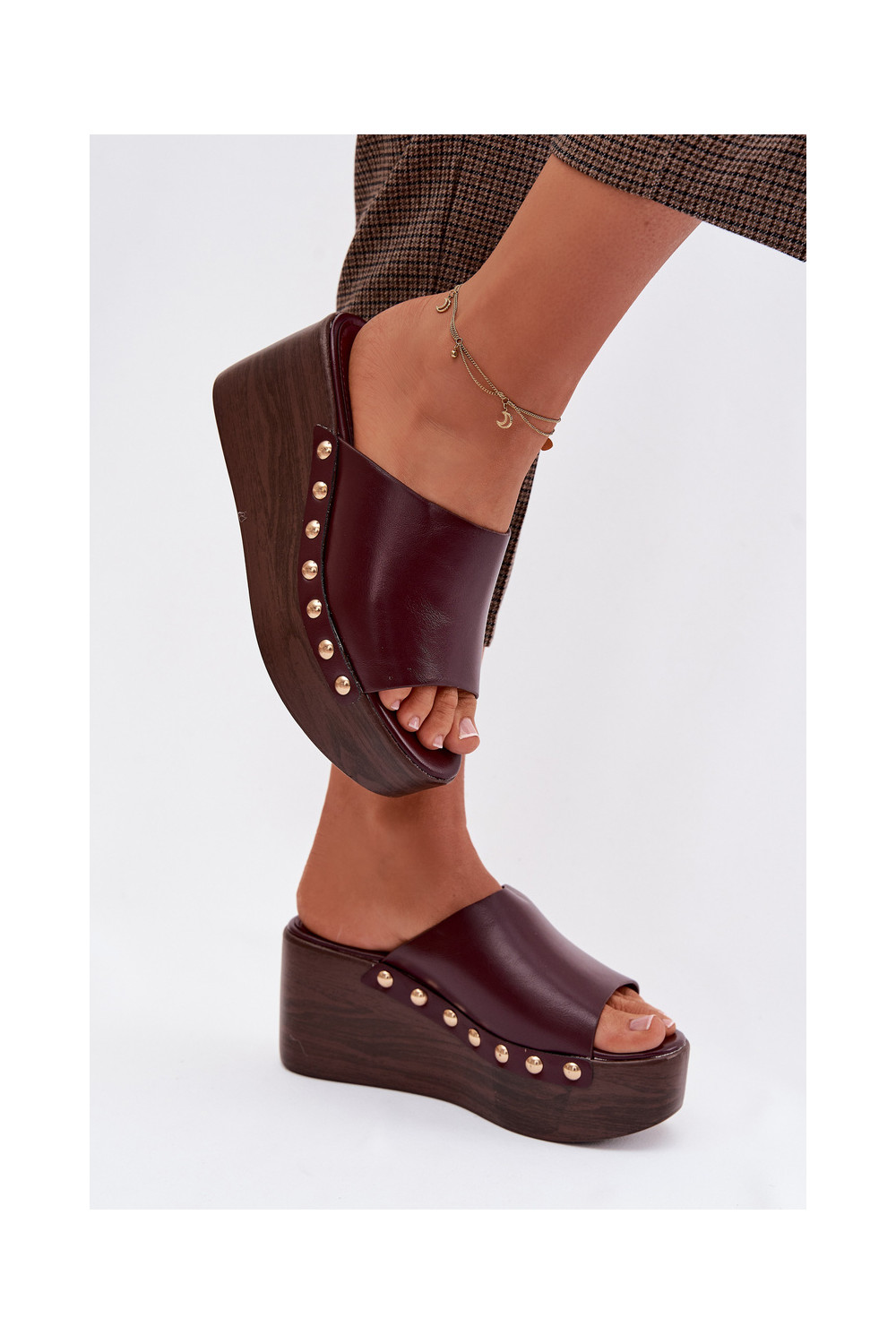 Dámské pantofle a platformou Ze zlaté barvymi vínová Farinelle