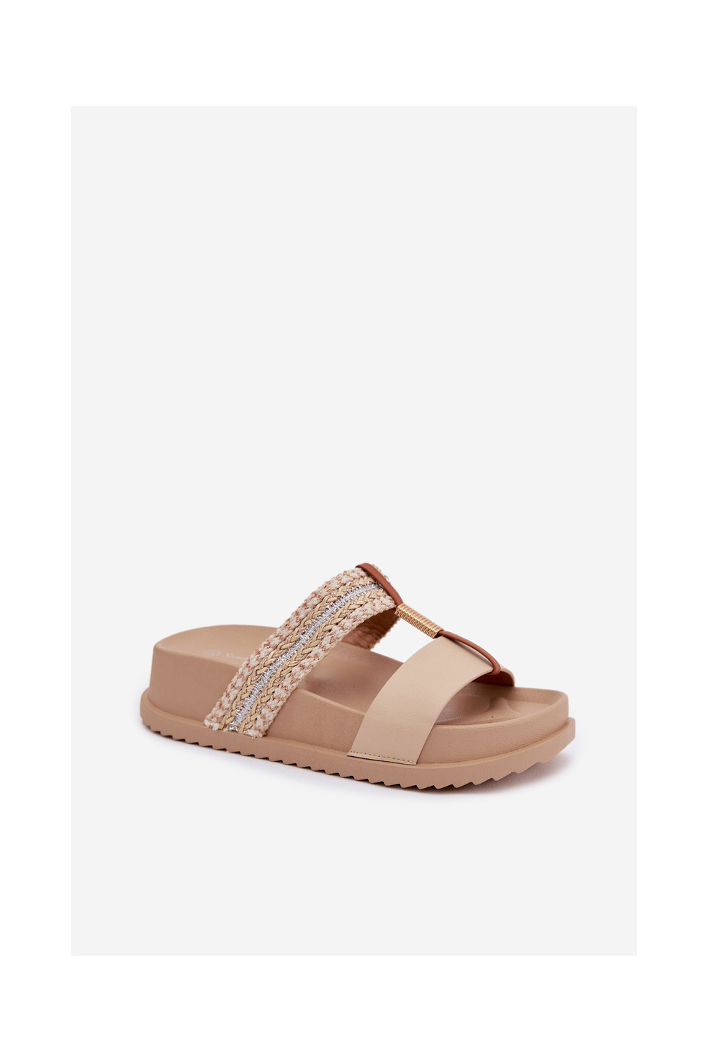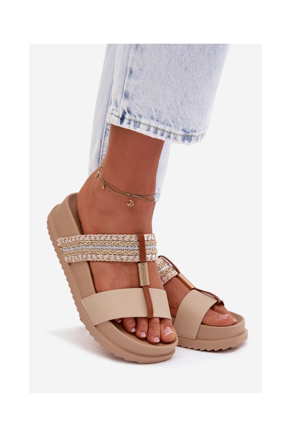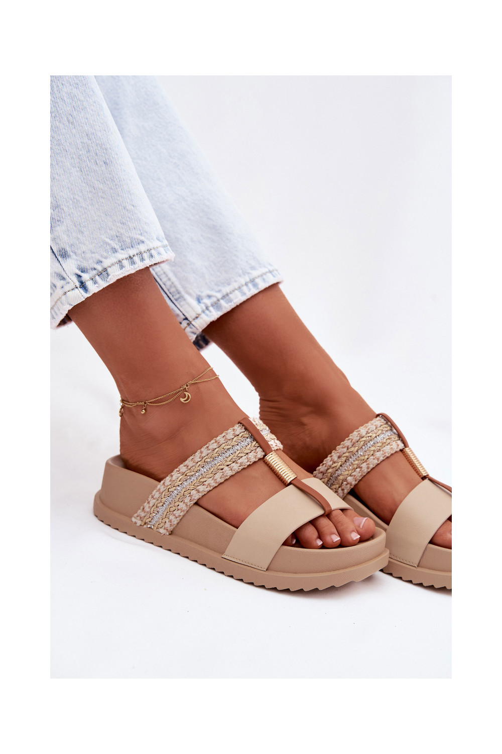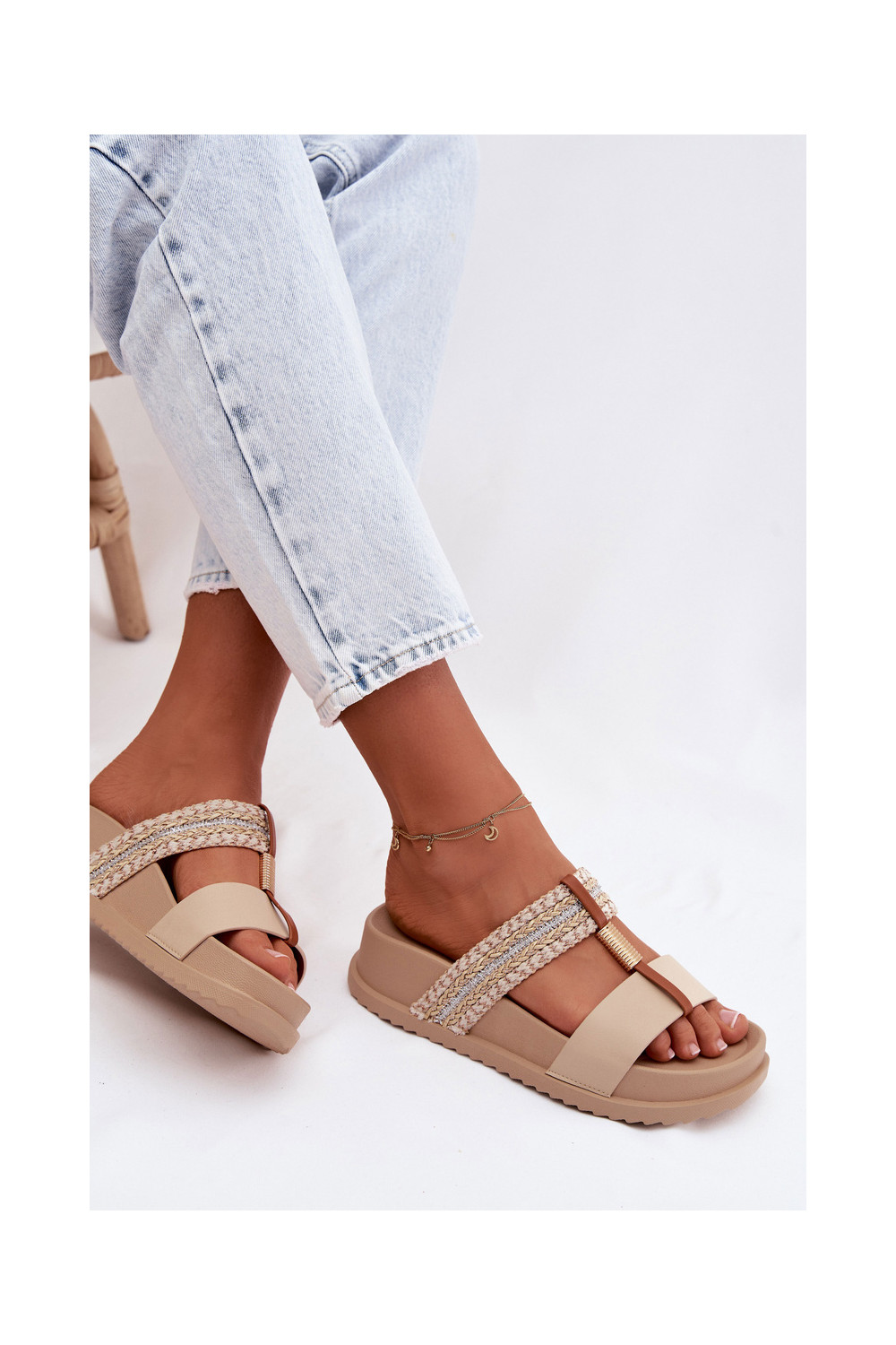 Dámské pantofle s platformou s pruhy I zlaté barvym Detalem béžové Tahlia
