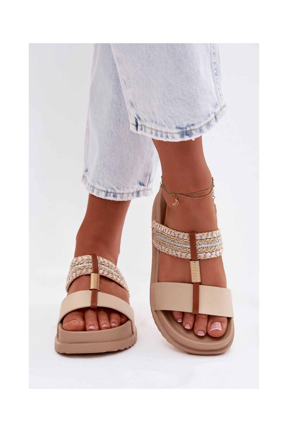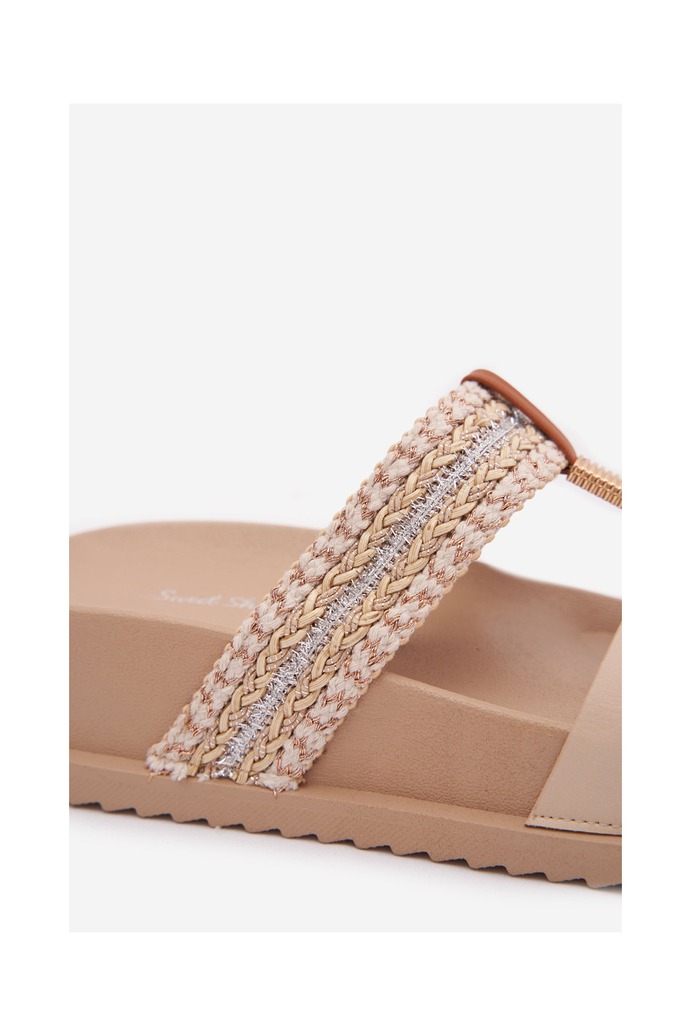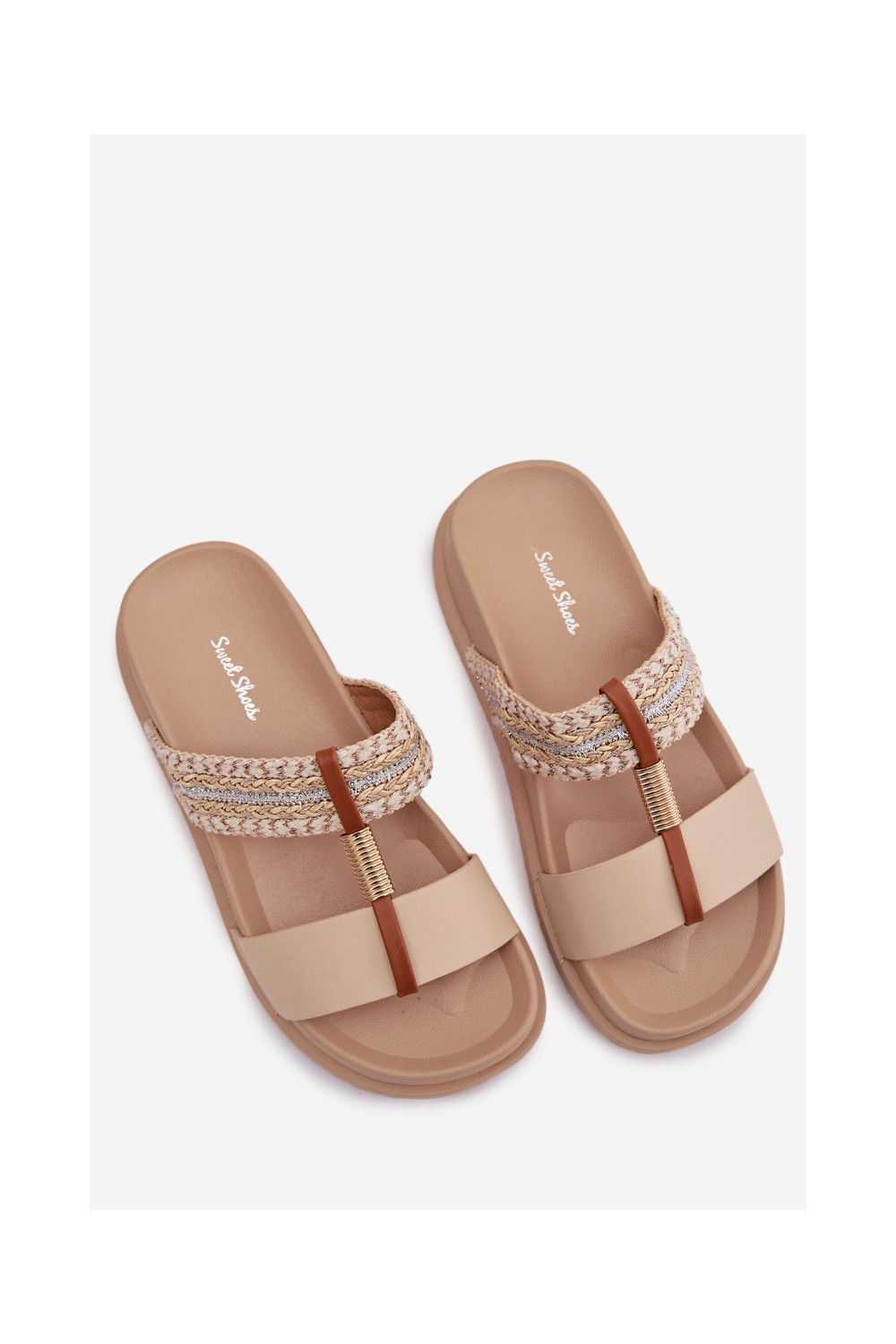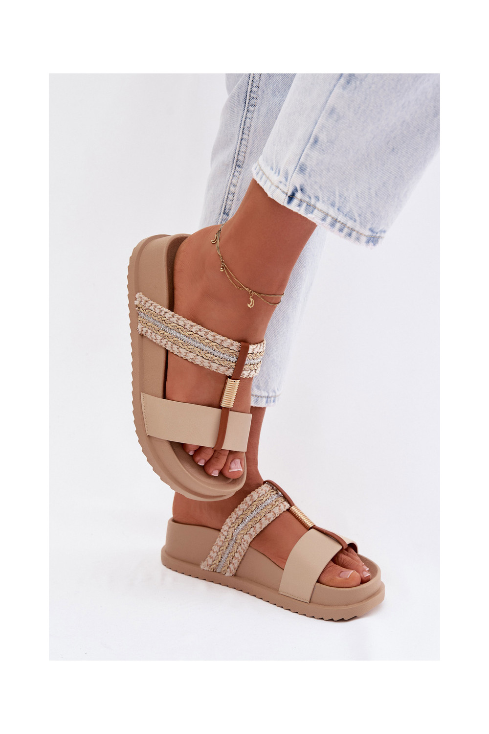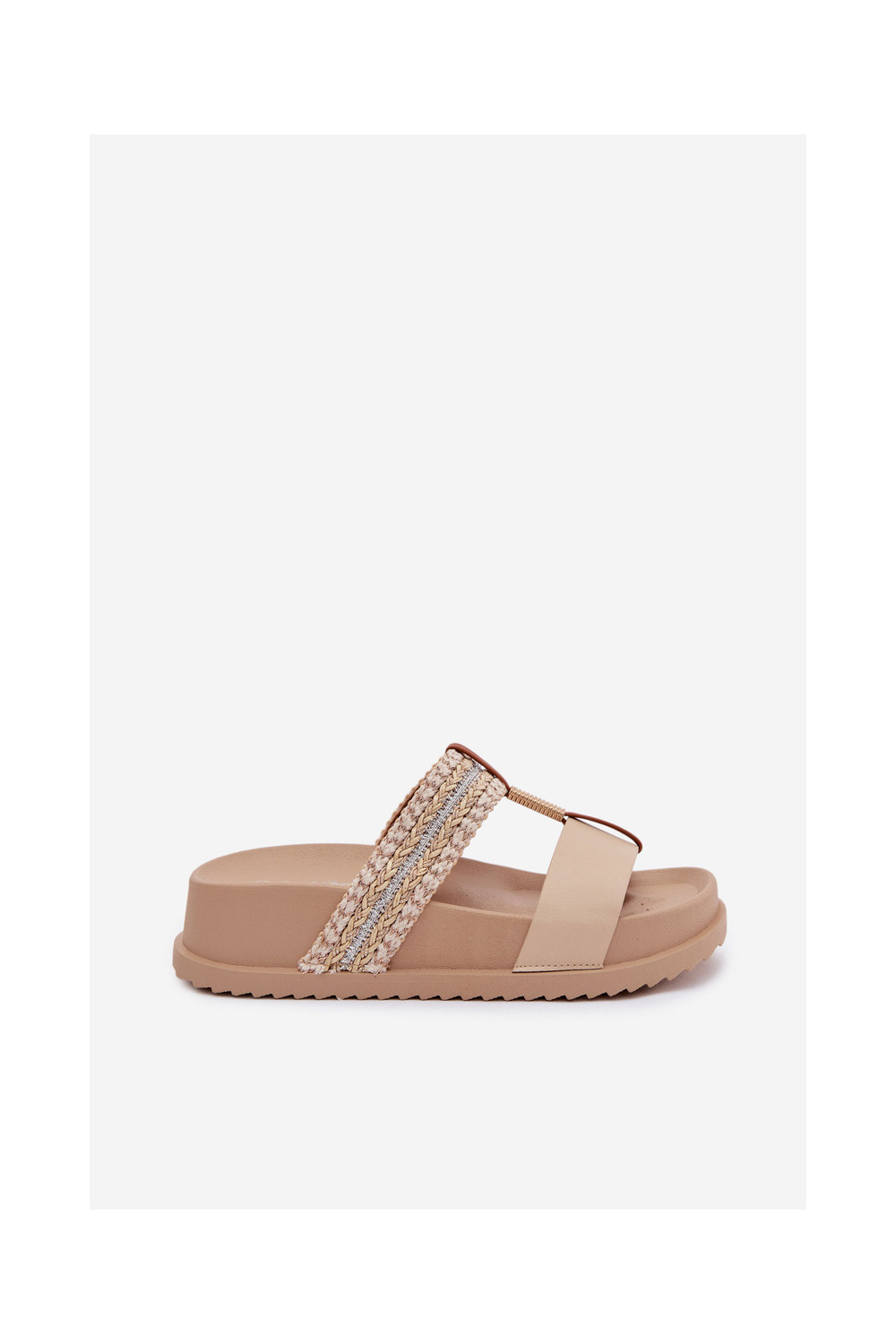 Dámské pantofle s platformou s pruhy I zlaté barvym Detalem béžové Tahlia