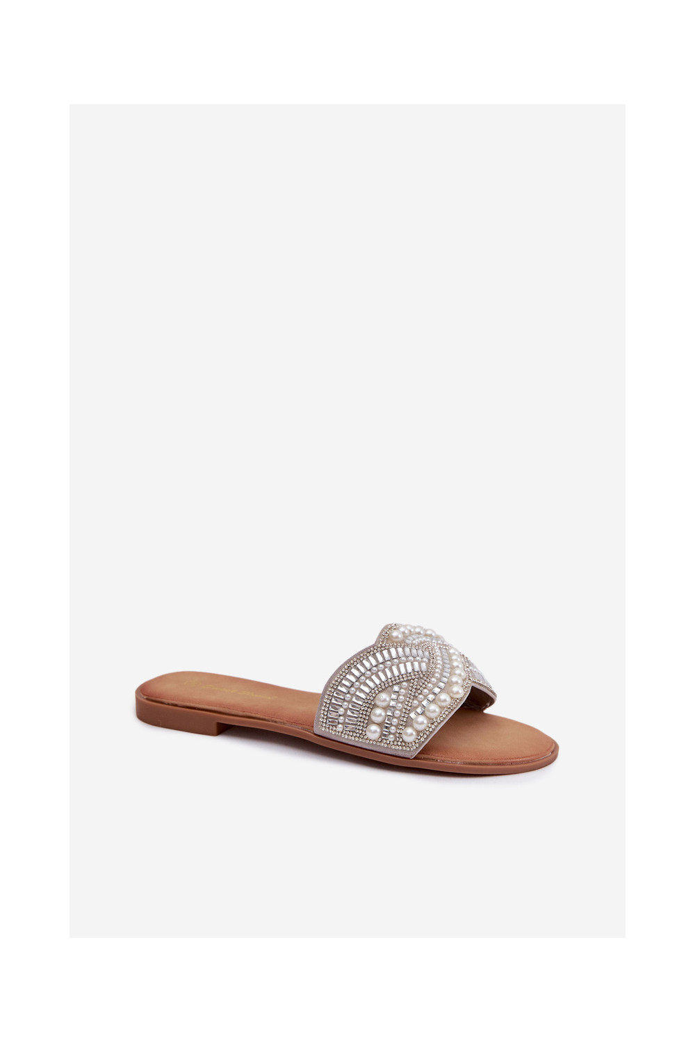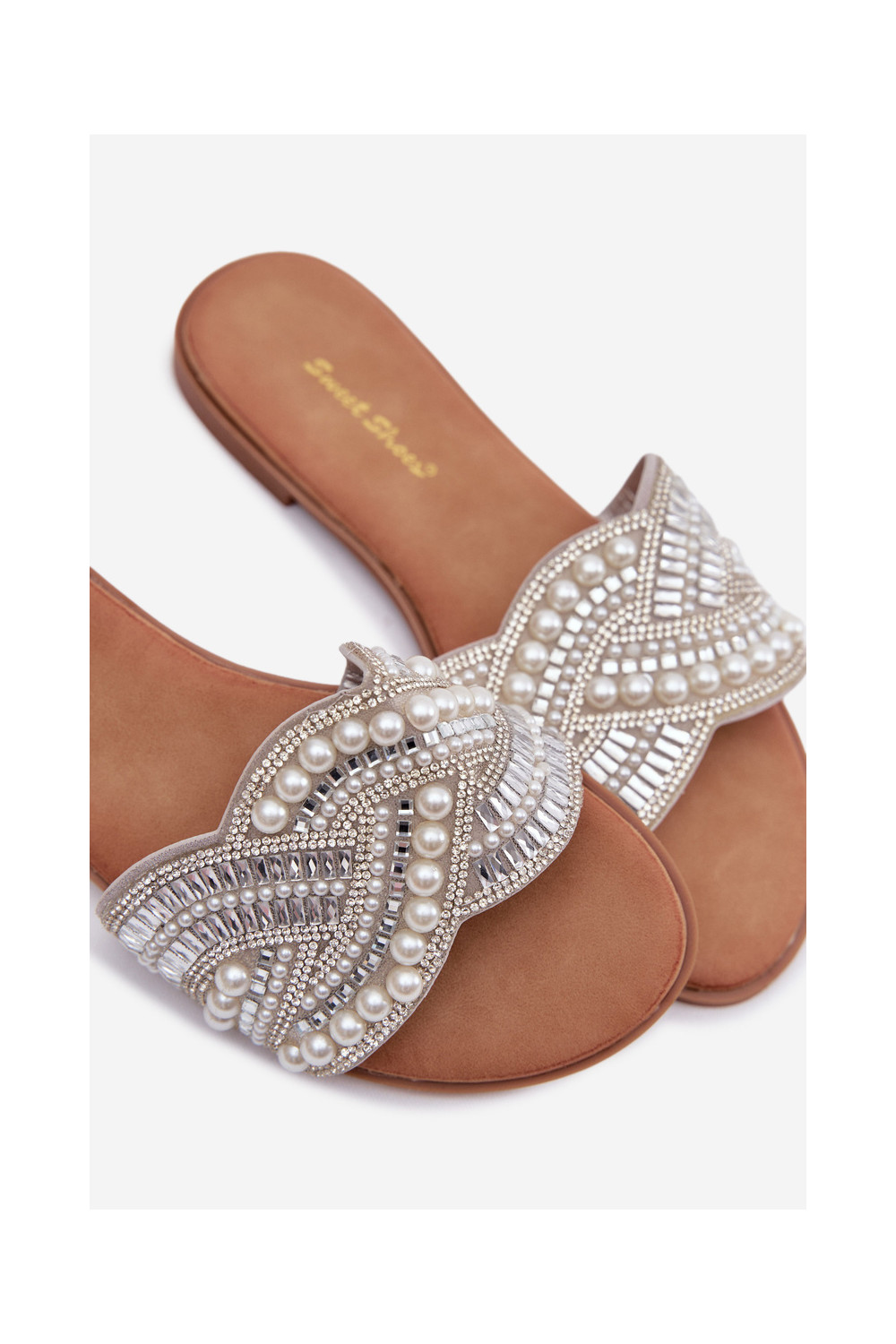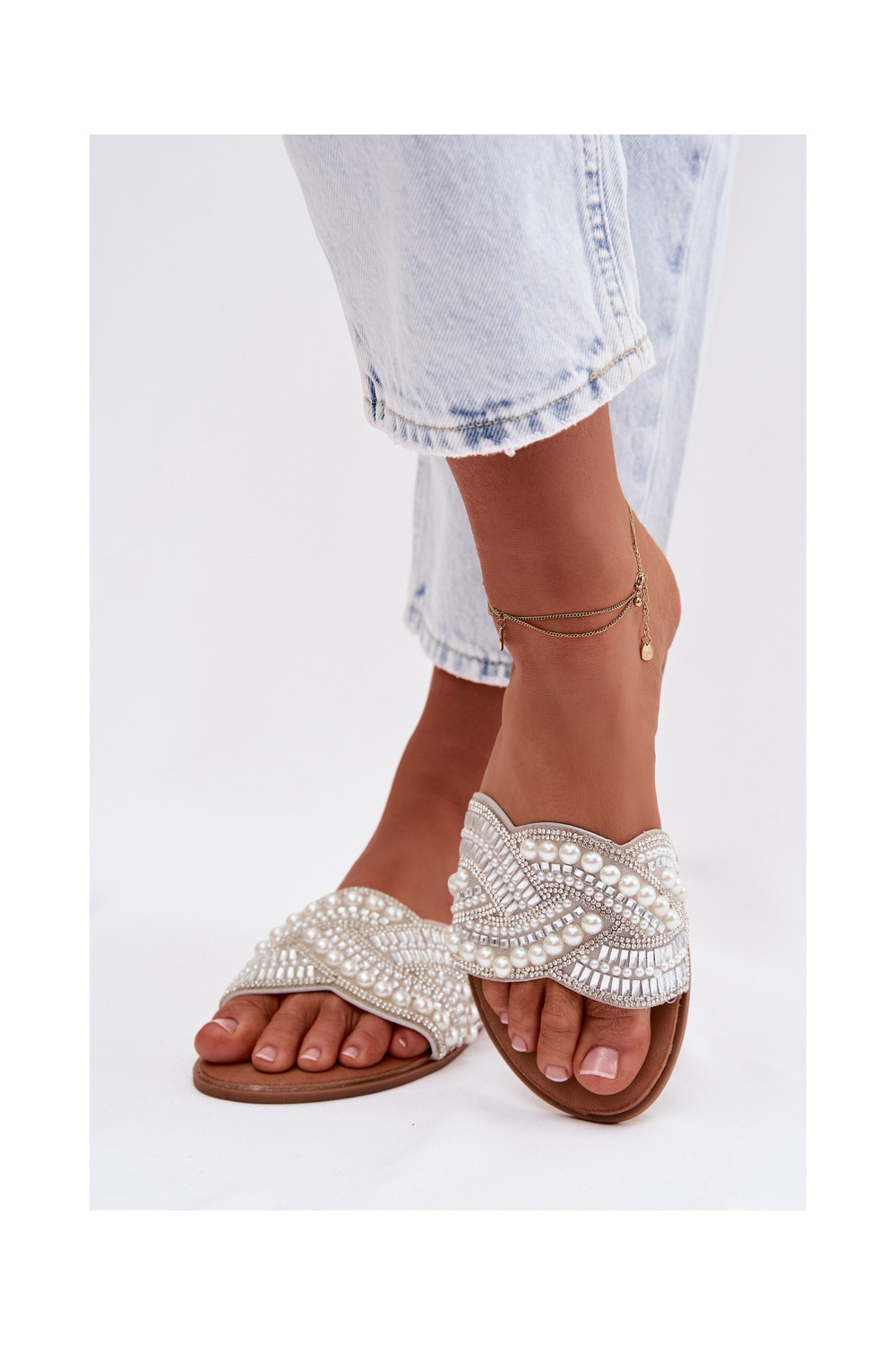 Zdobené Pantofle s širokými podpatky stříbrné barvy Dovima