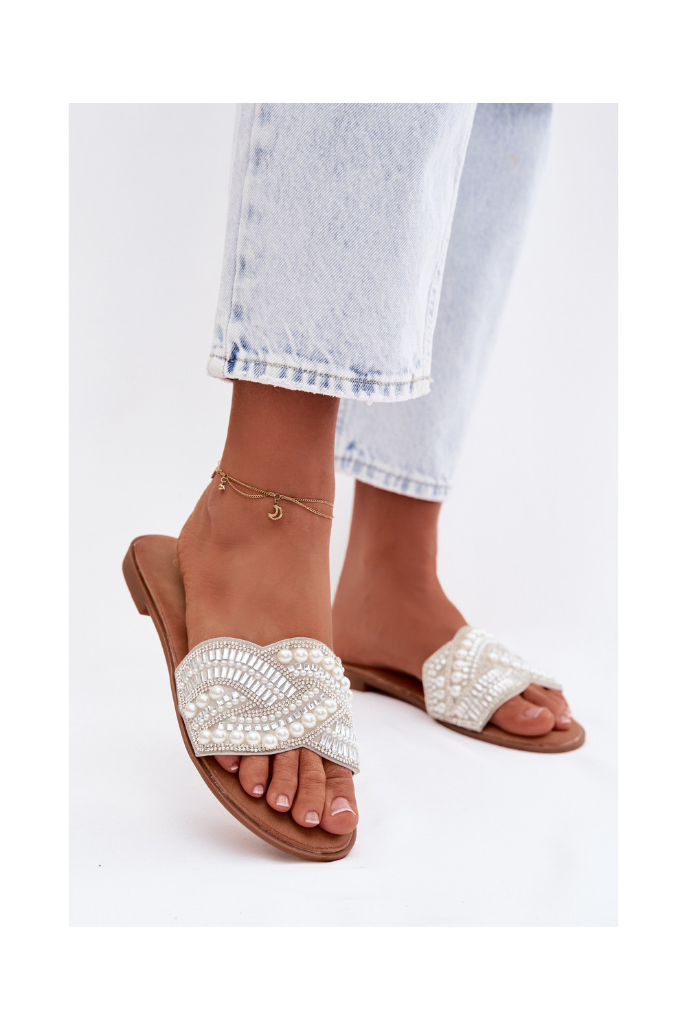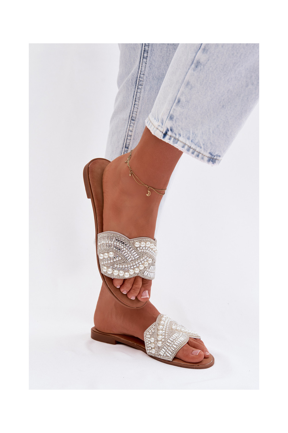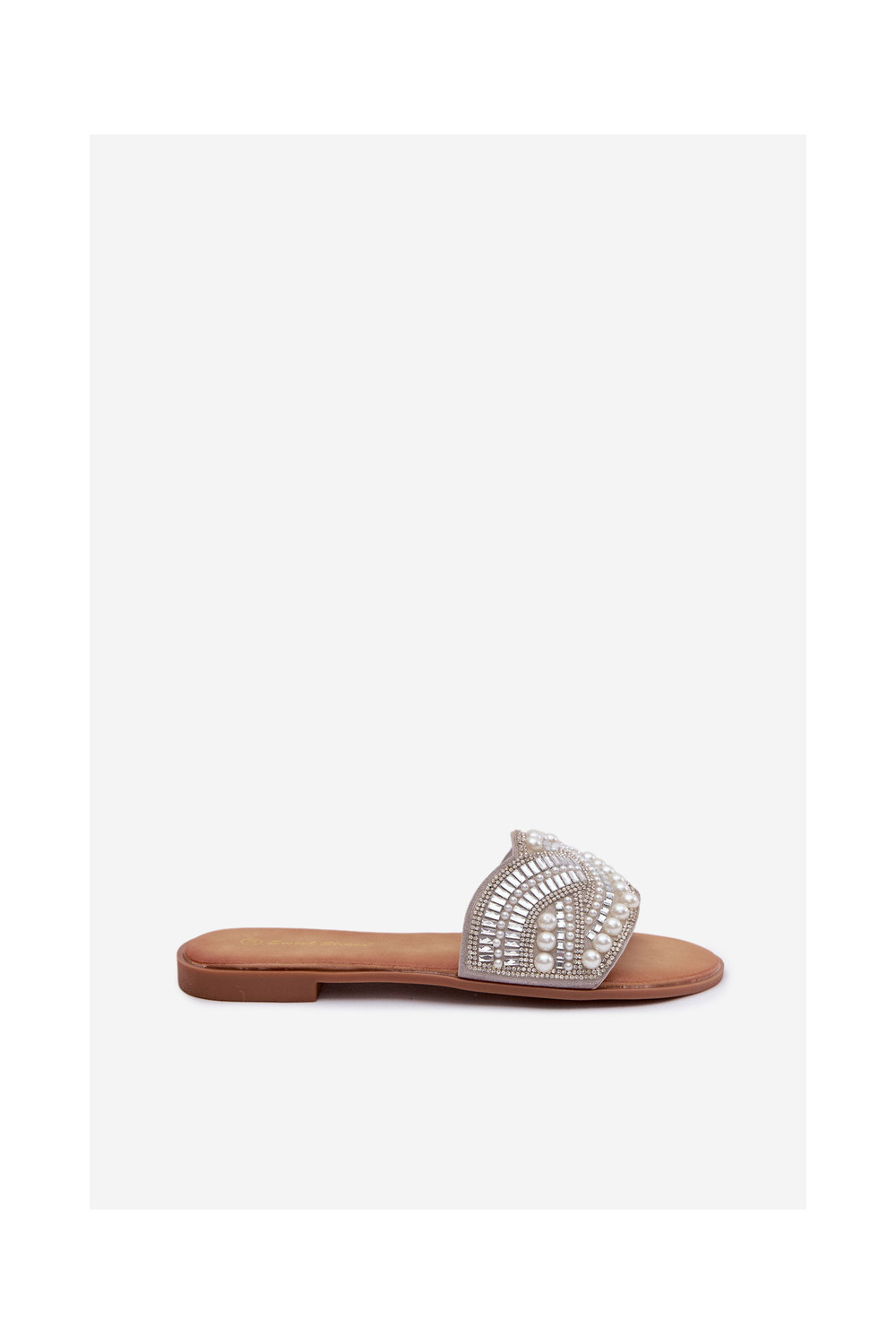 Zdobené Pantofle s širokými podpatky stříbrné barvy Dovima
