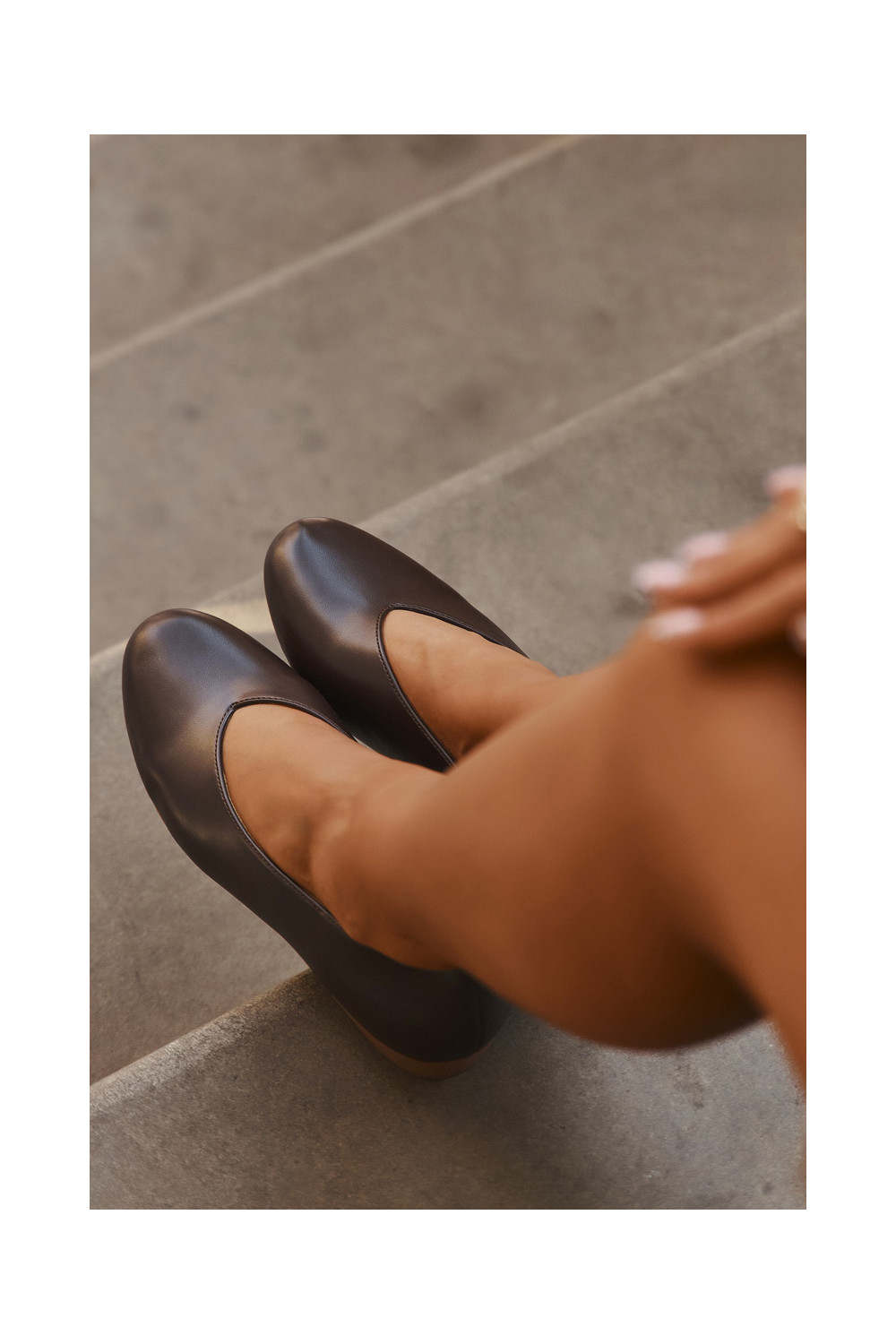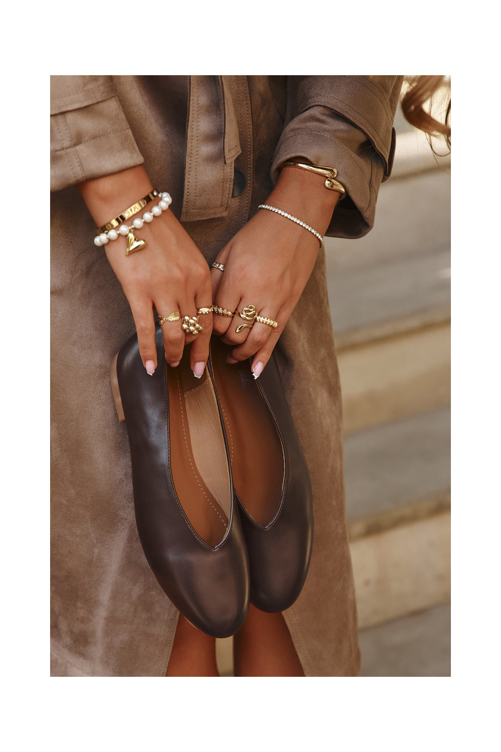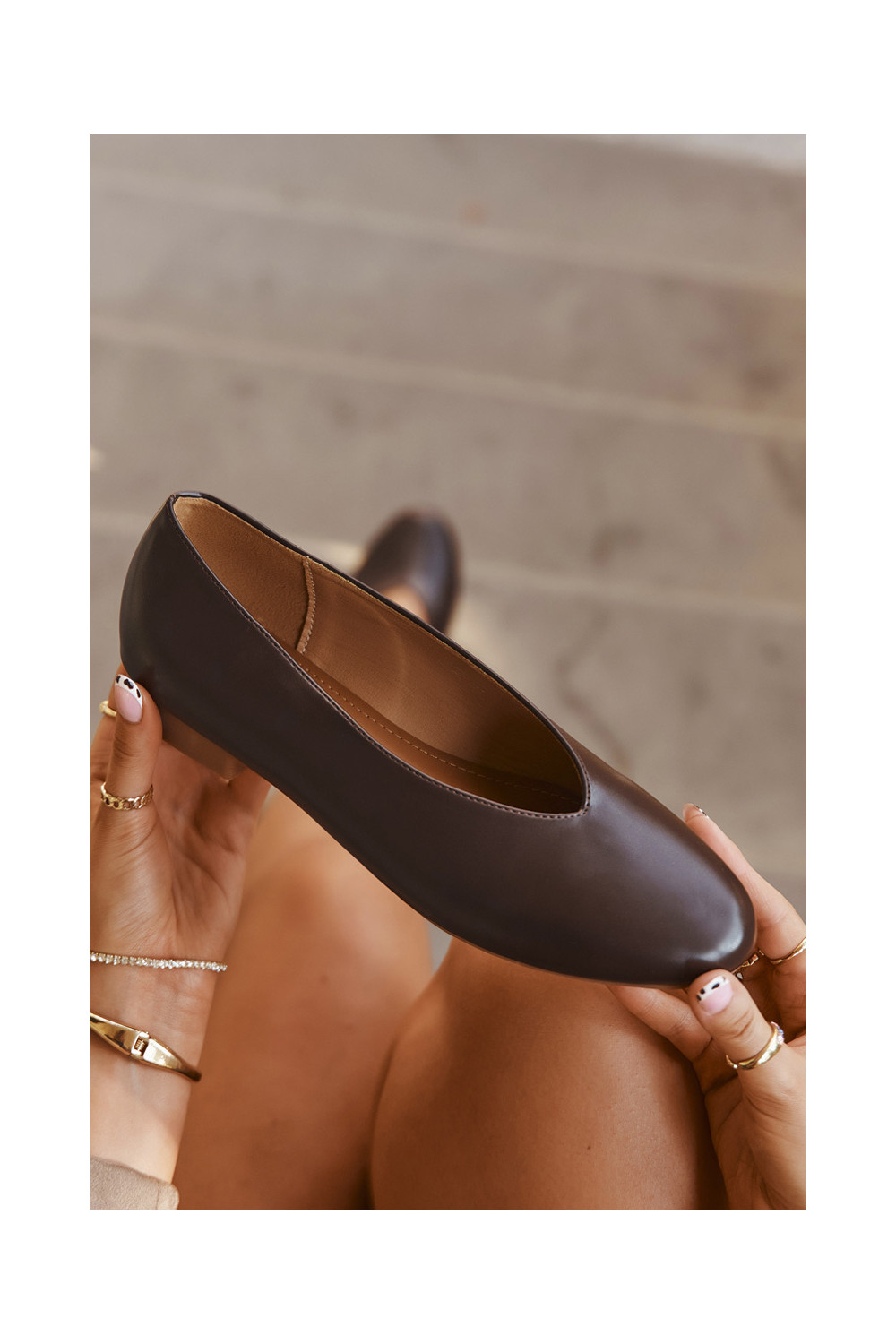 baleríny z ekologické kůže s širokými podpatky hnědá Olyssia