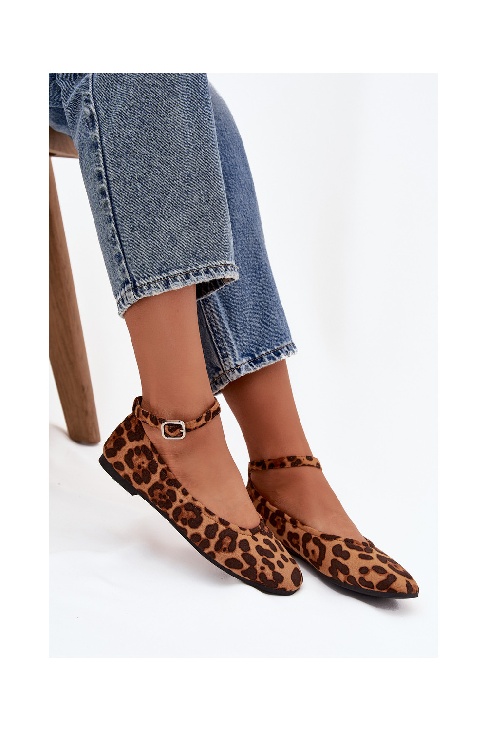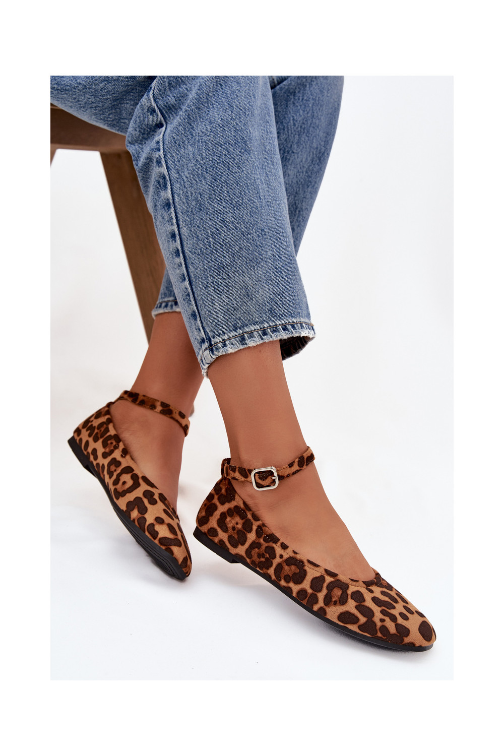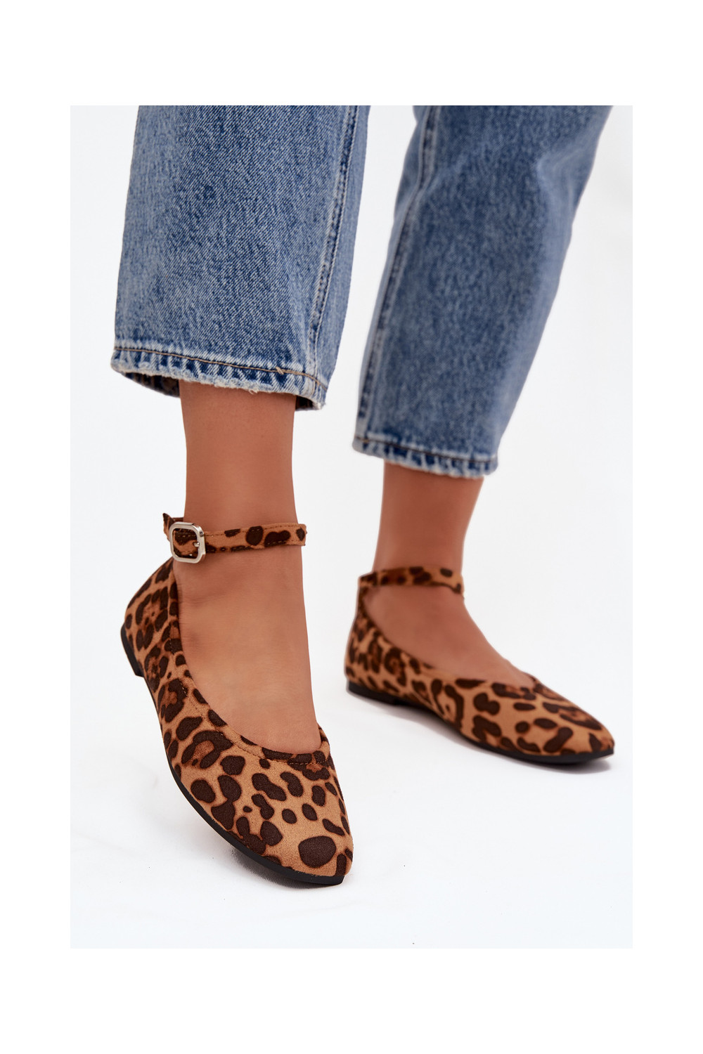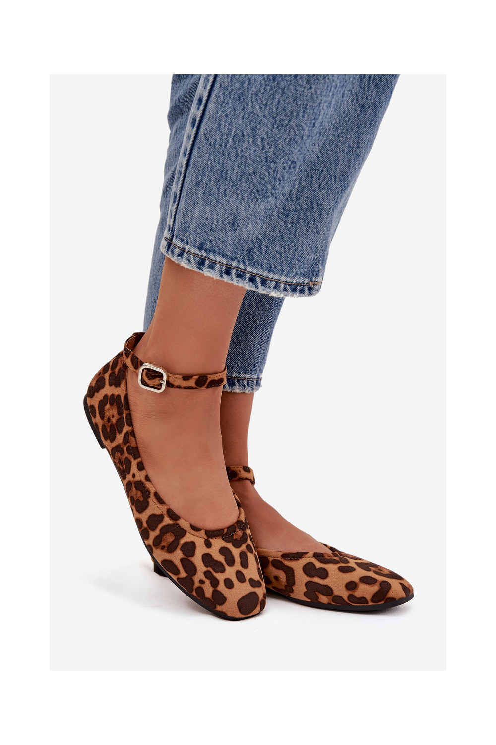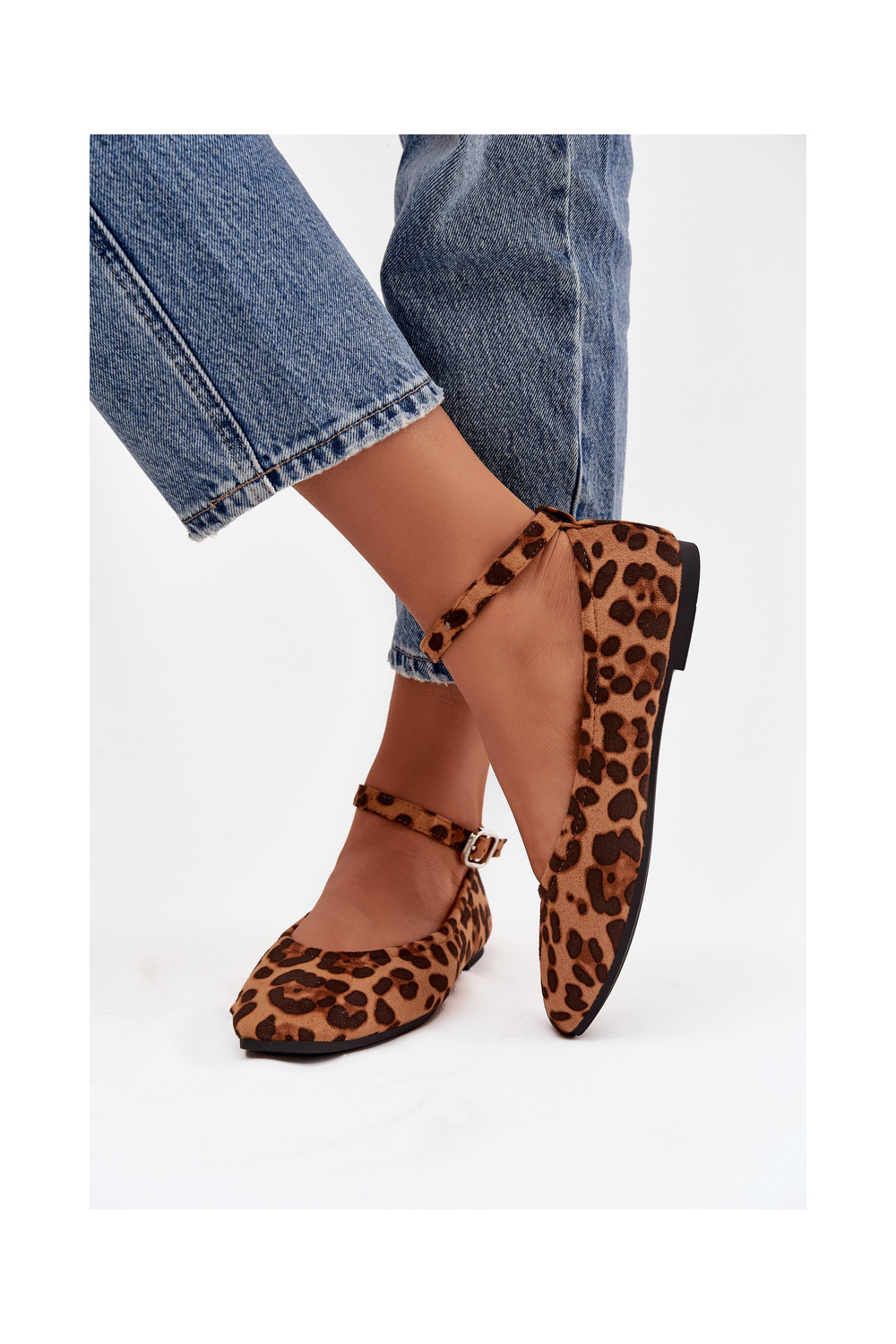 baleríny s popruhy I s přezkami se vzory leopardí kožešiny Janelor
