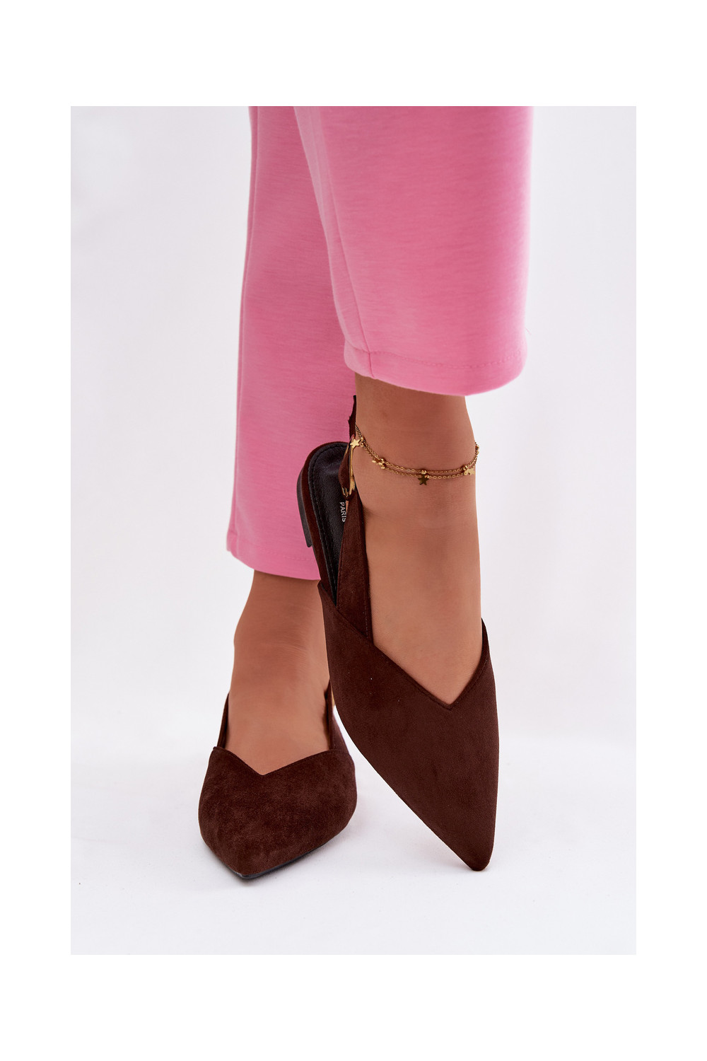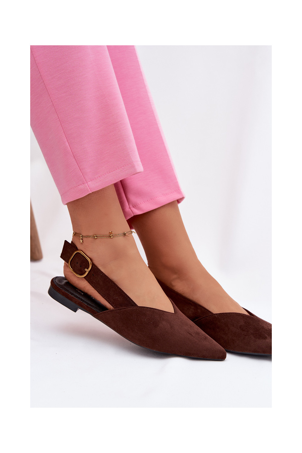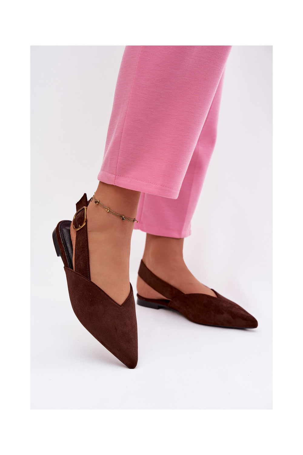 baleríny se zlatými přezkami z eko semišeowe Czekoladowe Palerra