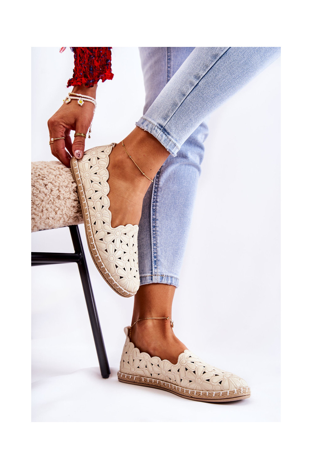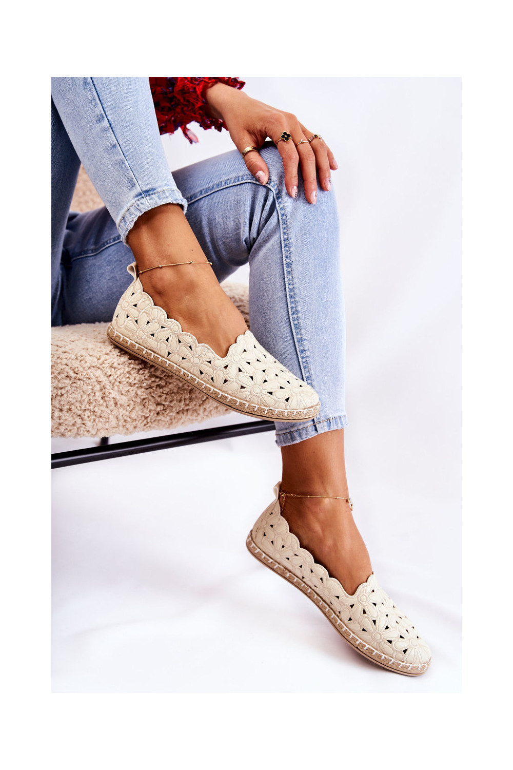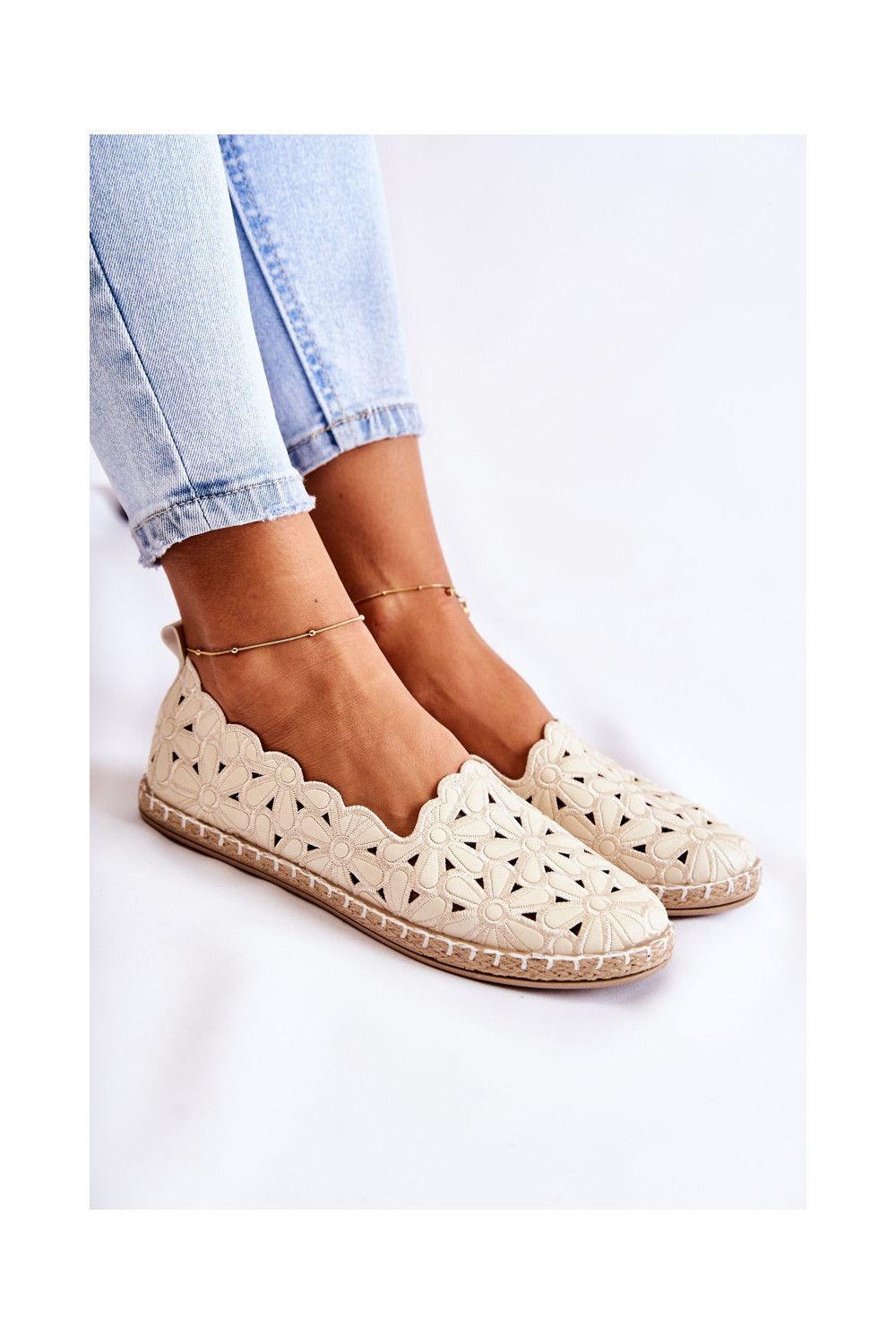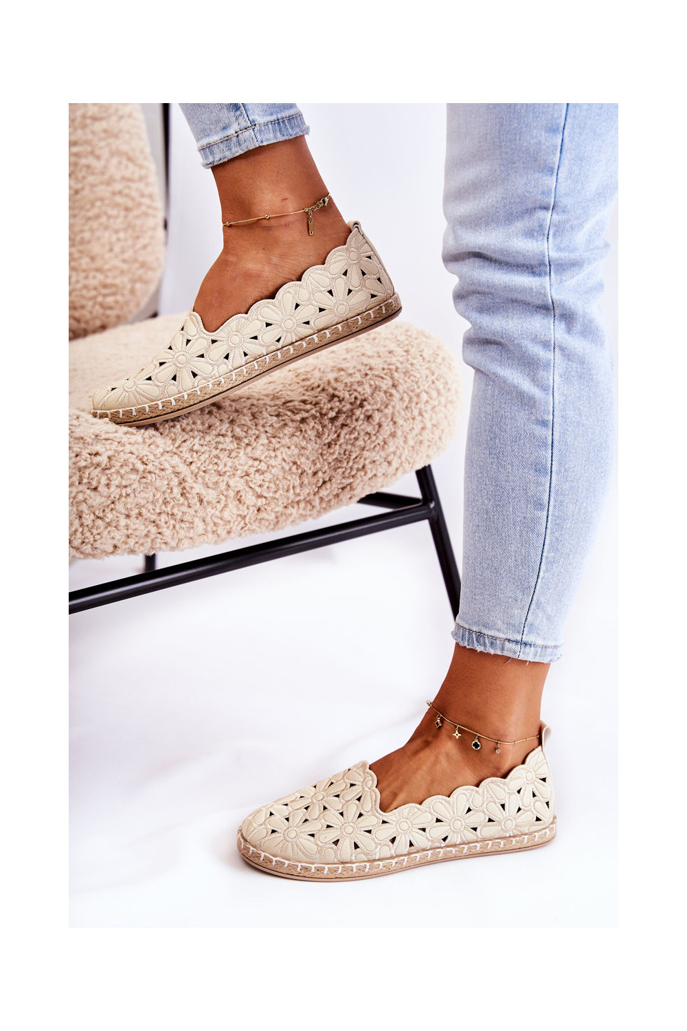 Slip-on vzor baleríny S květinami béžové Vennice
