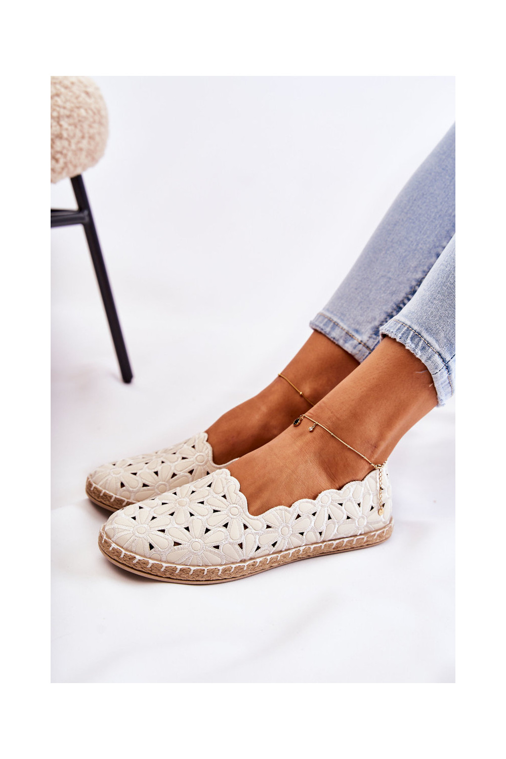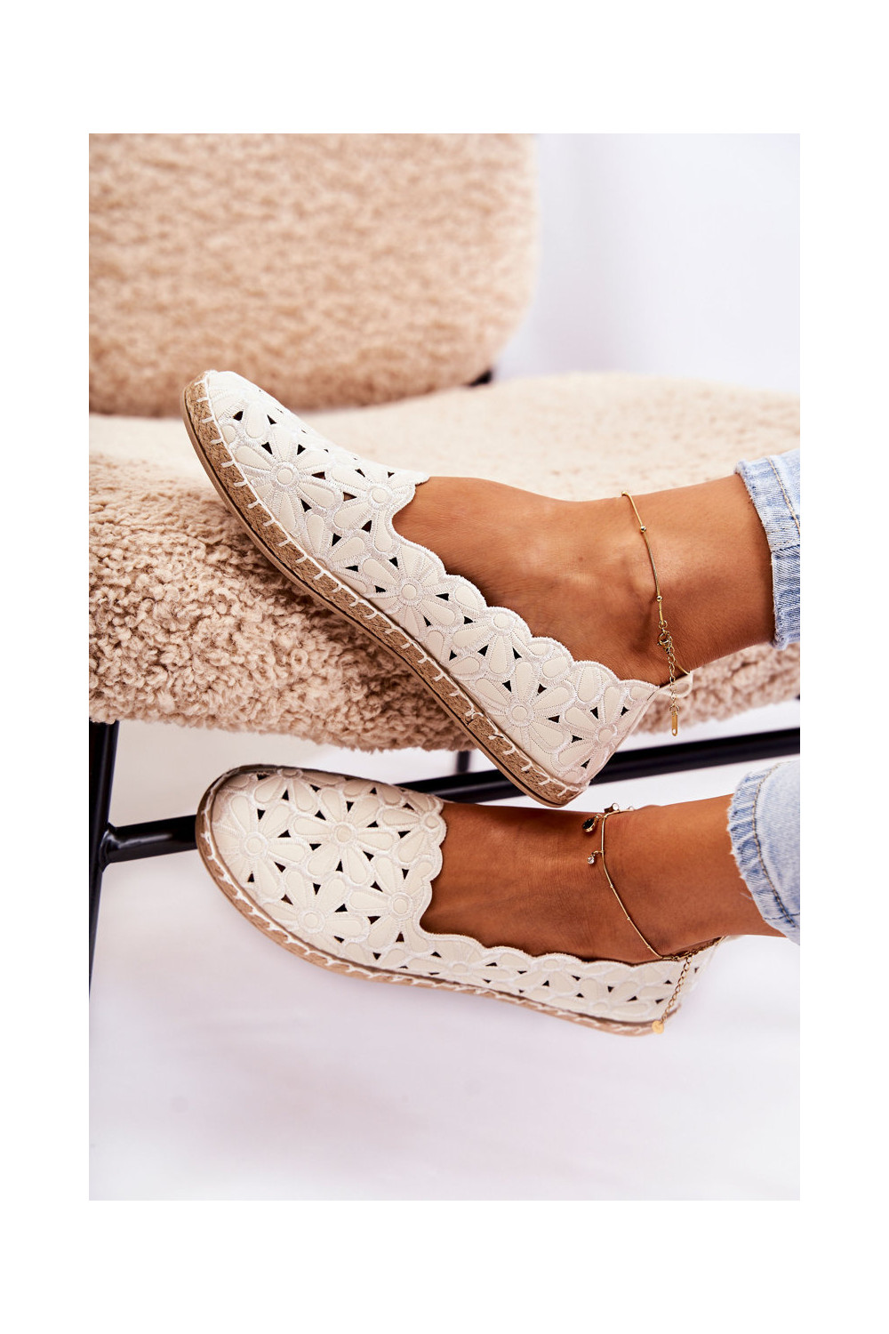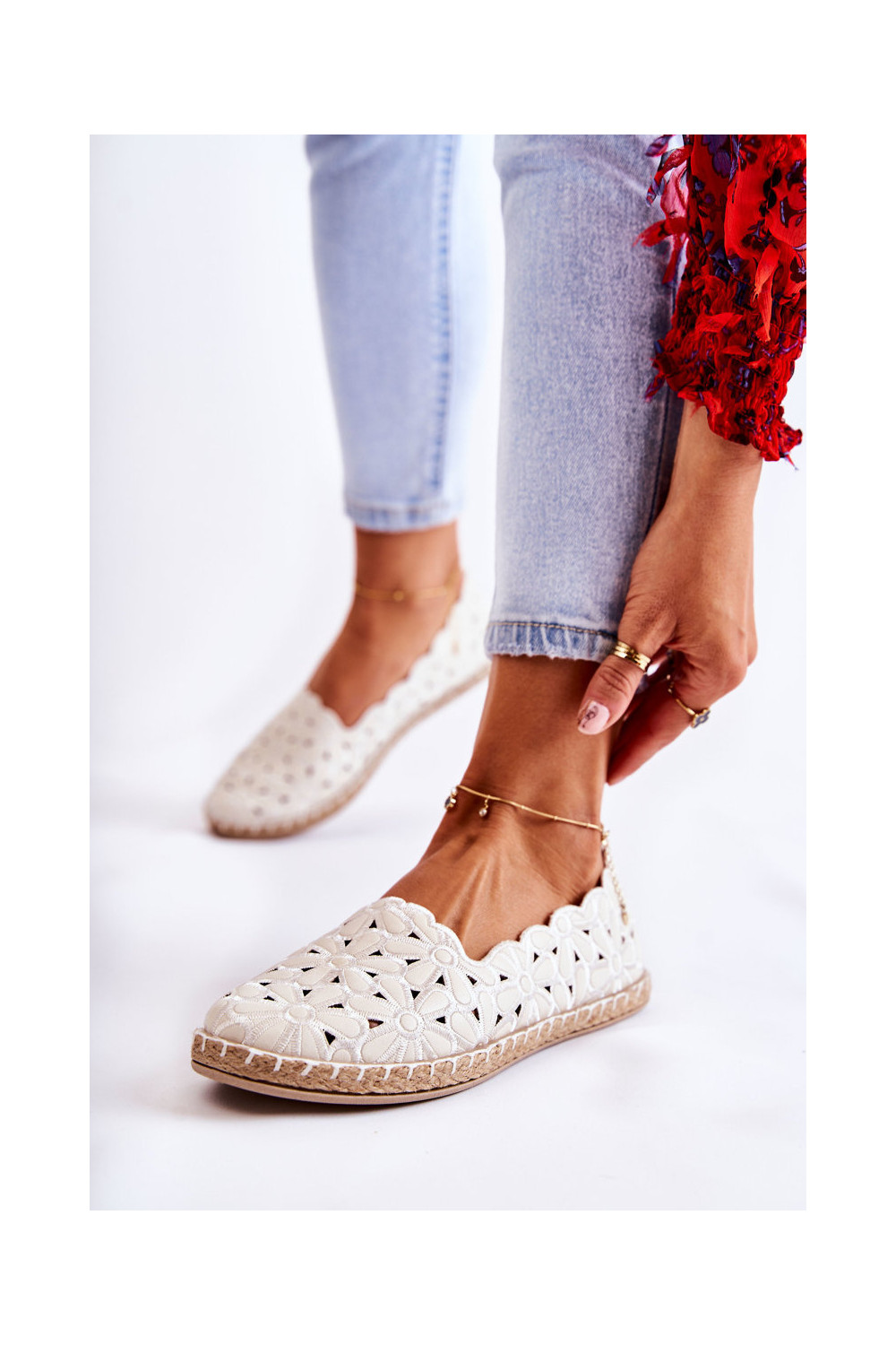 Slip-on vzor baleríny S květinami bílé Vennice