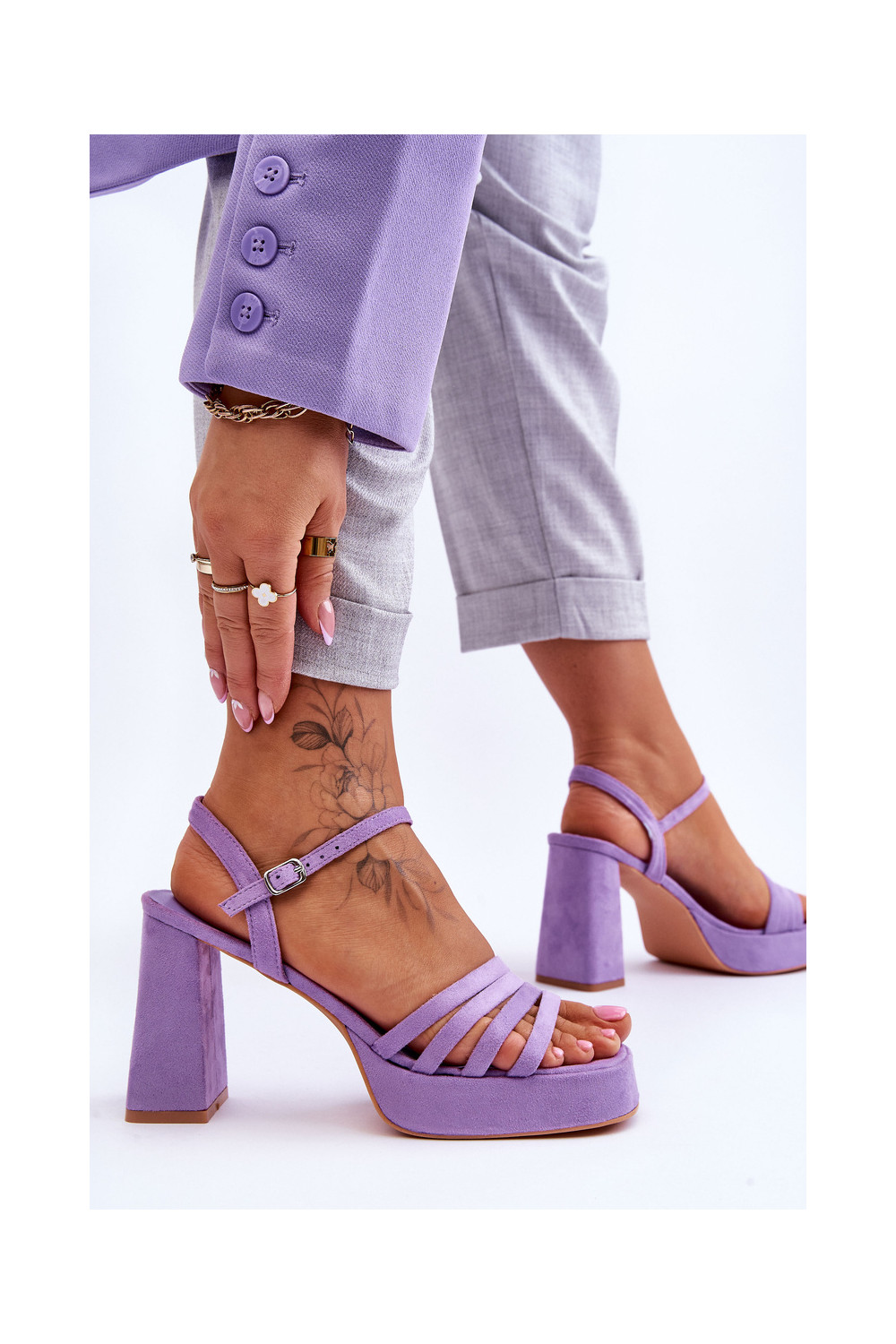 Módní dámské sandály na masivním sloupku a jemné platformě. Na přední straně mají pruhy. Svršek je vyroben z ekologického semiše. Měkká stélka z eko kůže zajistí pohodlí při používání. Sandály mají nastavitelný pásek zapínaný kolem kotníku na přezku. Tento model je HIT, tak už na nic nečekejte a kupte si ho ještě dnes! Při výběru velikosti se řiďte tabulkou velikostí.