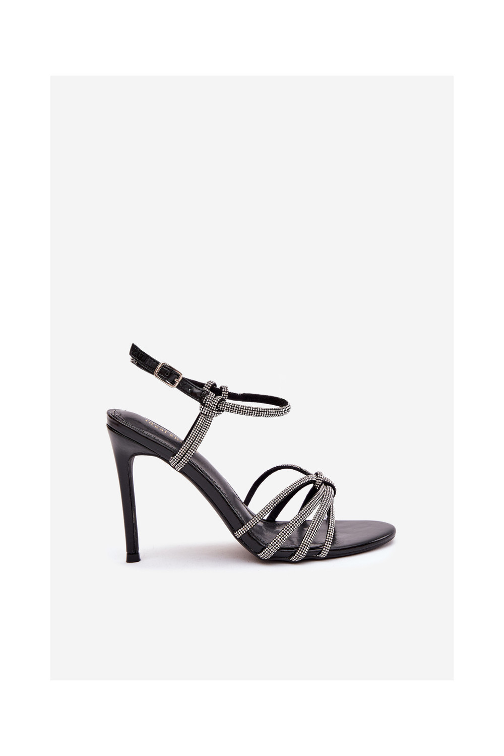 Dámské sandály s tenkými podpatky s pruhy Černé Tanelle