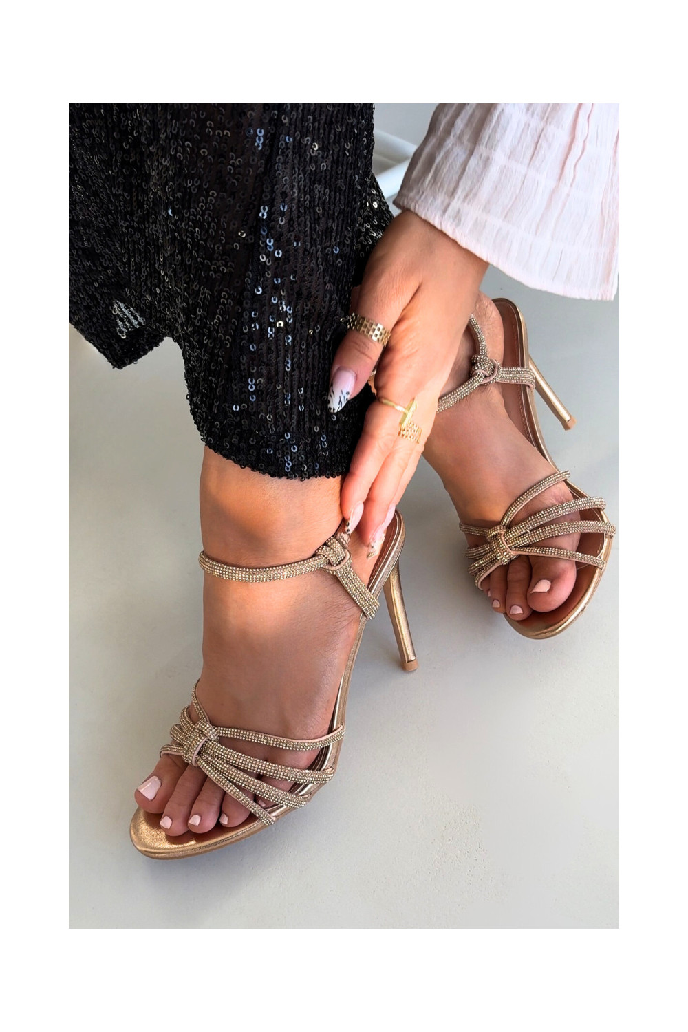 Dámské sandály s tenkými podpatky s pruhy Szampańskie Tanelle