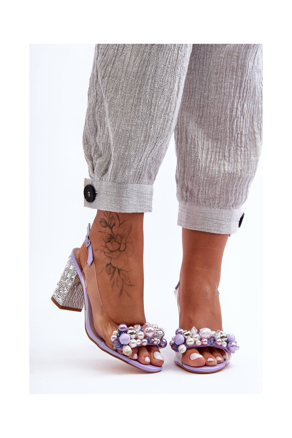 Stylové žabky s podpatky Barva fialová S.Barski MR1037-17