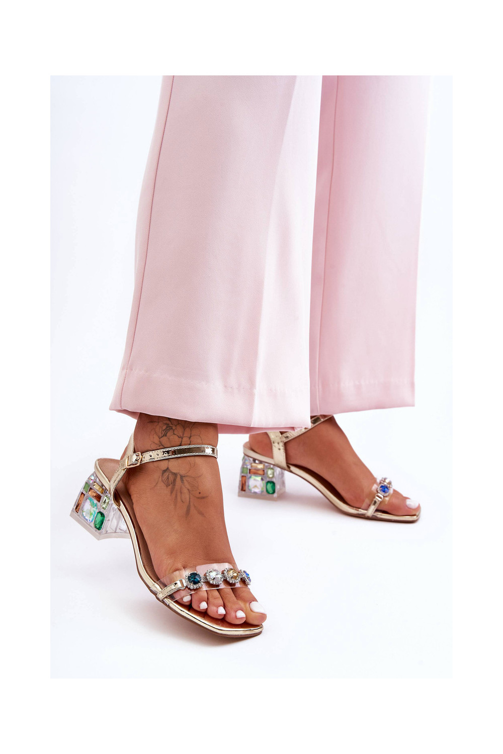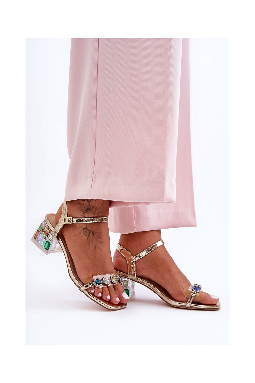 Elegantní sandály na vysokém podpatku s třpytivýma očima zlaté barvy S.Barski MR1037-01