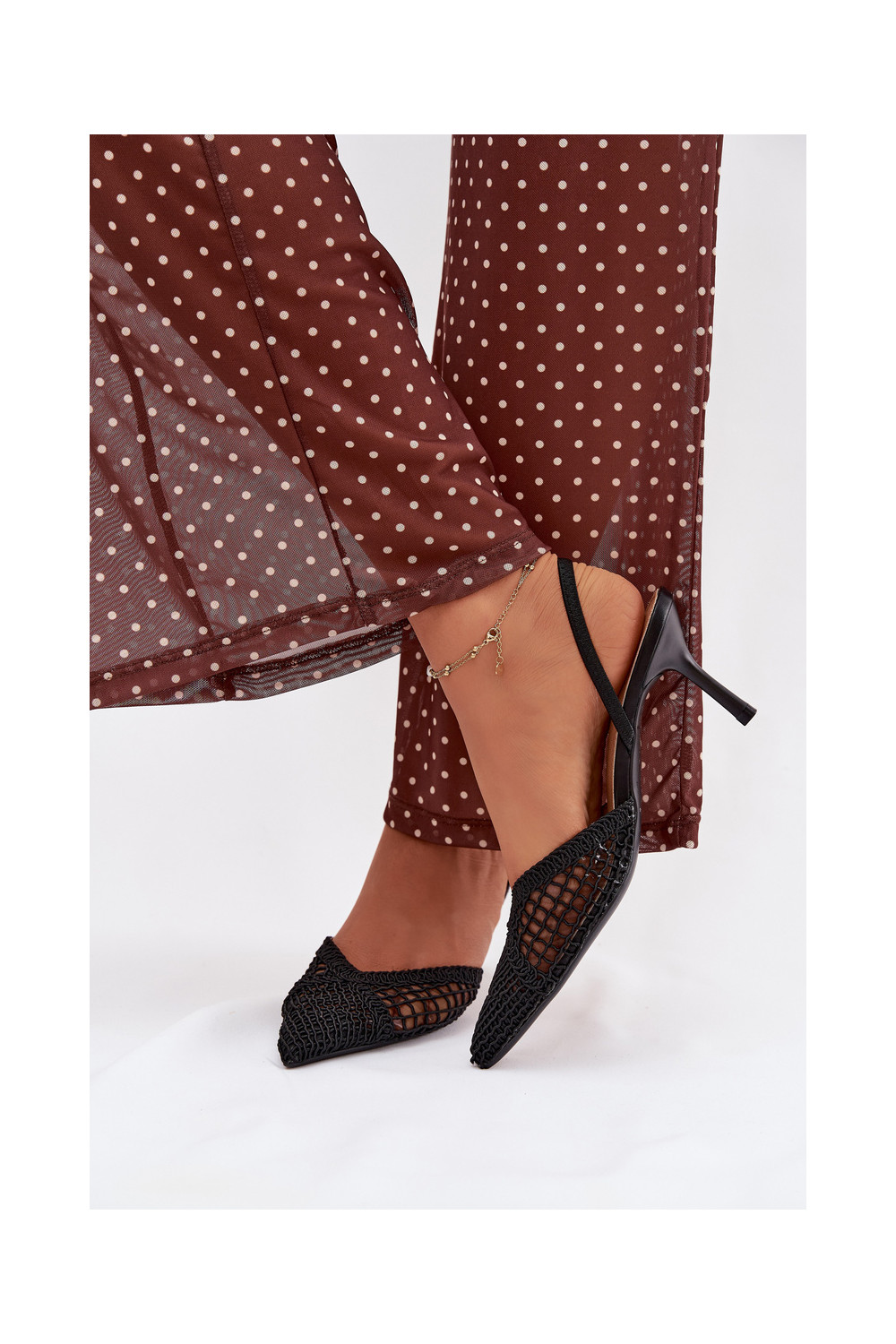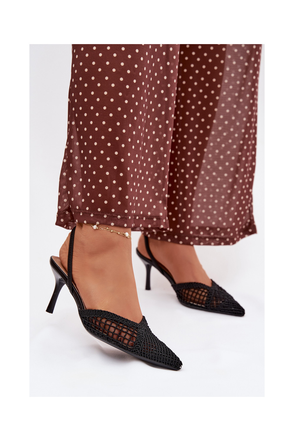 Žabky s ažurovými prvky s tenkými podpatky Černé Hanelis