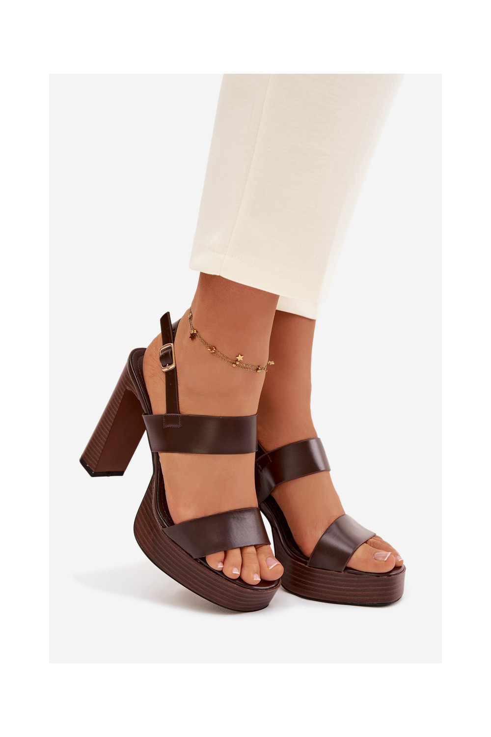 Dámské sandály na vysokém podpatku a platformou Eko Czekoladowe Hanelia