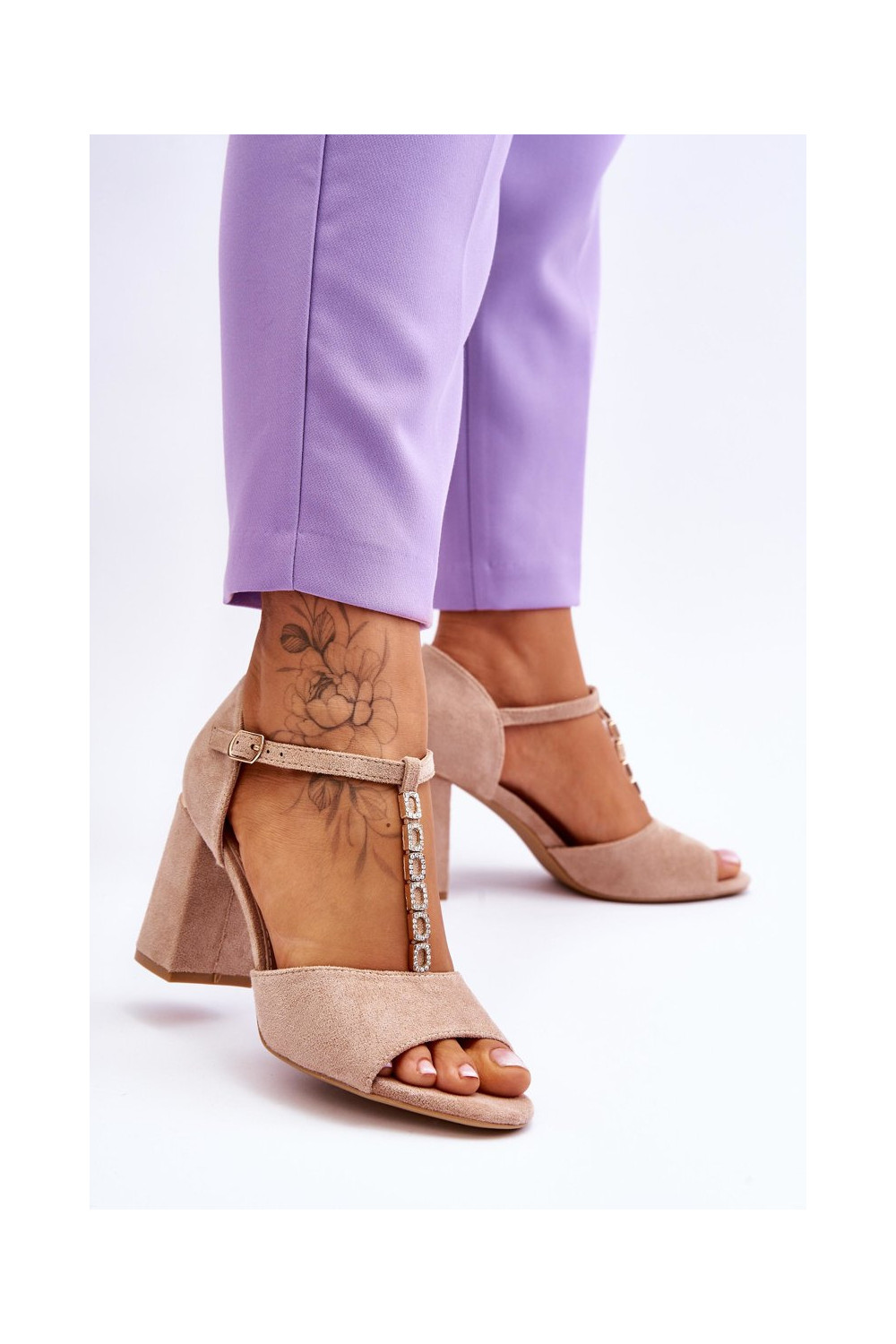 Elegantní vysoké podpatky s třpytivými očky béžové Aniya