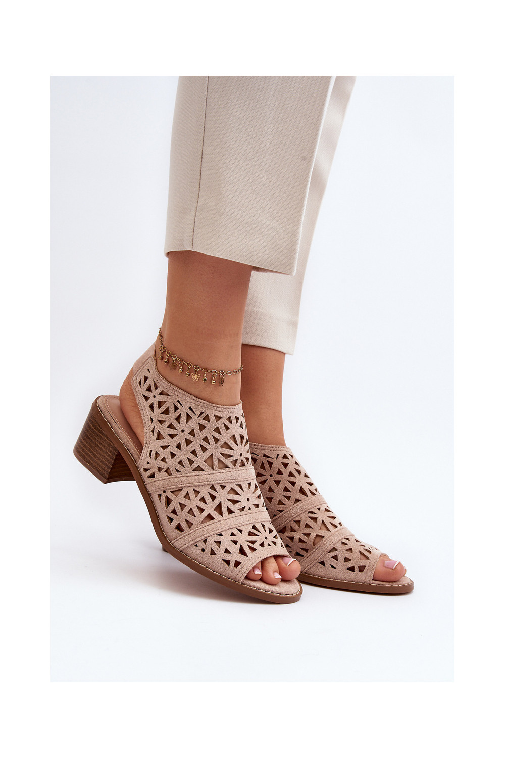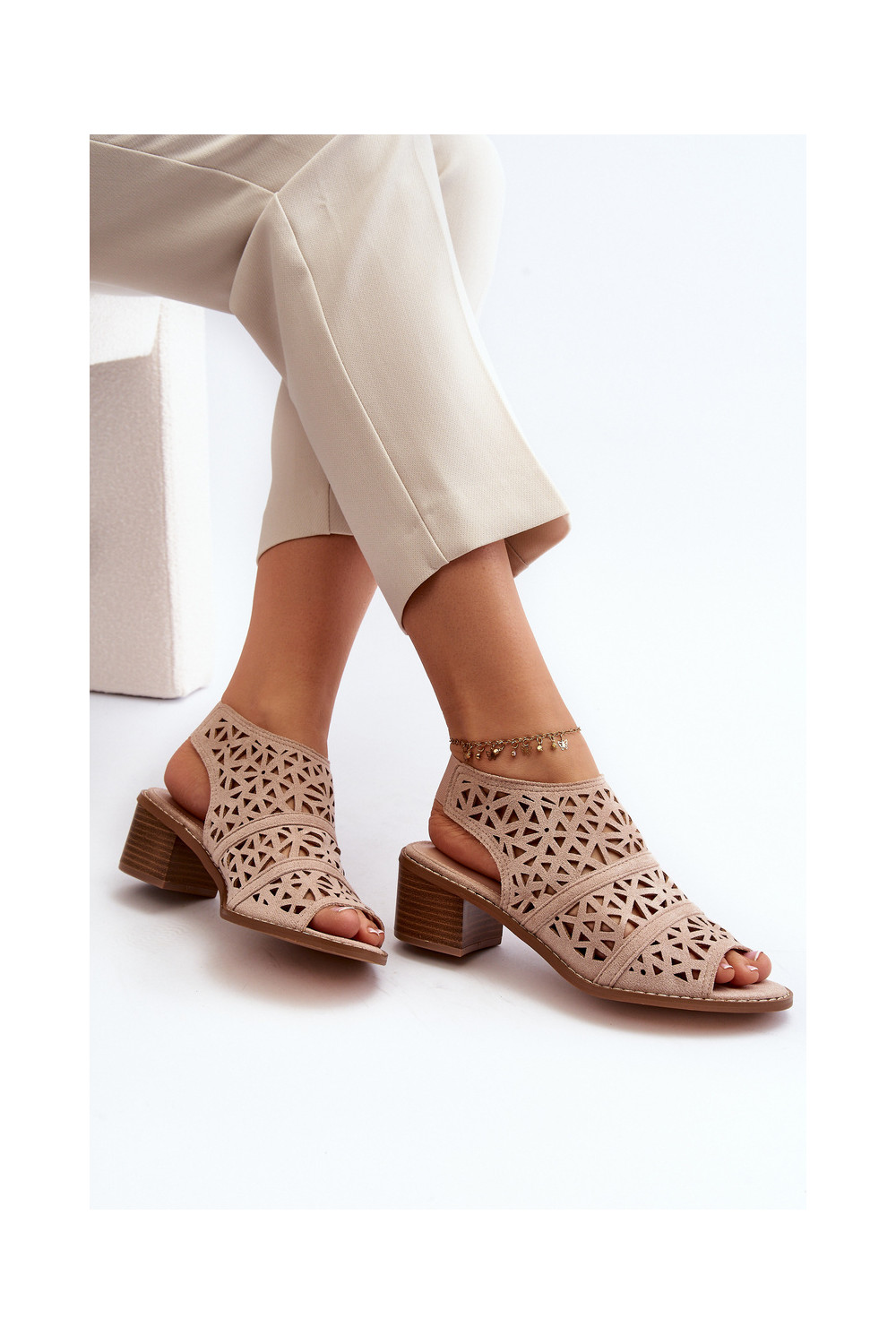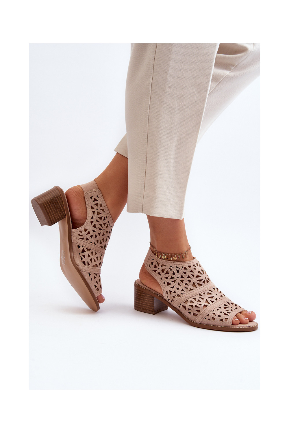 s ažurovými prvky Elegantní sandály na vysokém podpatku Nude Serapina