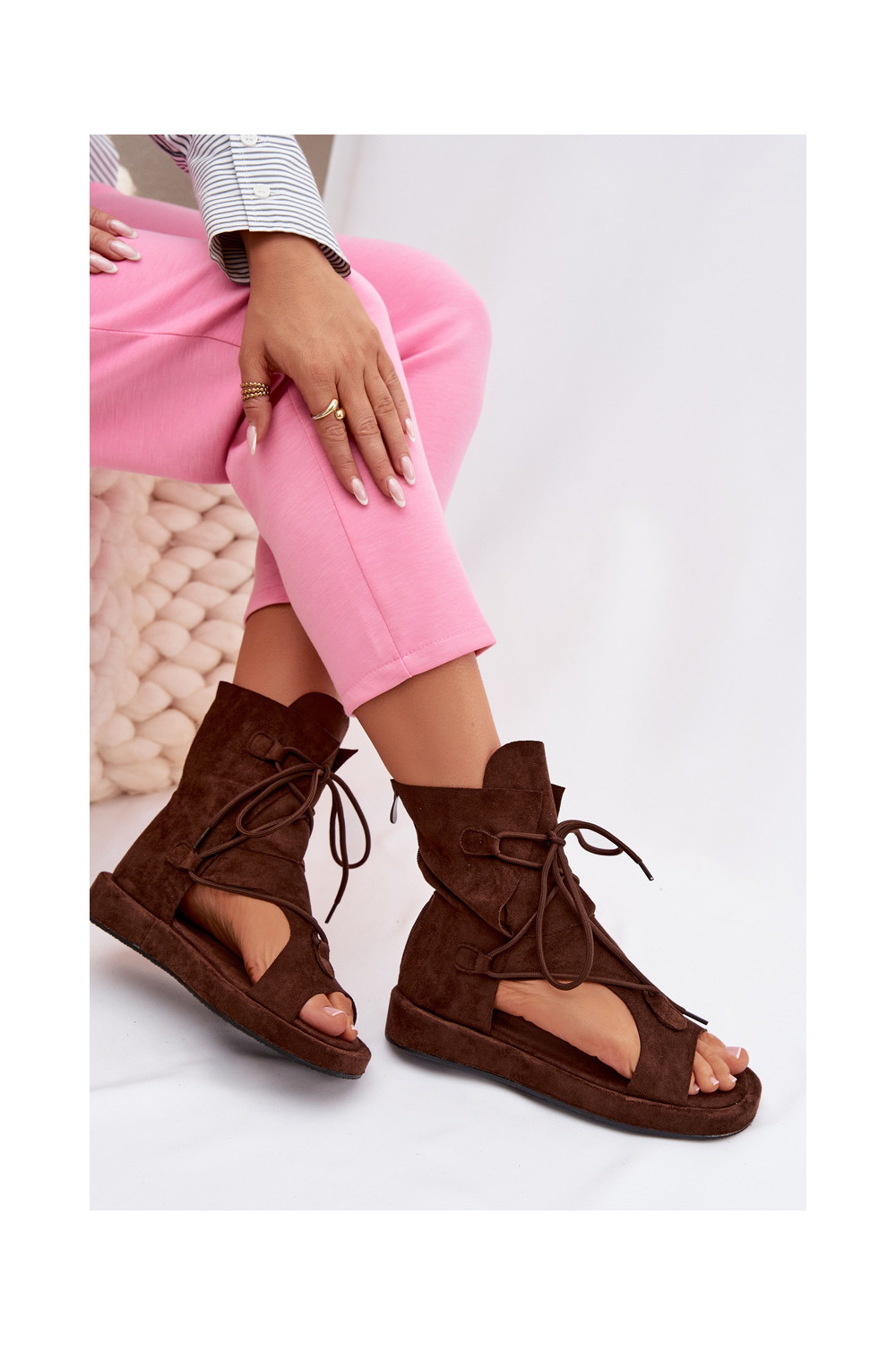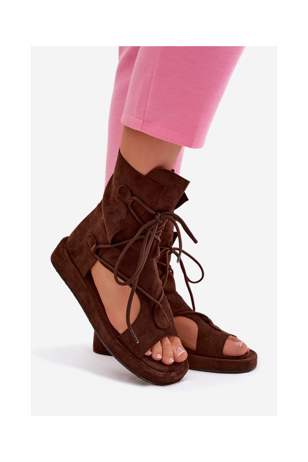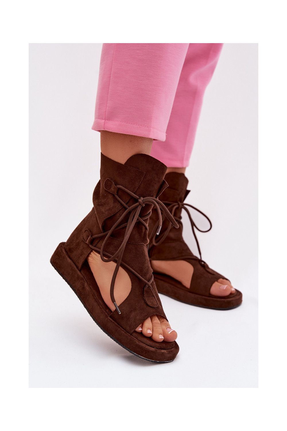Dámské sandály z eko semišeowe s oblázky I Wiązaniem Czekoladowe Ferlisse