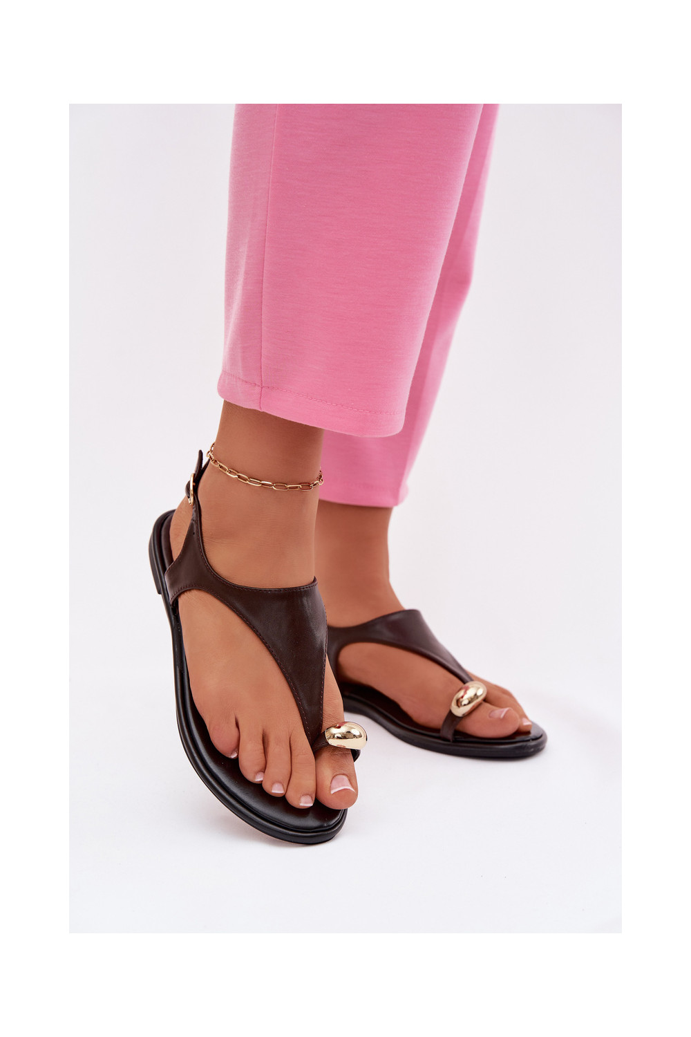 Dámské sandály s širokými podpatky Ze zlaté barvym Detalem Czekoladowe Talorina