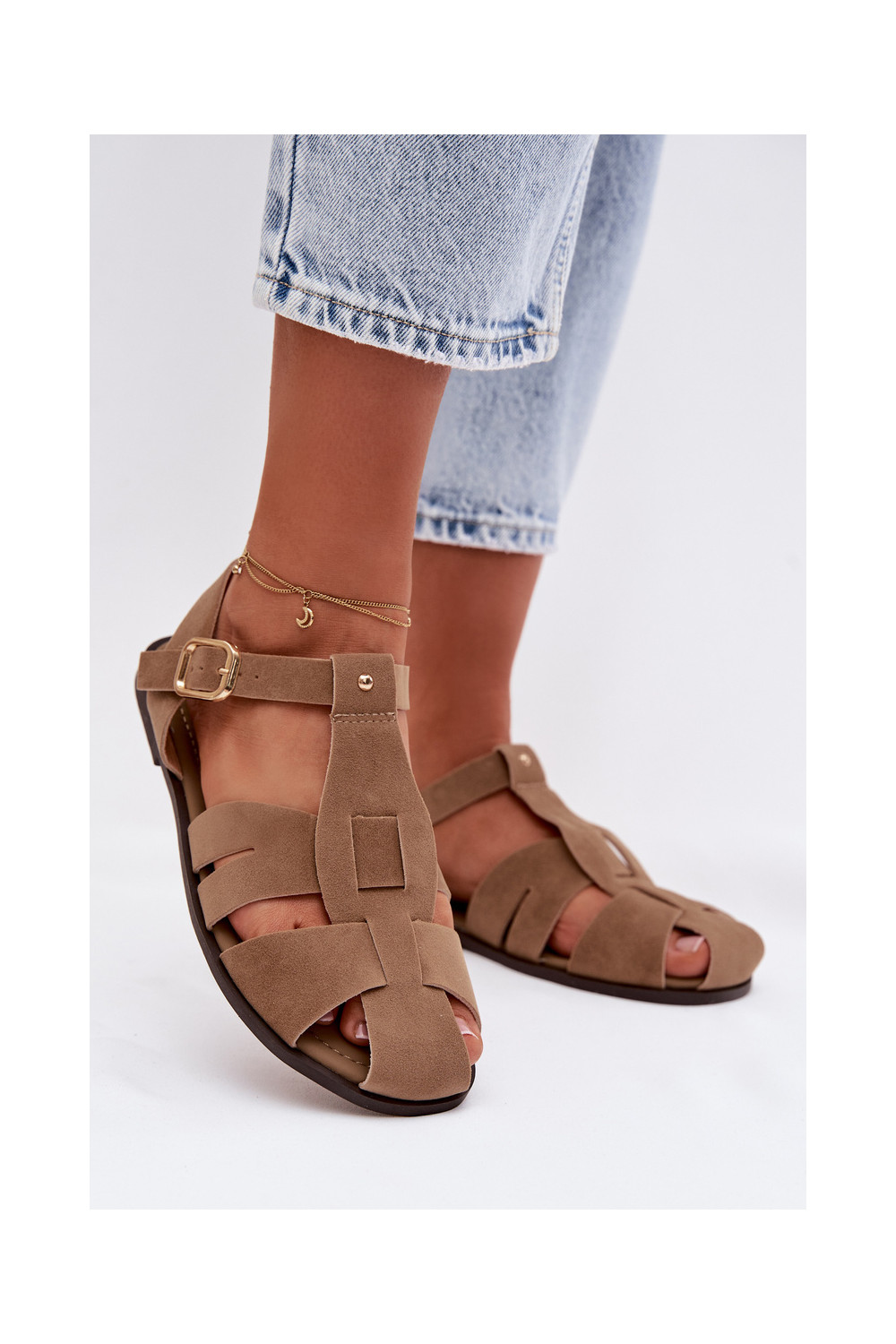 Dámské sandály Rzymianki Ploché boty khaki Belanessa