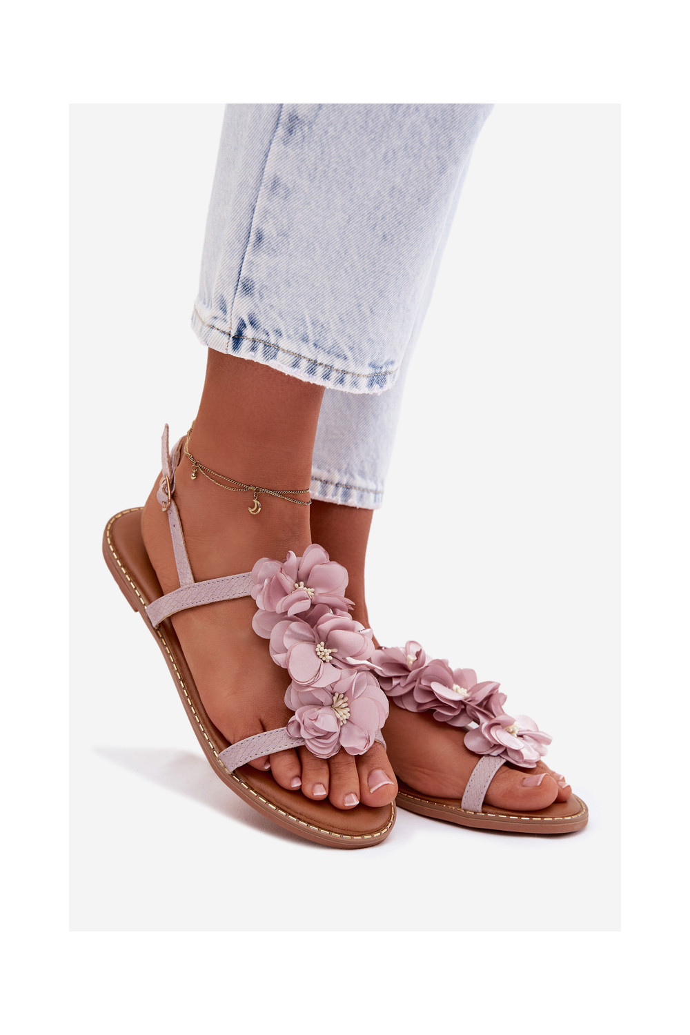 Ploché dámské sandály s květinovými motivykami Barva fialová Noemia