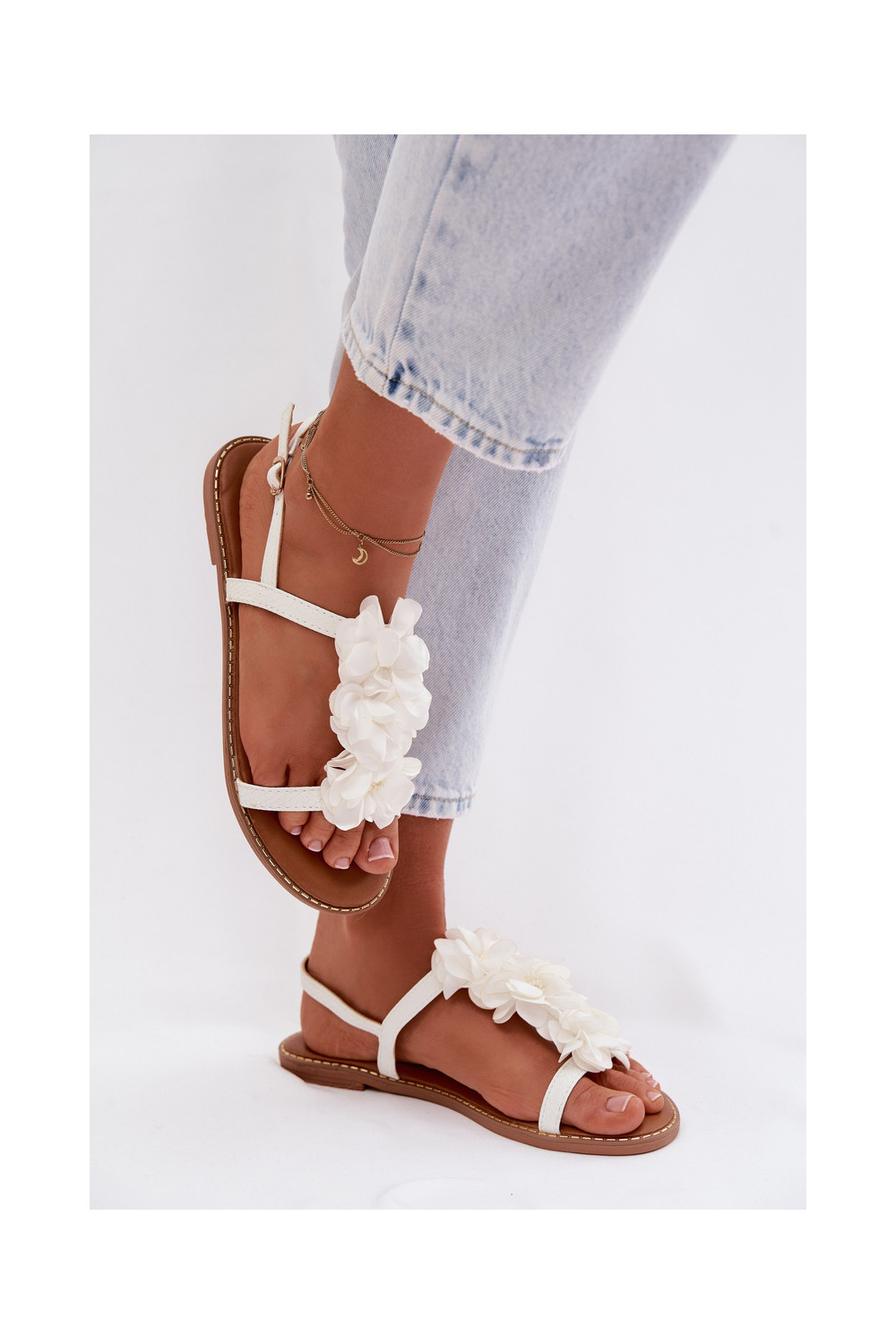Ploché dámské sandály  s květinovými motivykami bílé Noemia