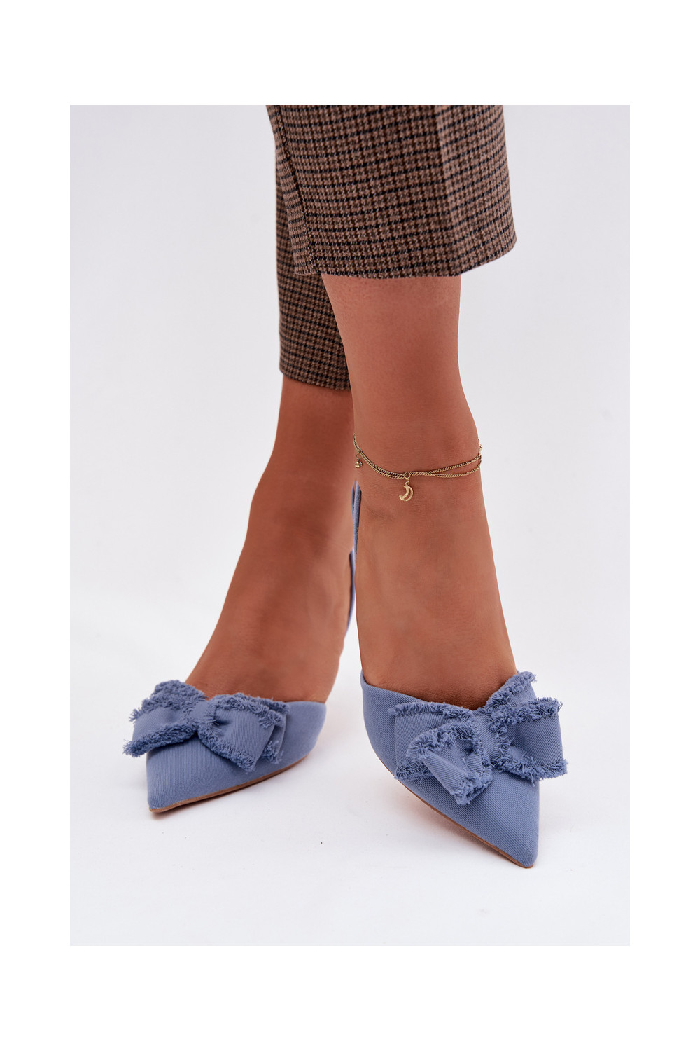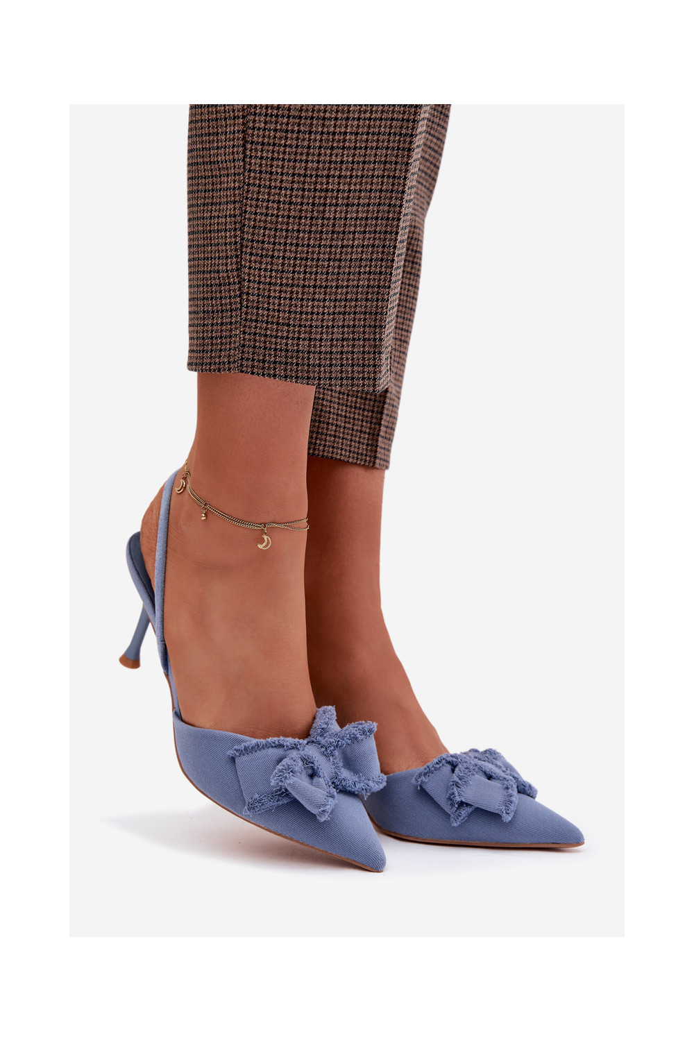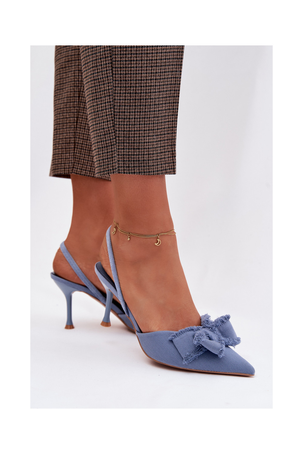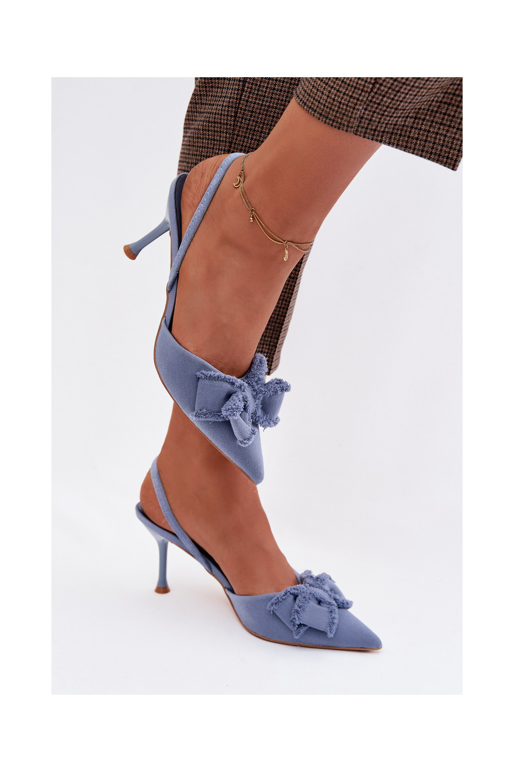 Dámské sandály s tenkými podpatky se stuhami modrá Hestia