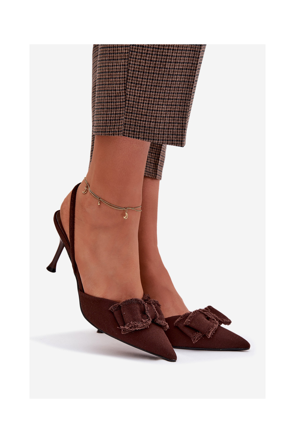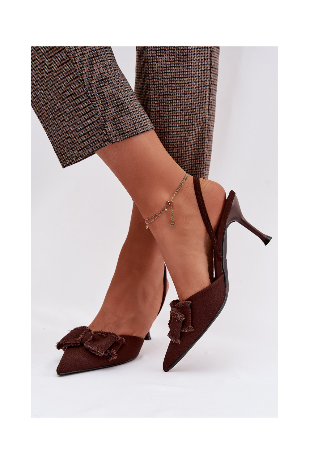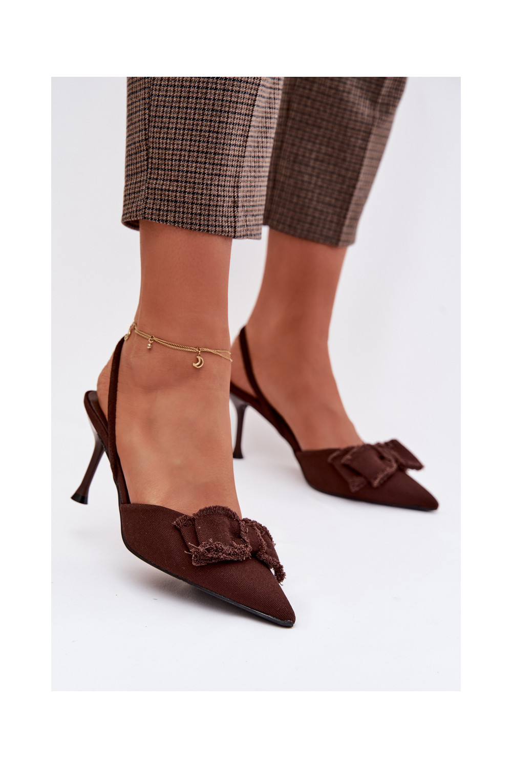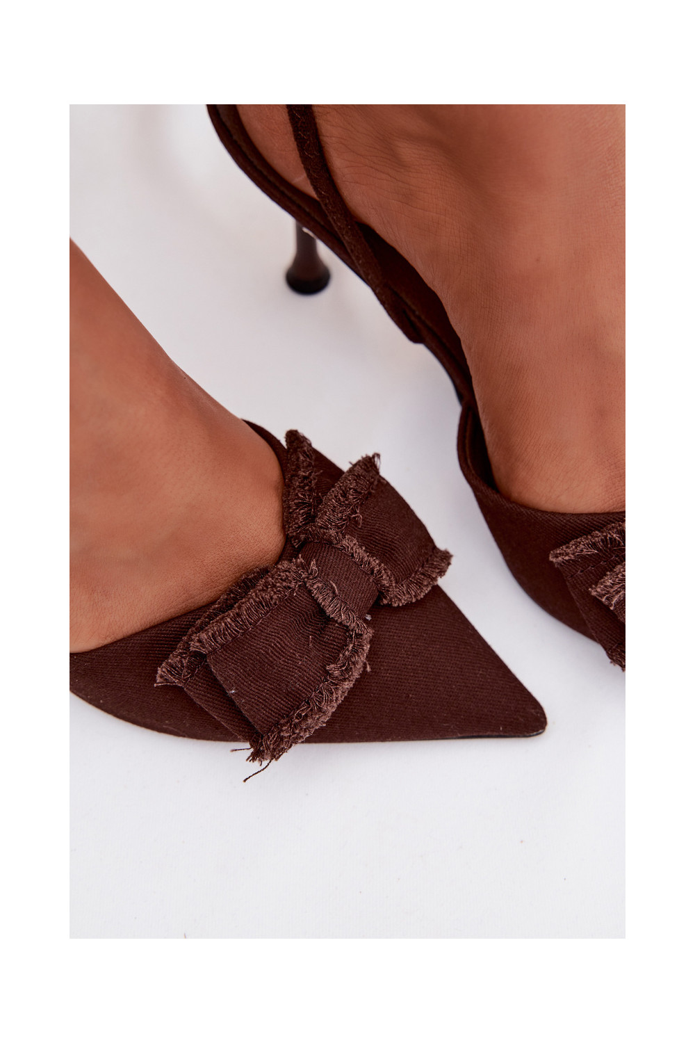 Dámské sandály s tenkými podpatky se stuhami Czekoladowe Hestia