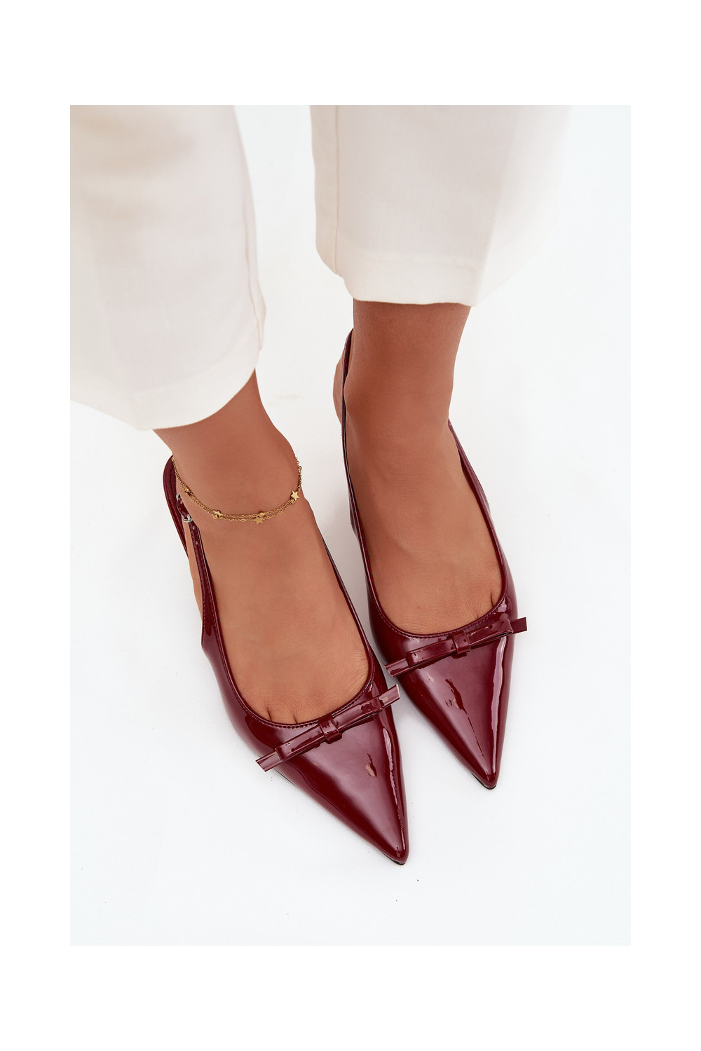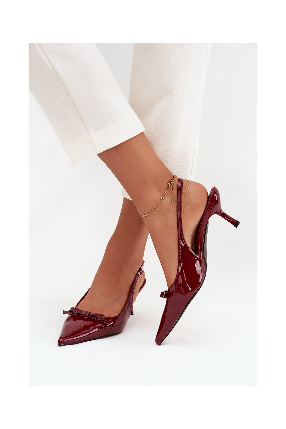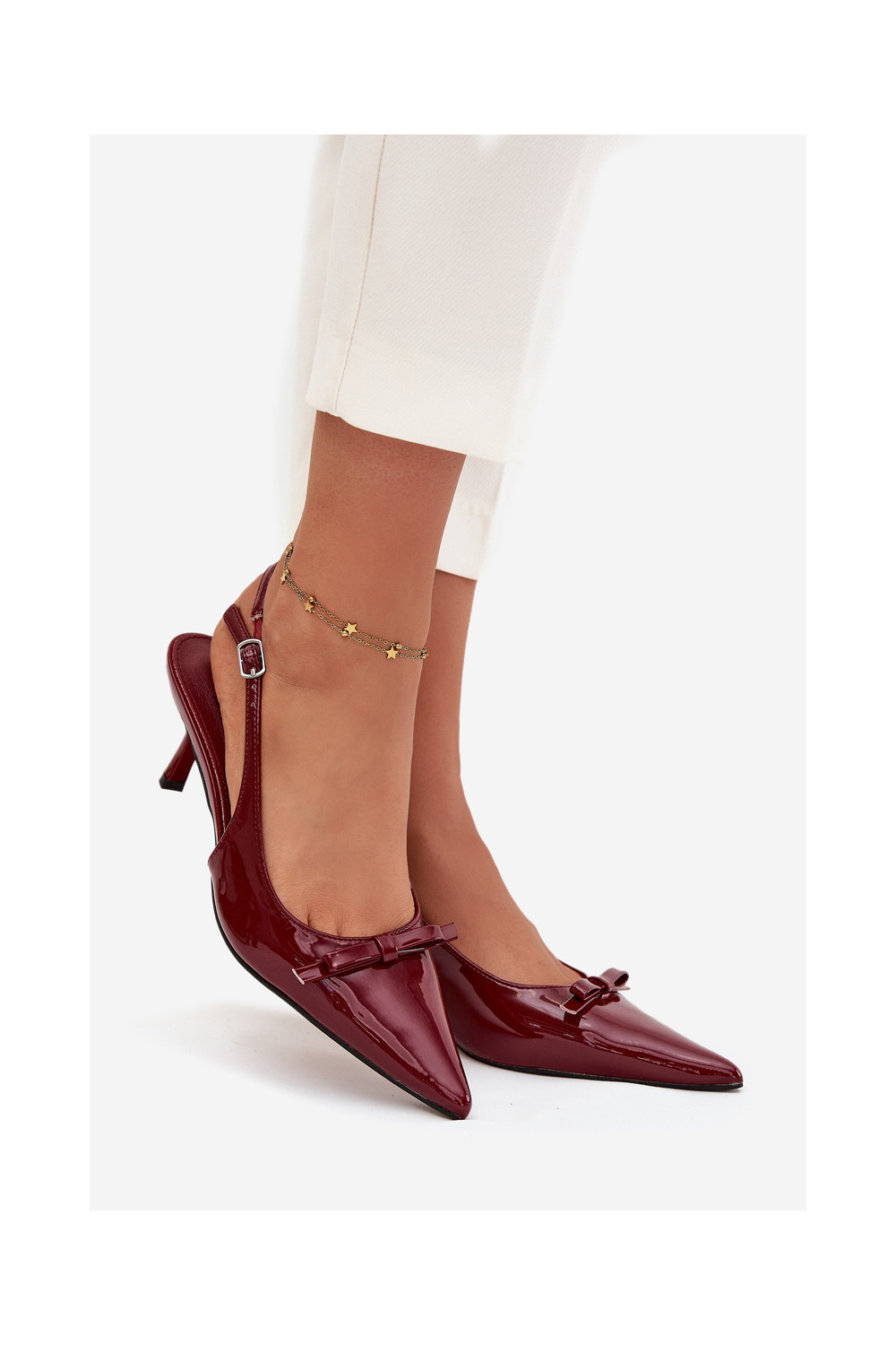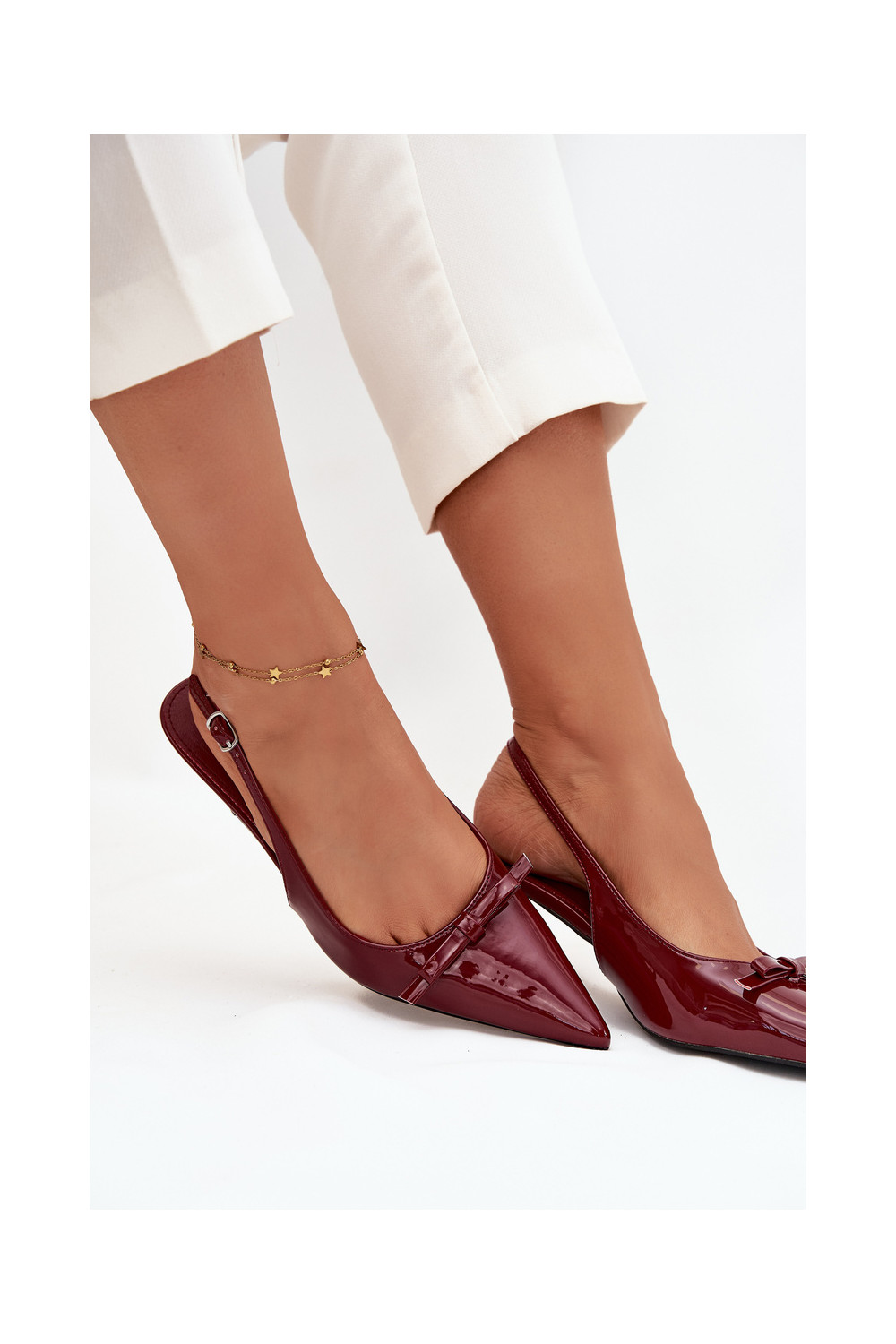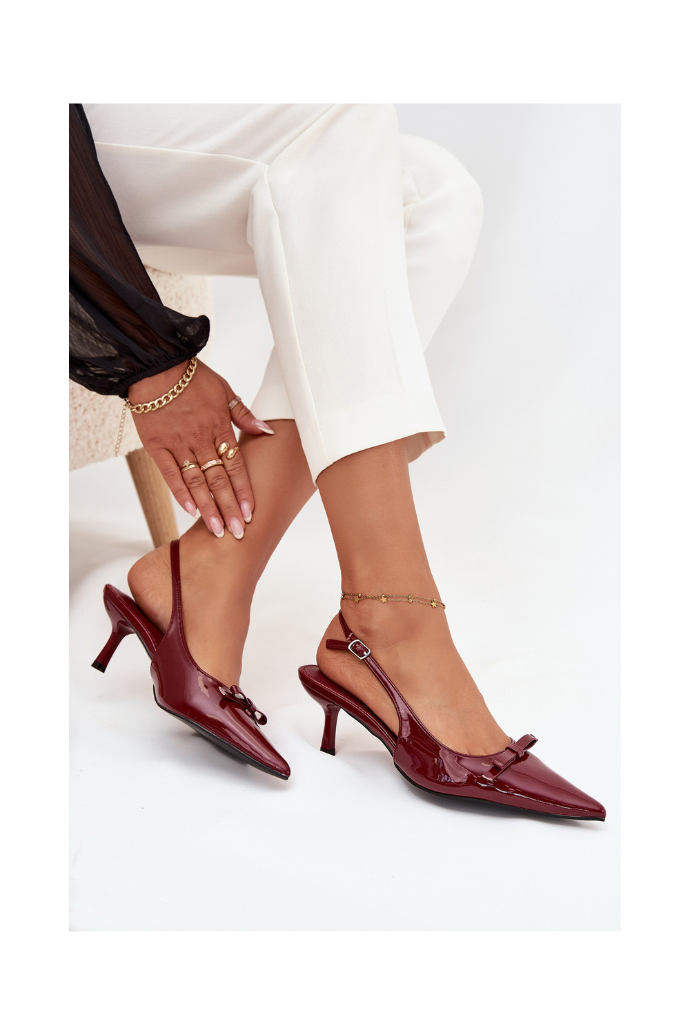 s efektem laku Obuv s tenkými podpatky se stuhami vínová Olvena