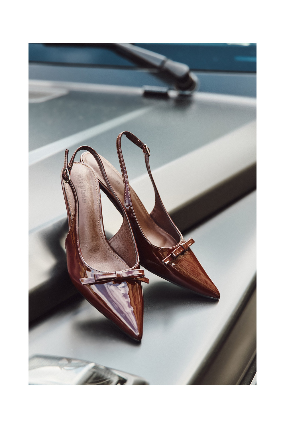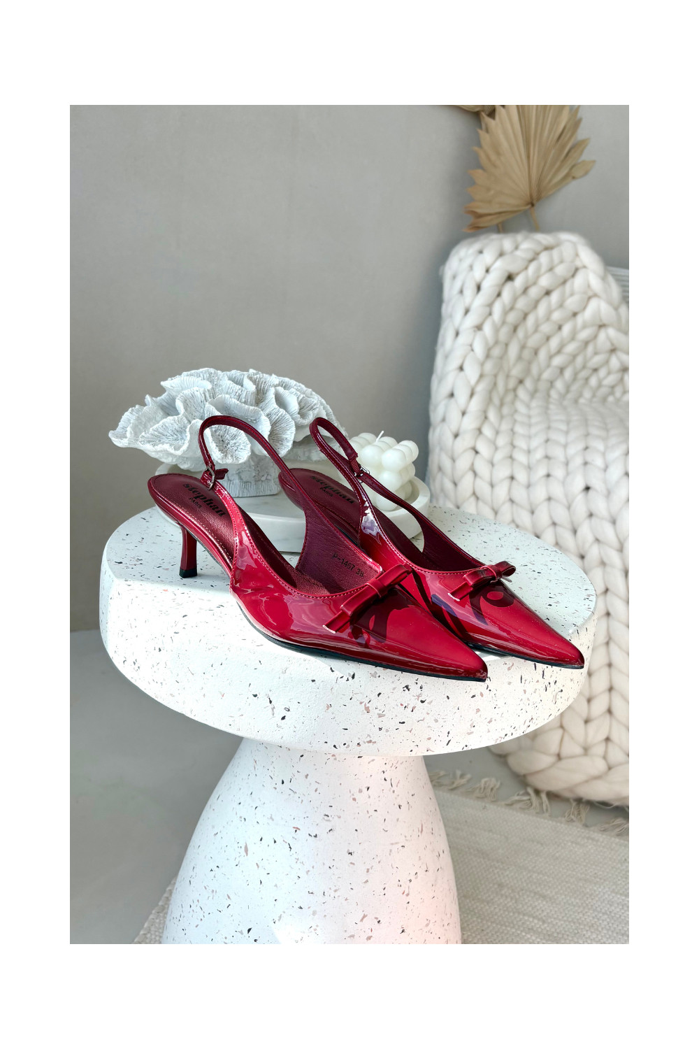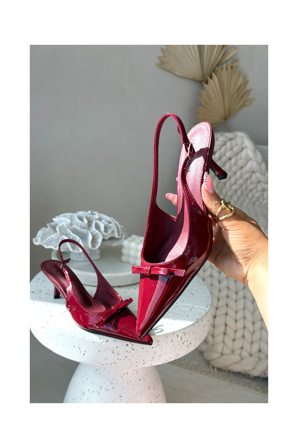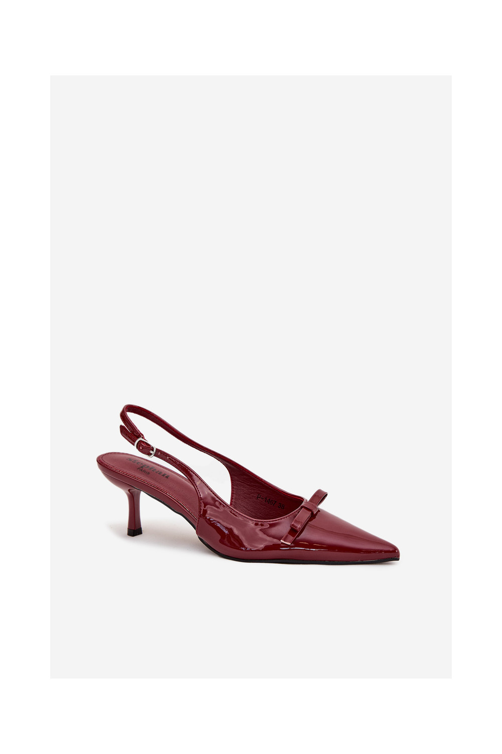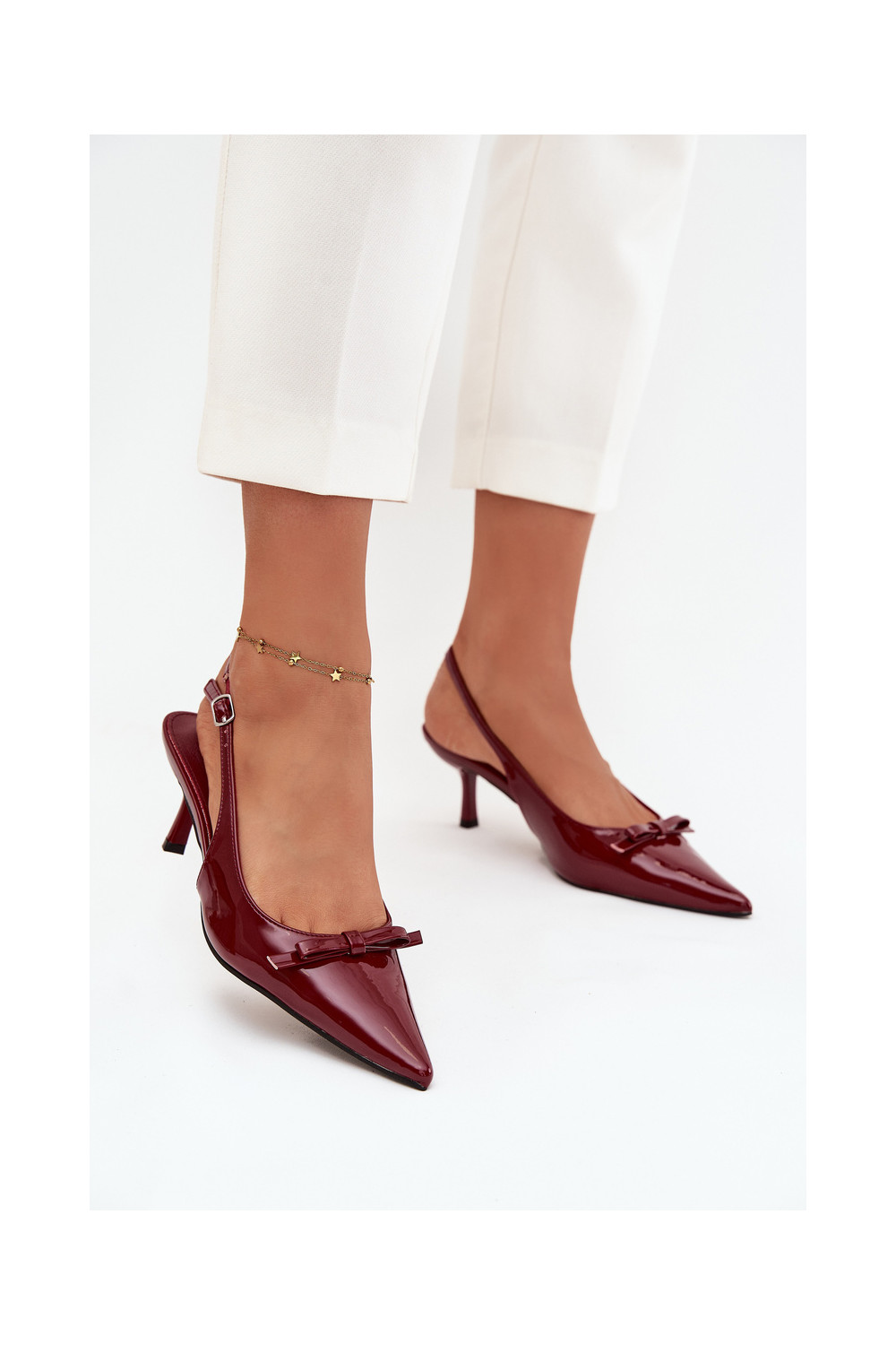 s efektem laku Obuv s tenkými podpatky se stuhami vínová Olvena